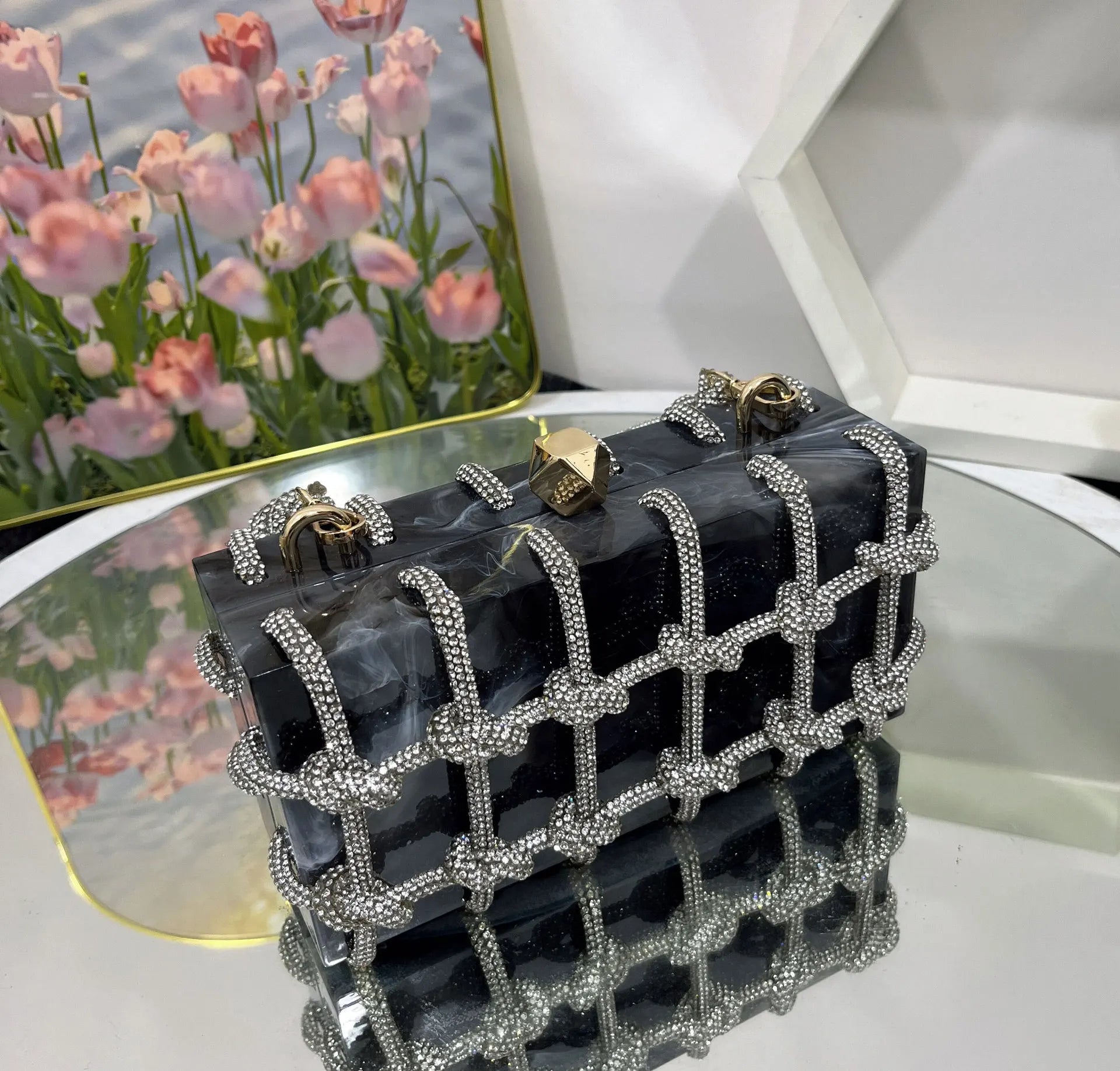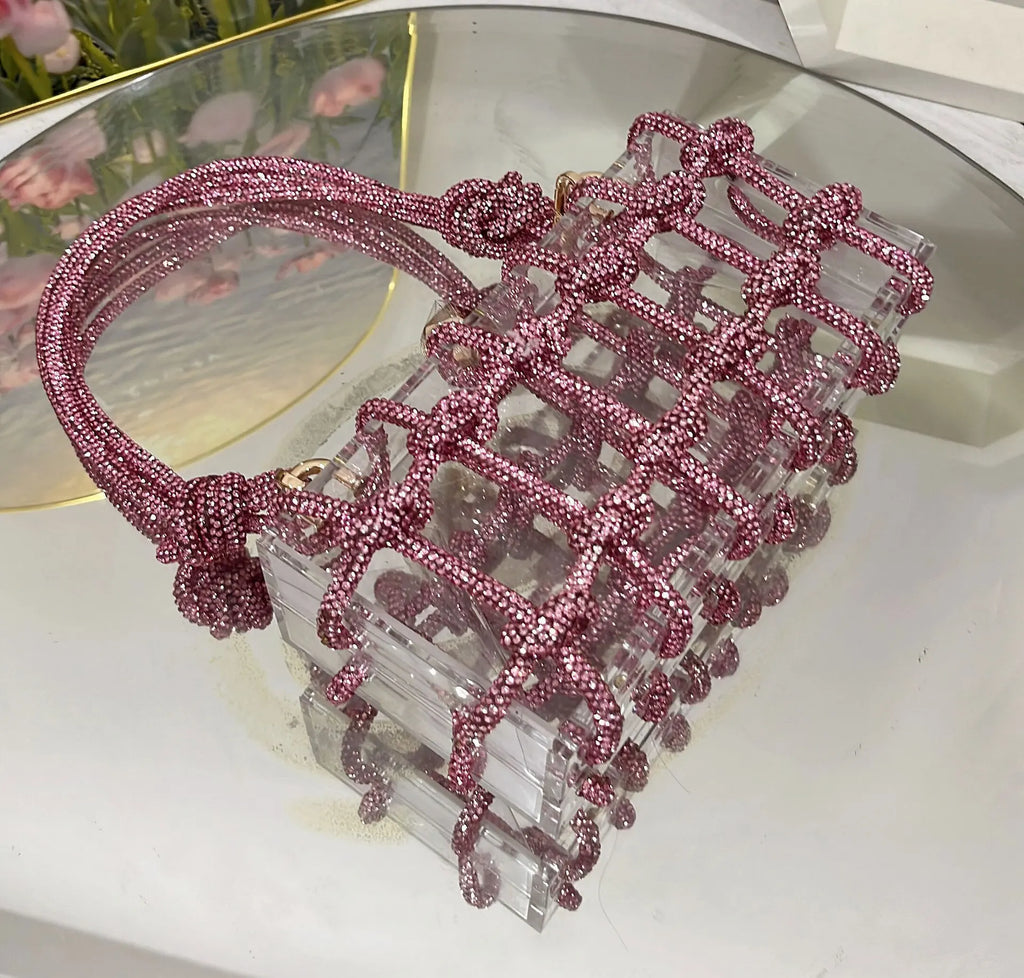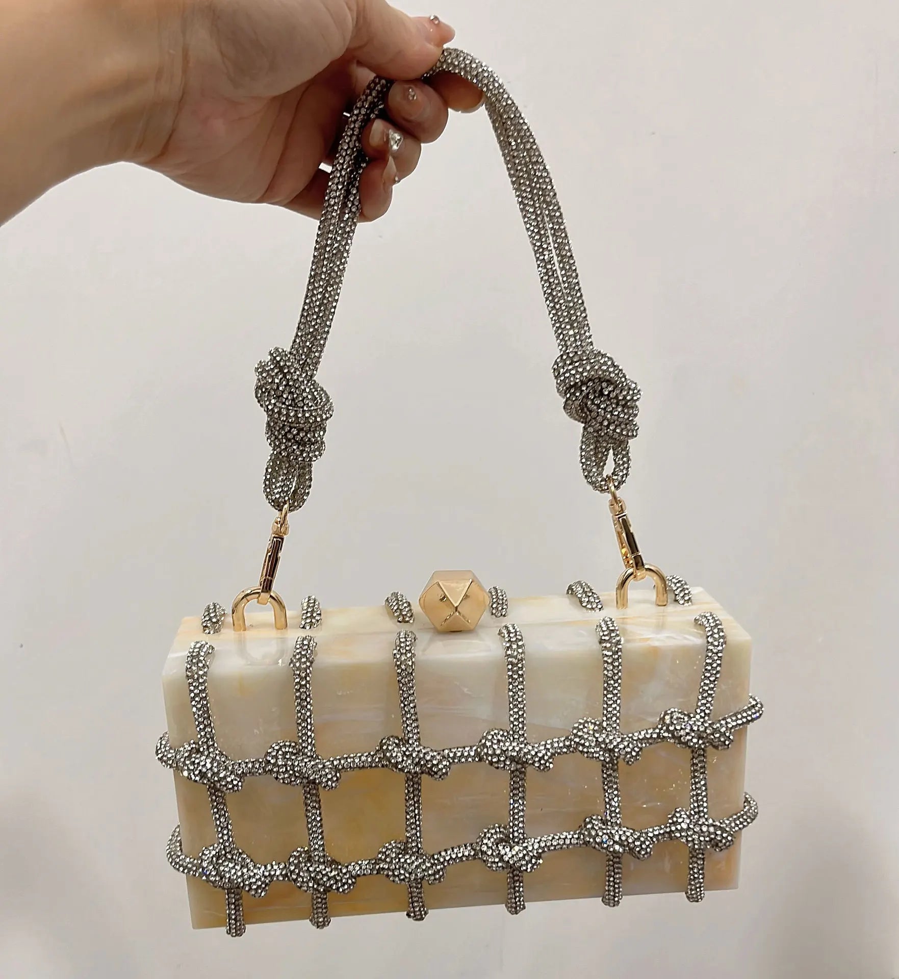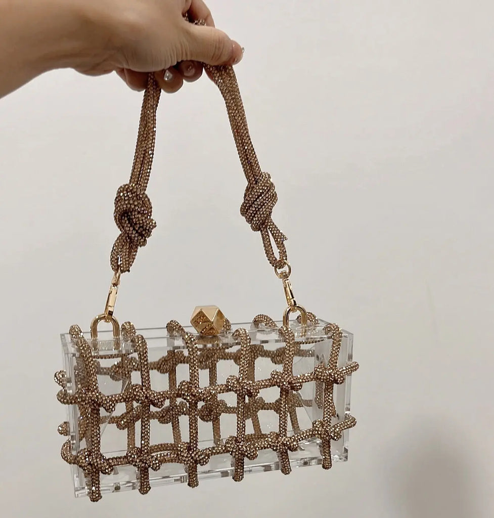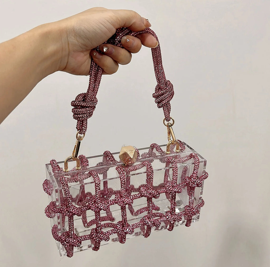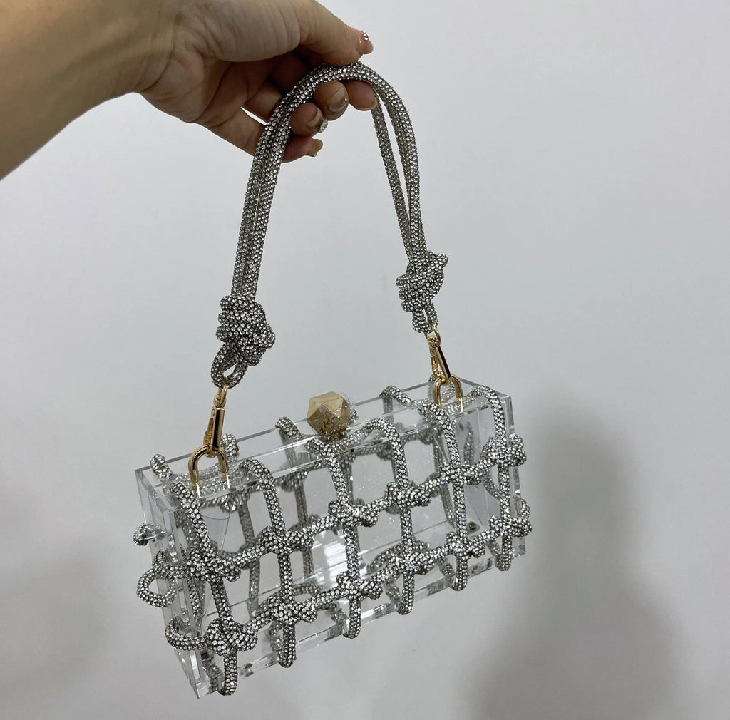 2024 Luxury Evening Clutch Bag Diamond Acrylic Square Handbag Women's Wedding Purse