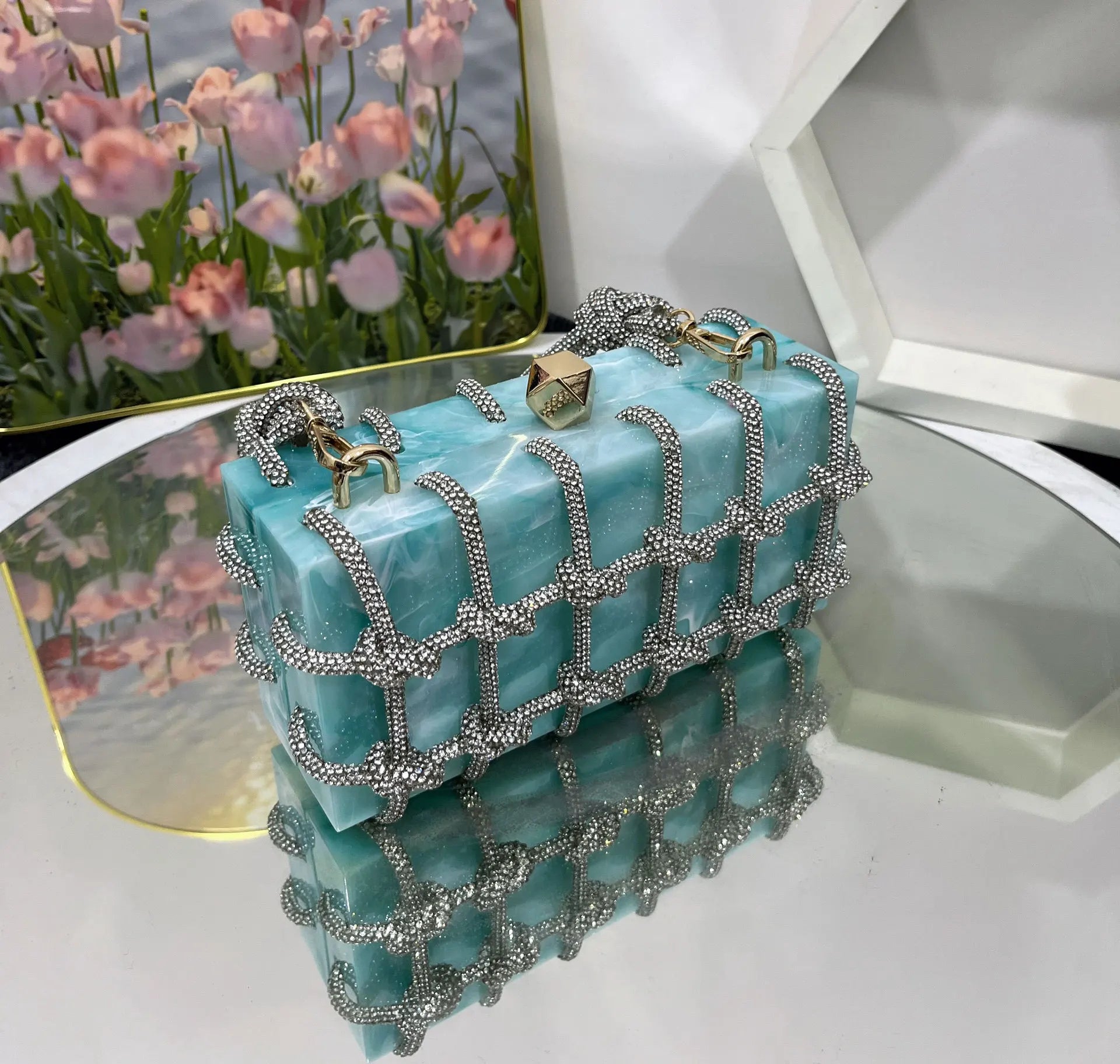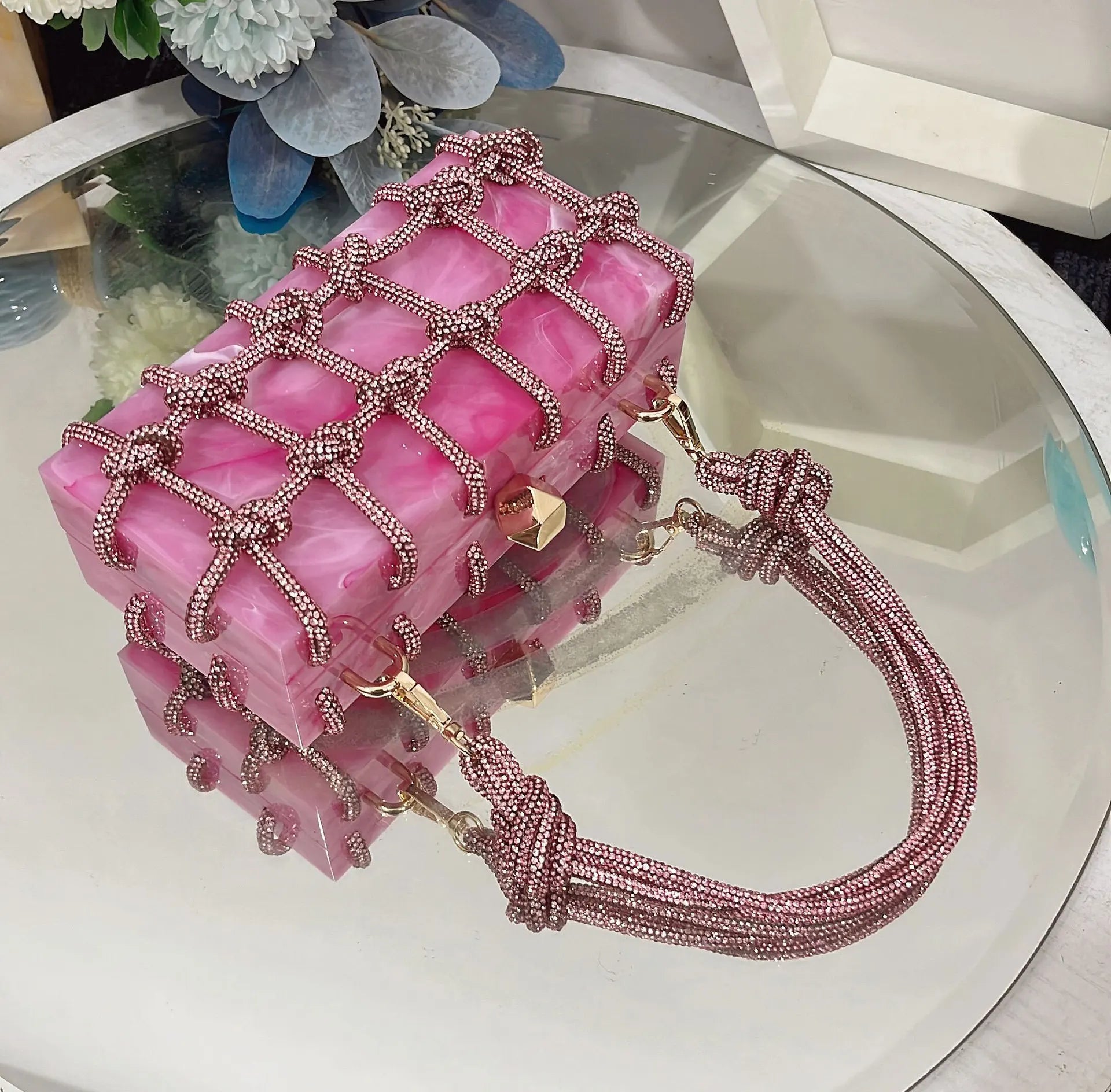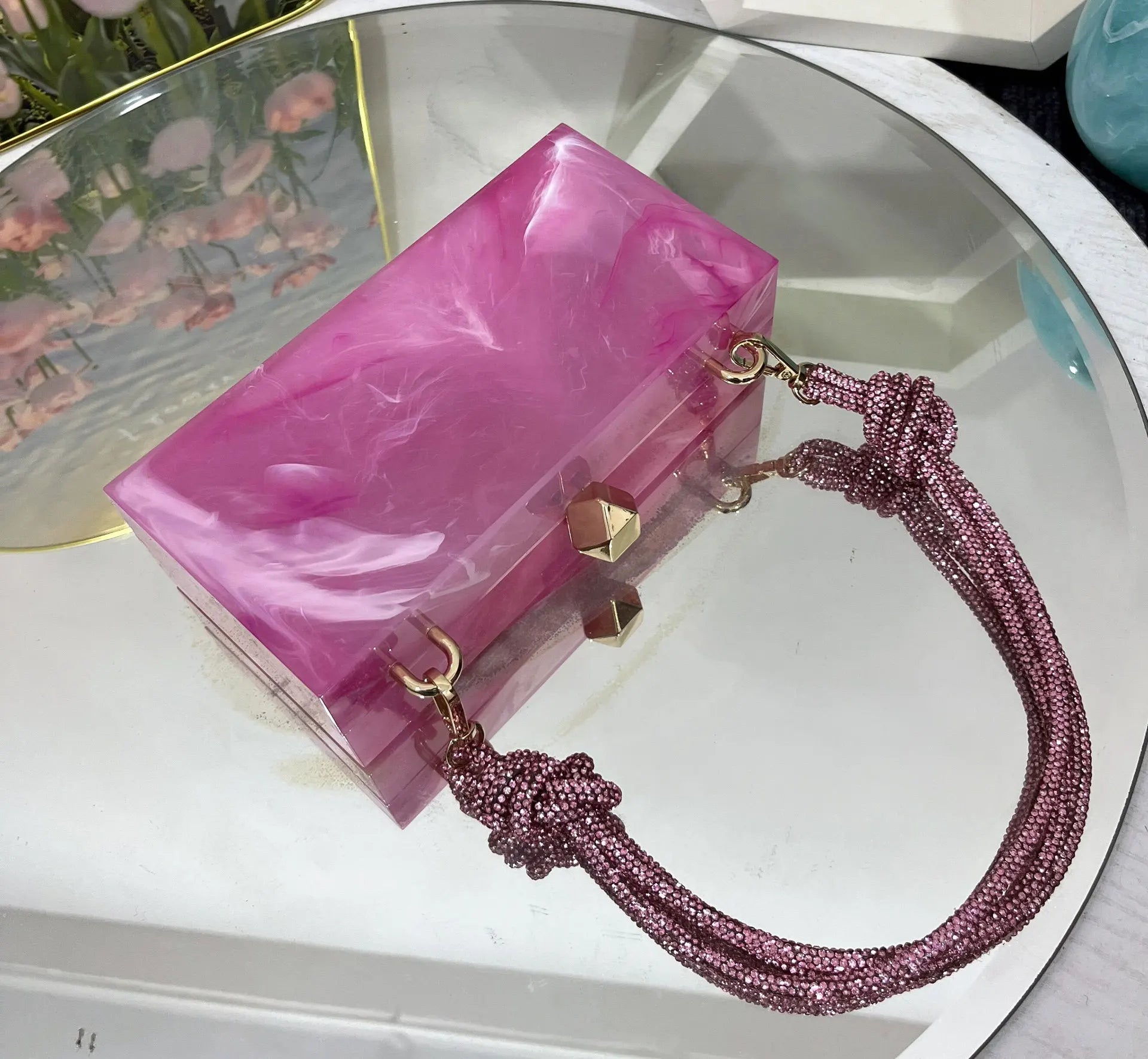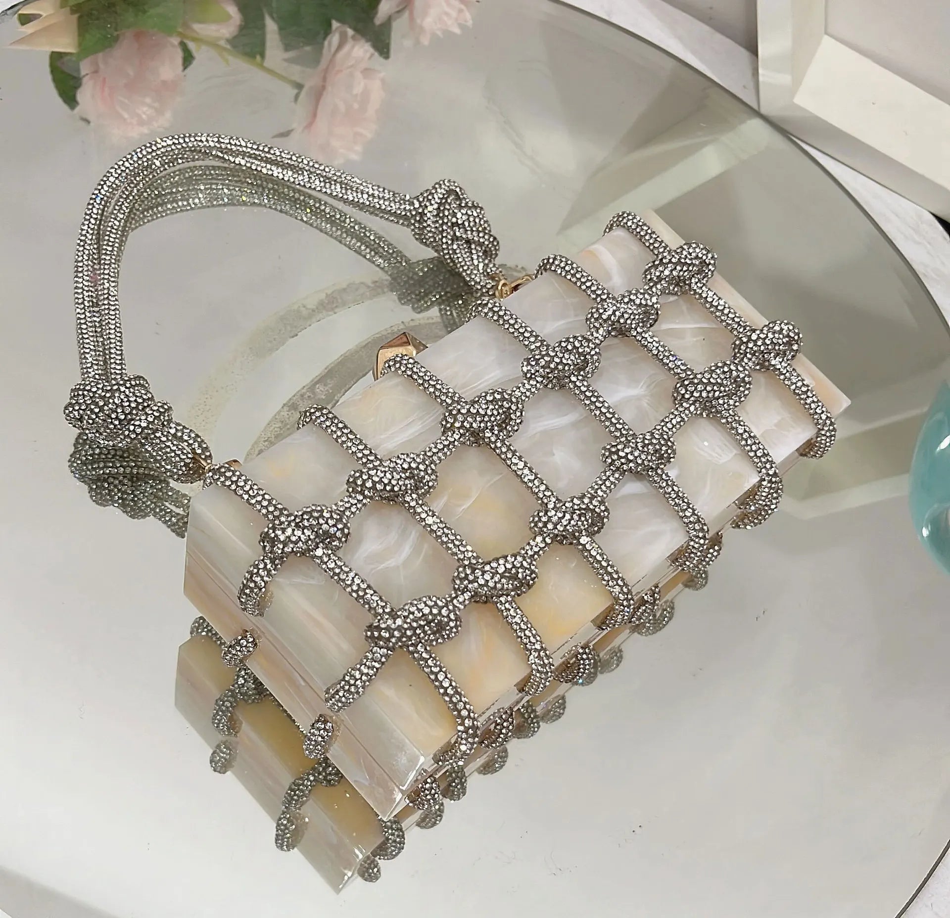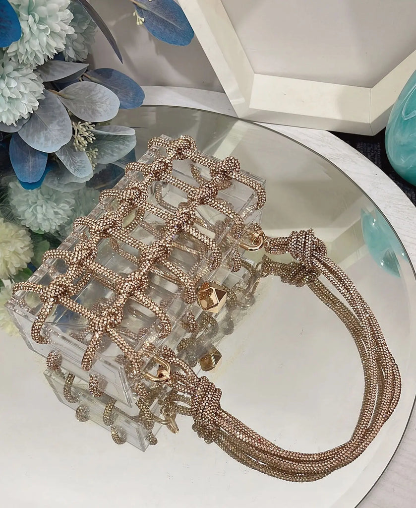 2024 Luxury Evening Clutch Bag Diamond Acrylic Square Handbag Women's Wedding Purse