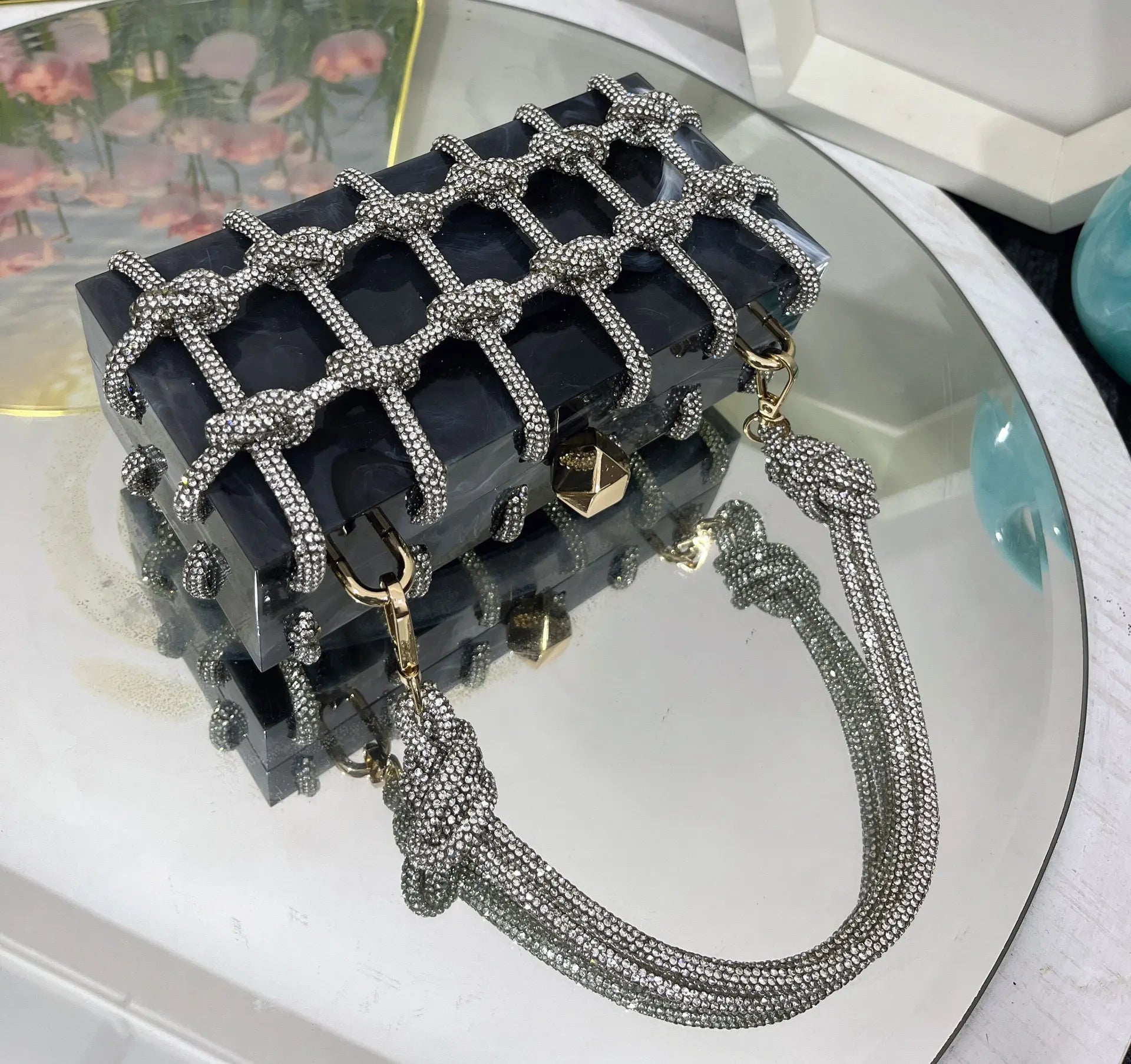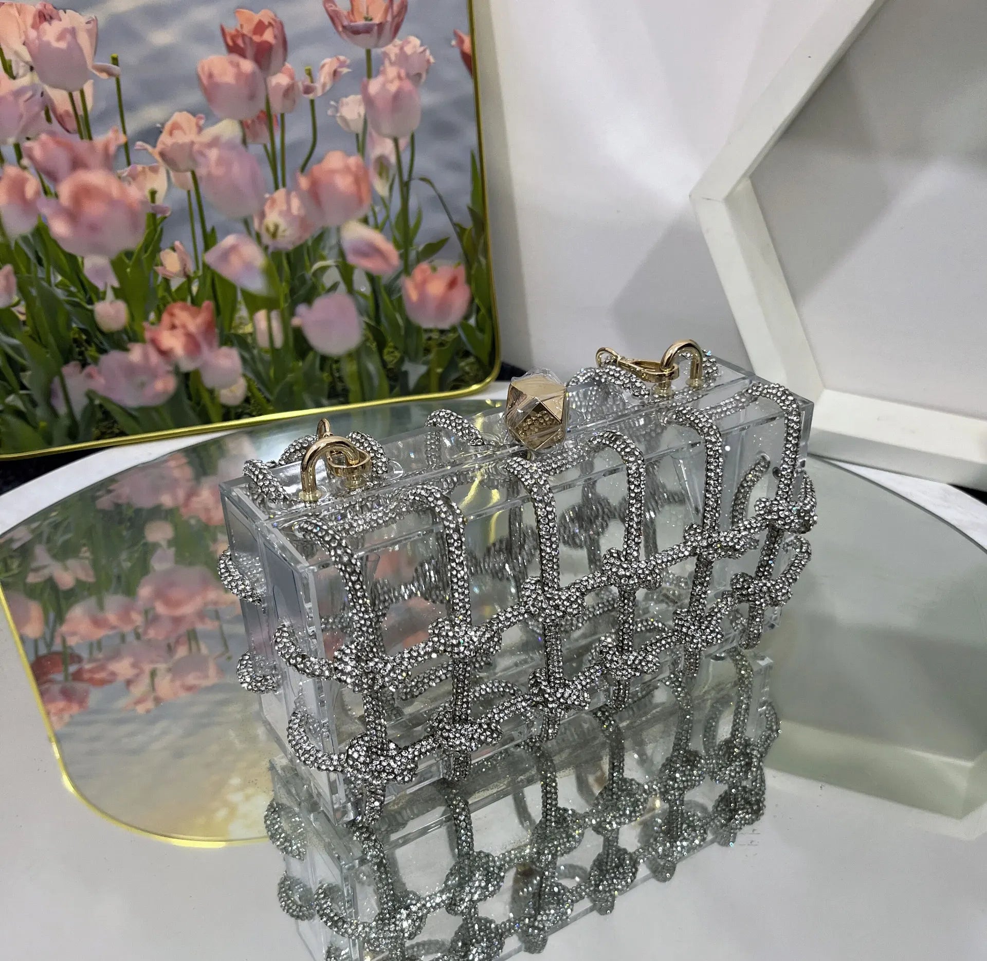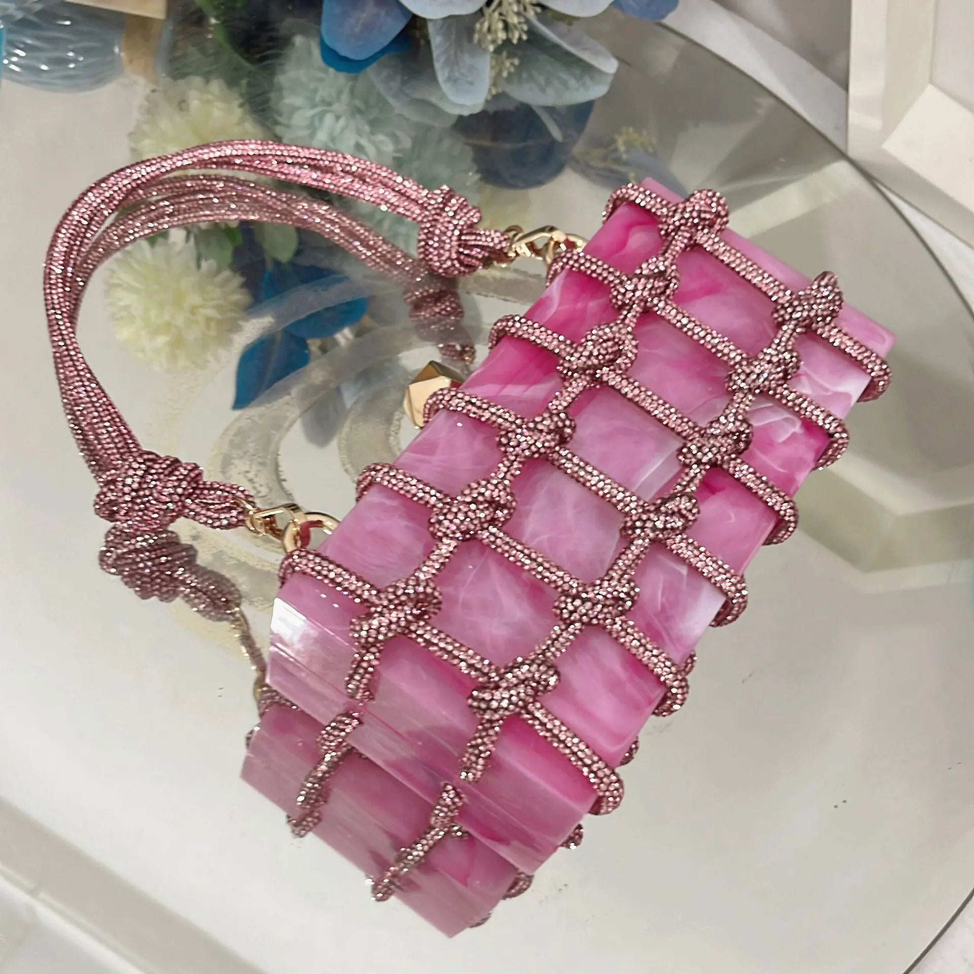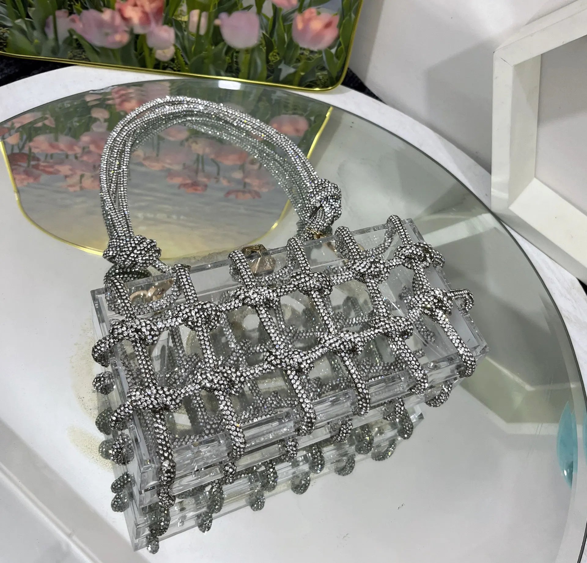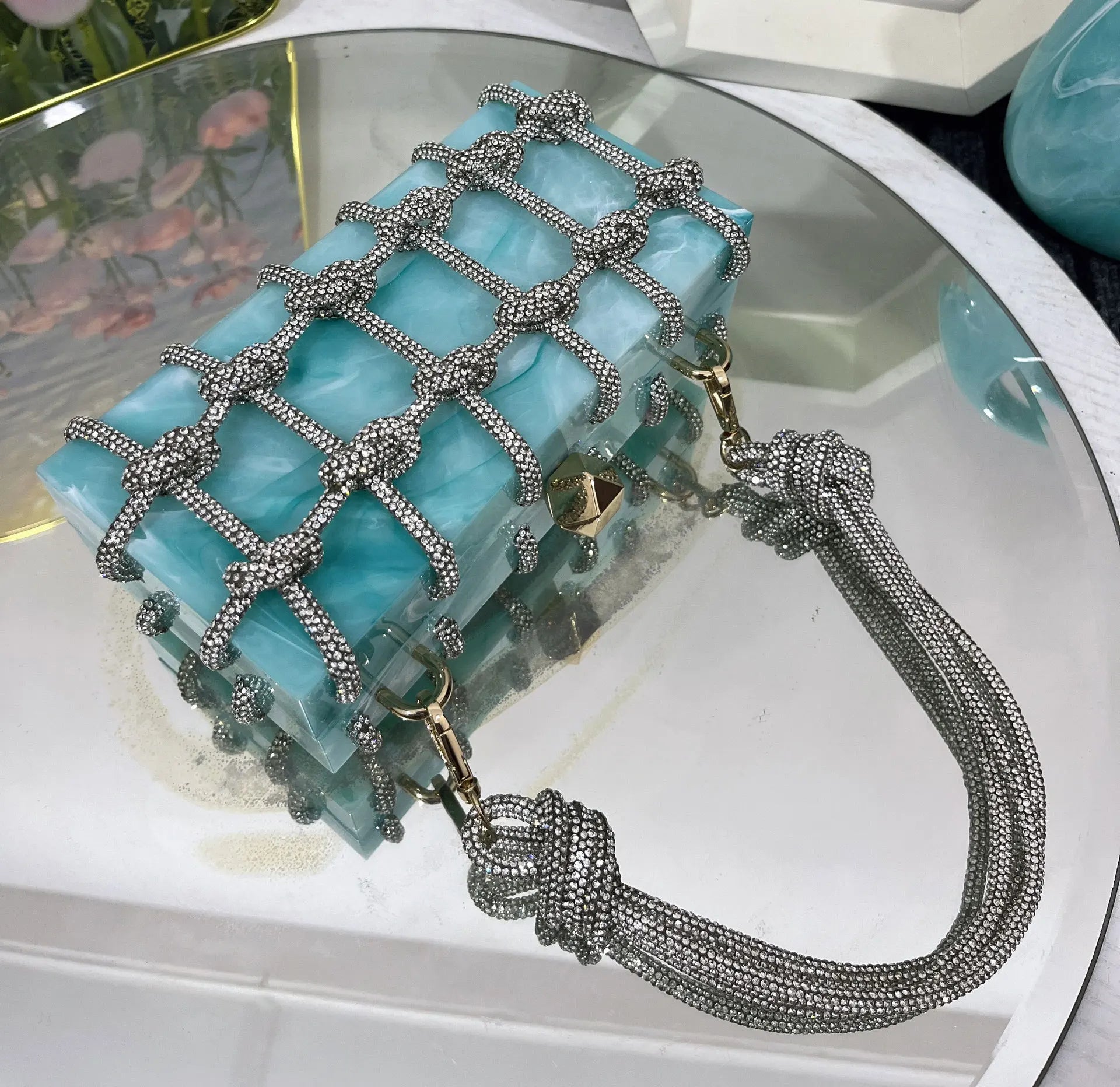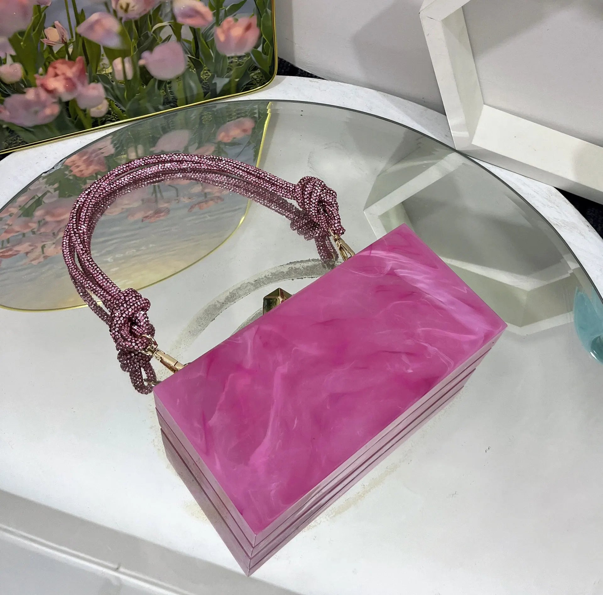 2024 Luxury Evening Clutch Bag Diamond Acrylic Square Handbag Women's Wedding Purse