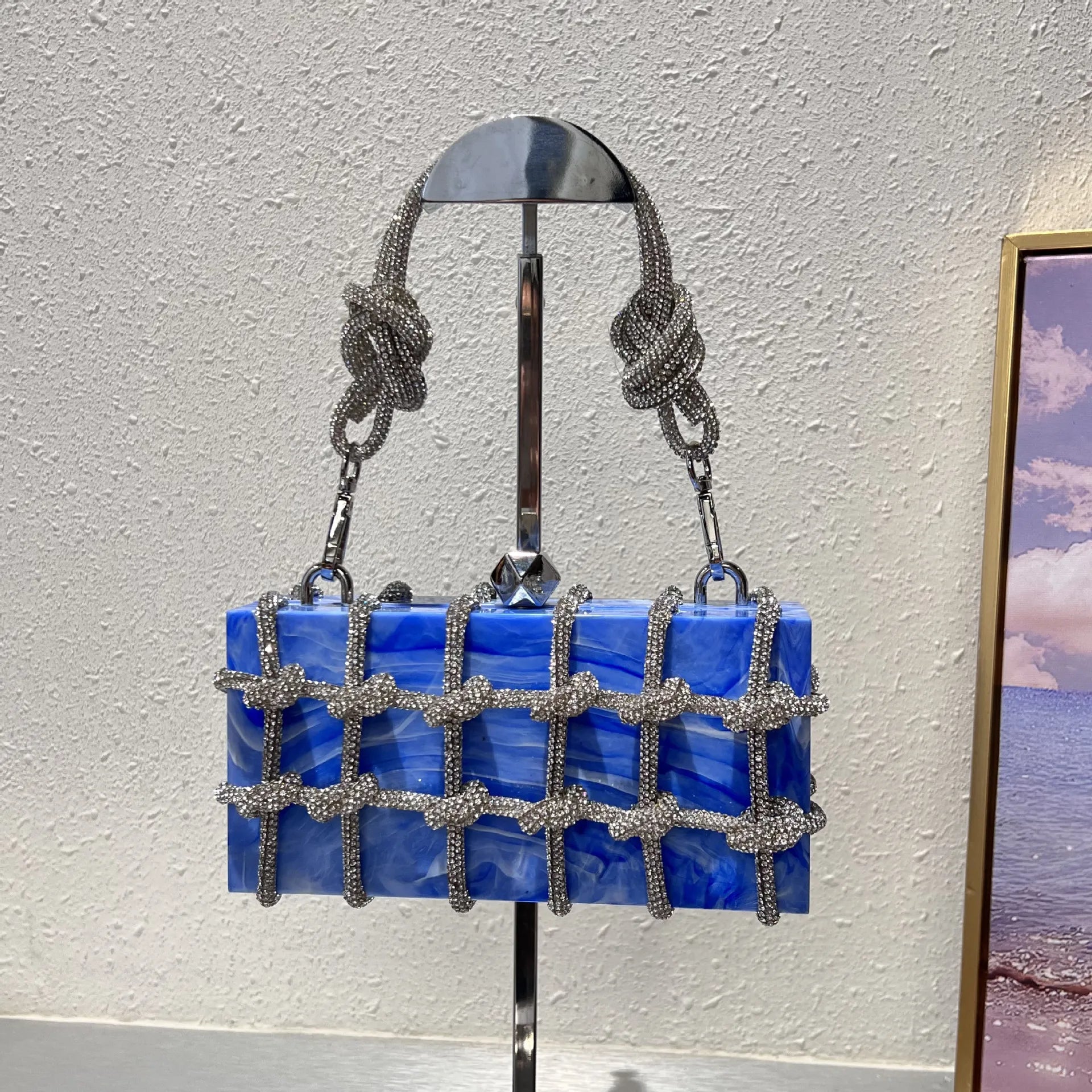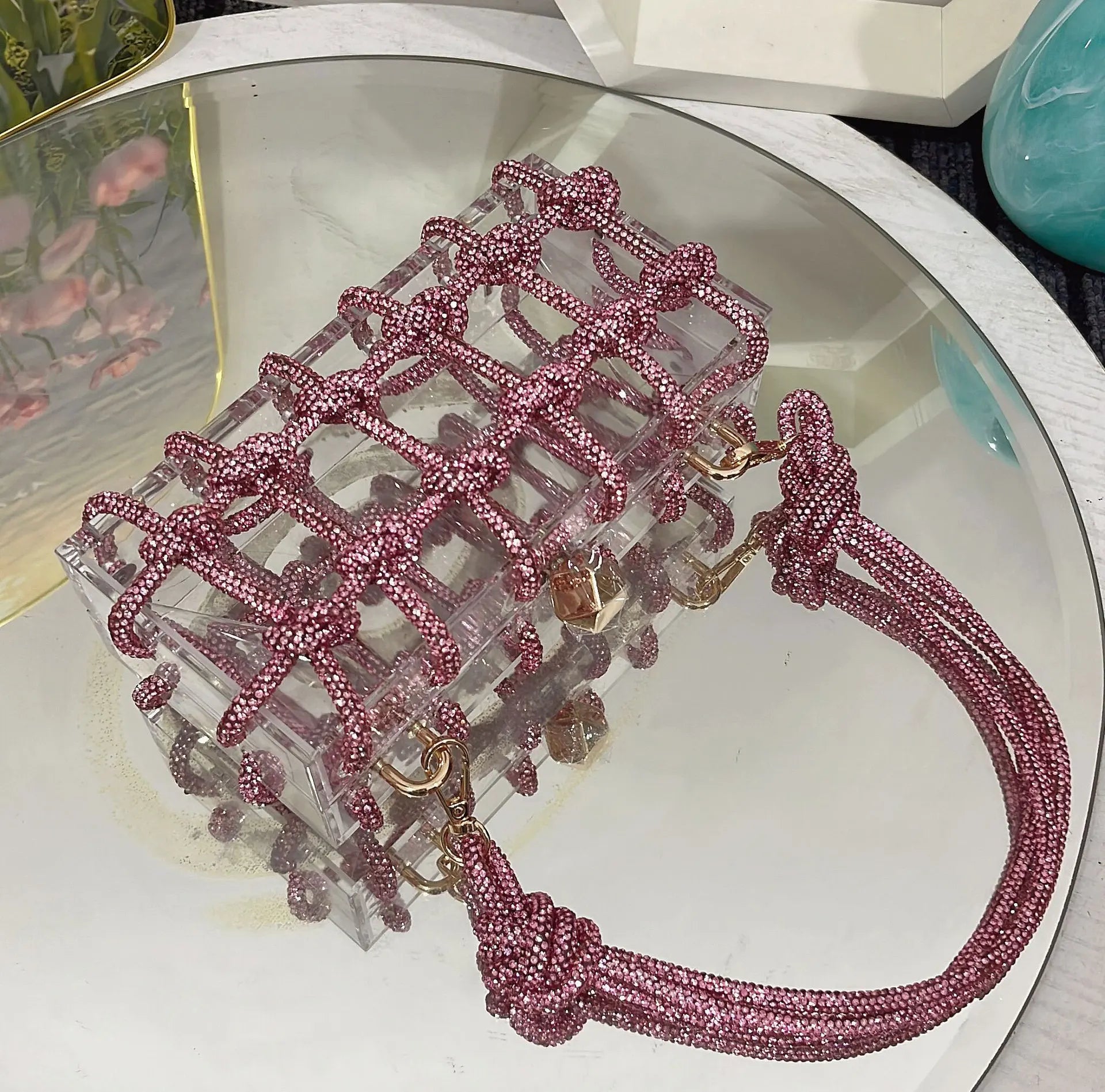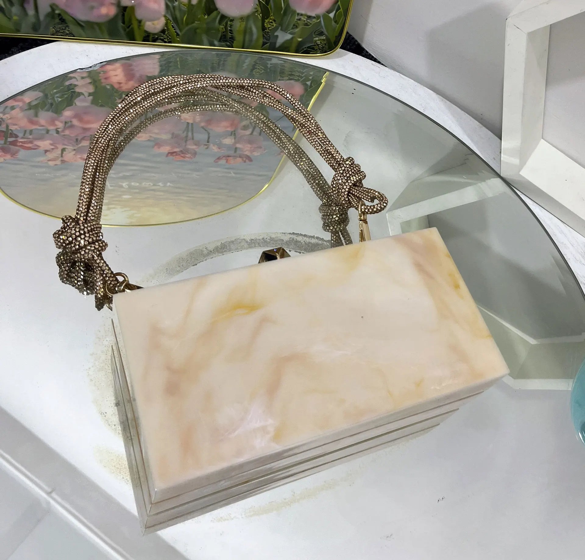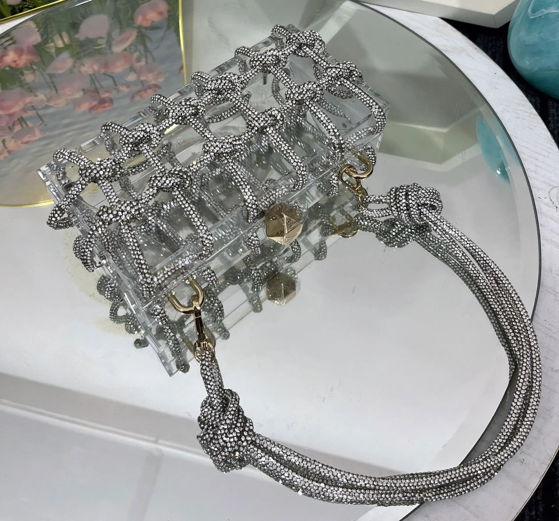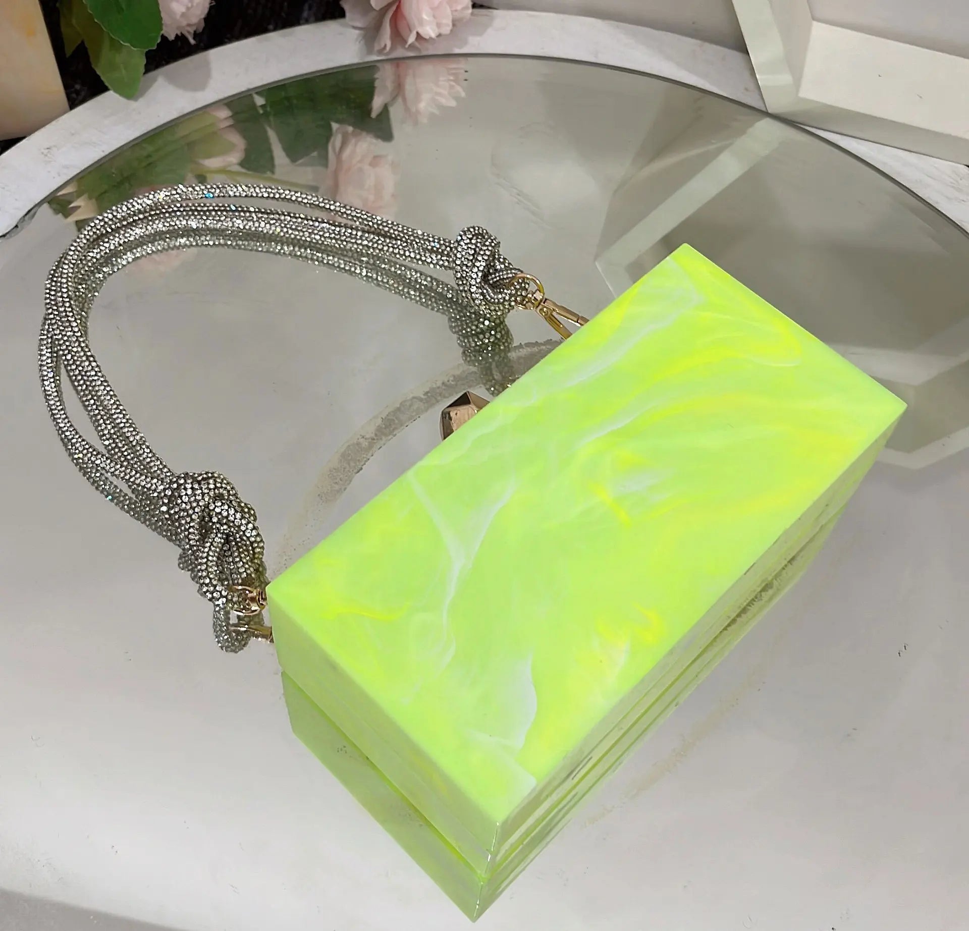 2024 Luxury Evening Clutch Bag Diamond Acrylic Square Handbag Women's Wedding Purse