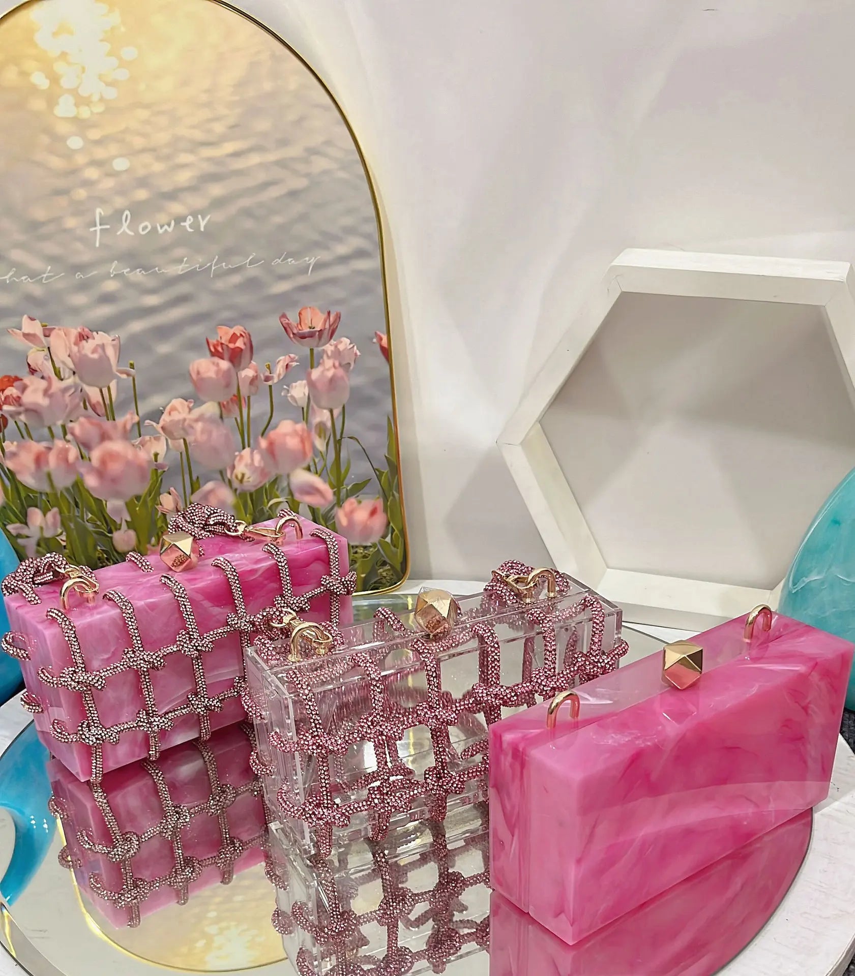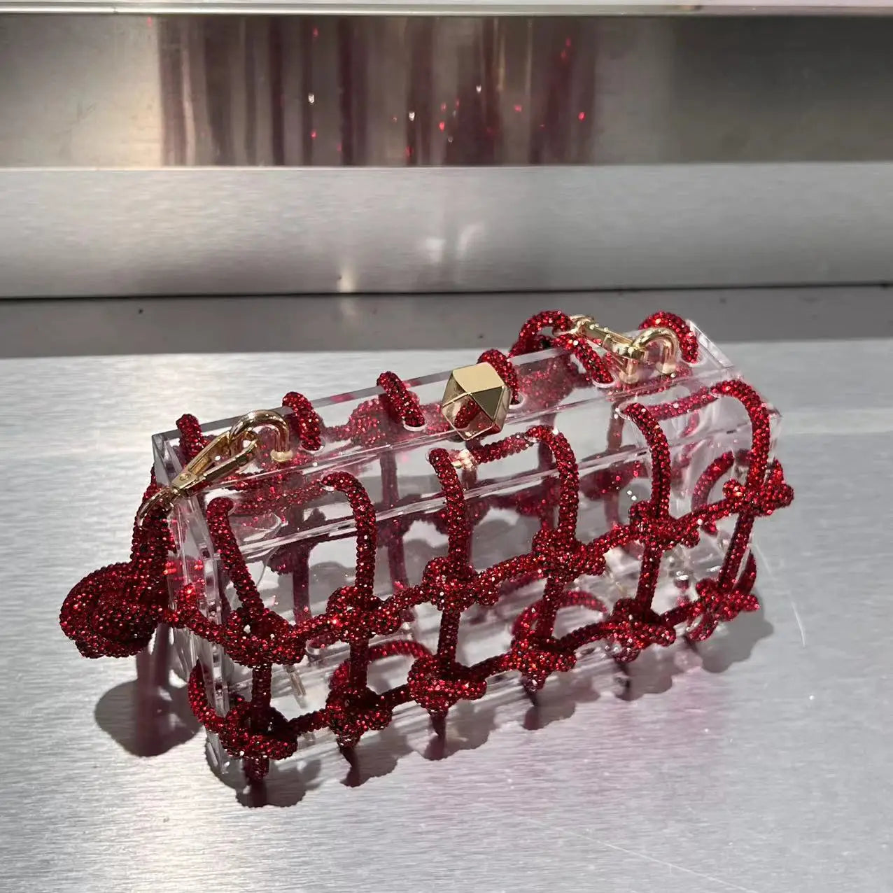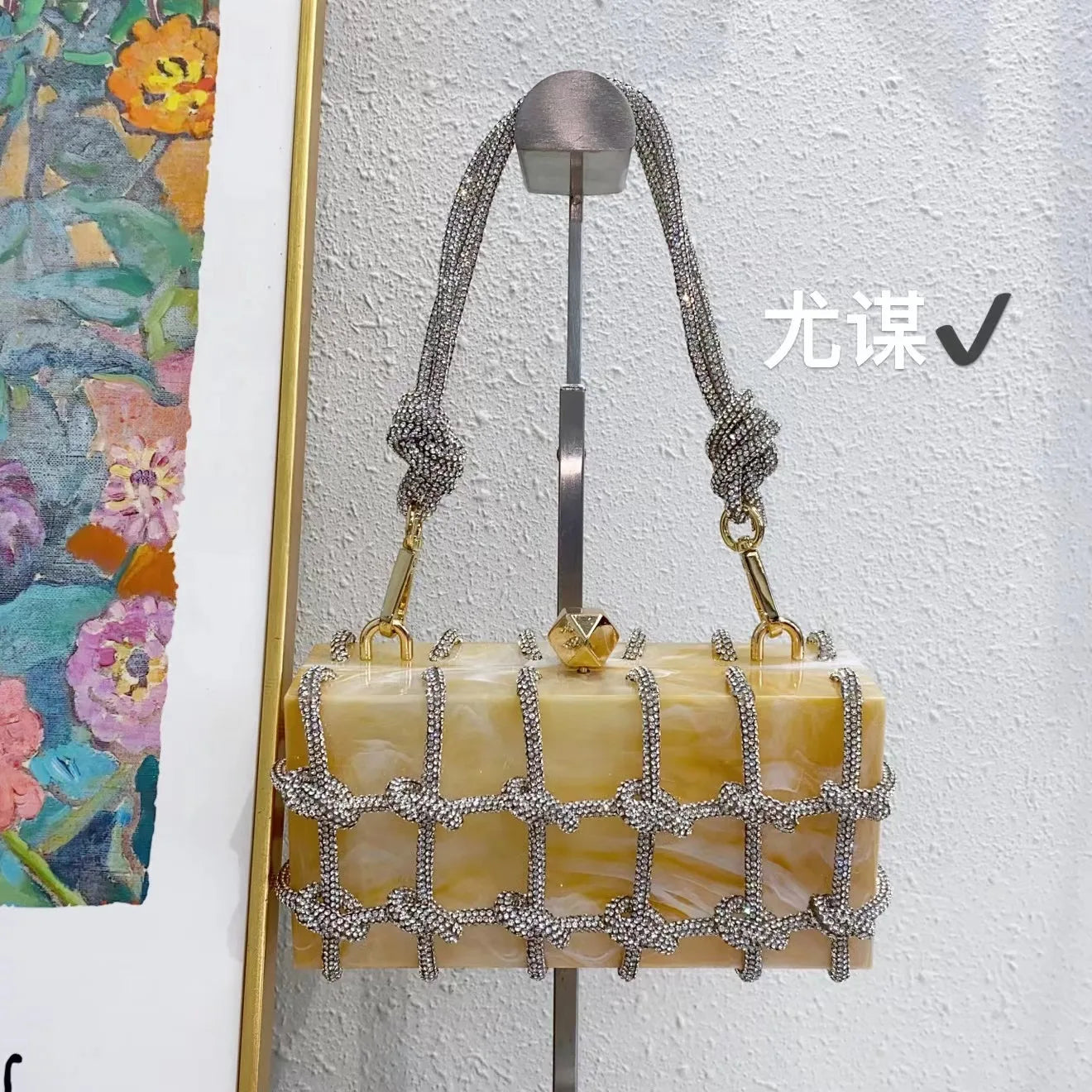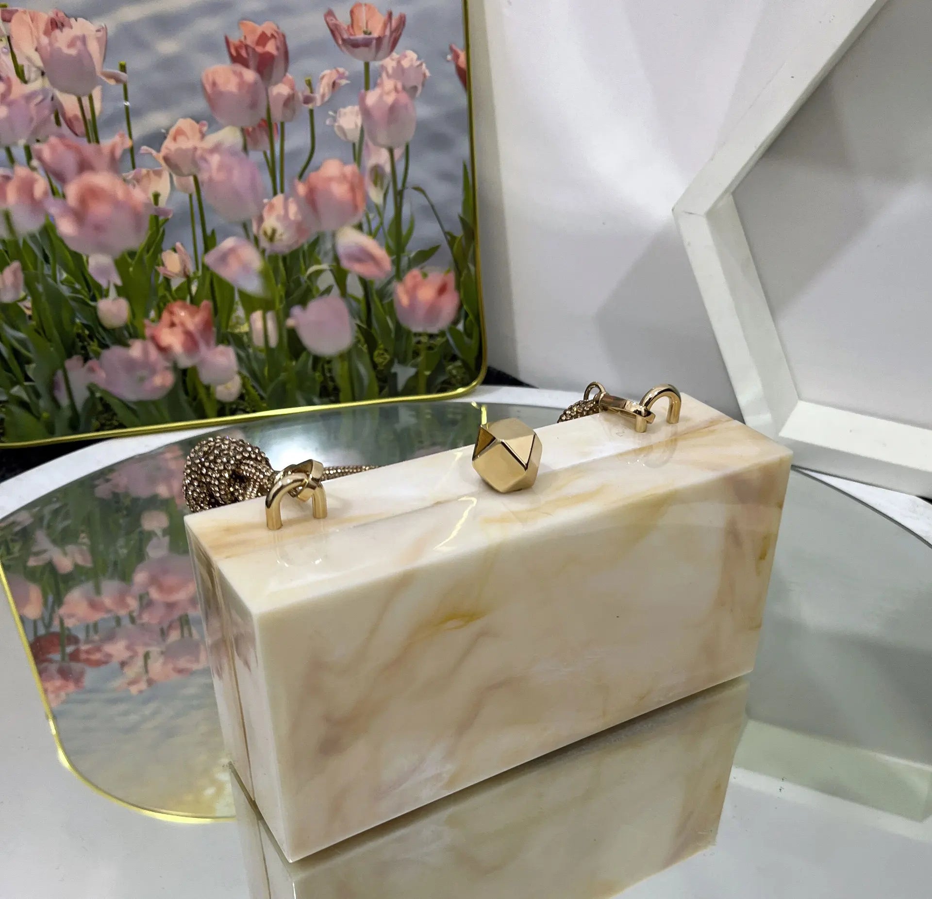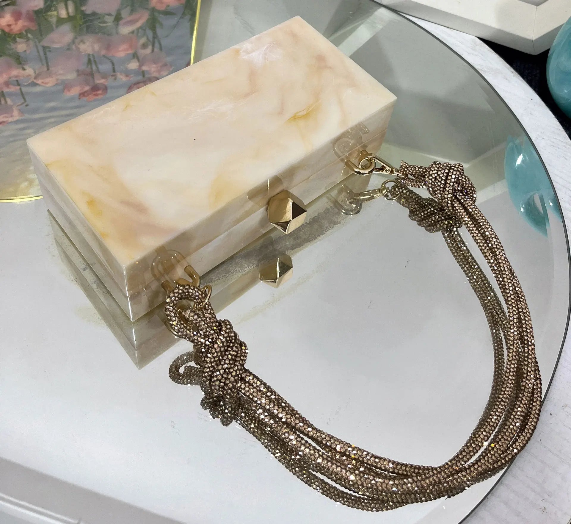 2024 Luxury Evening Clutch Bag Diamond Acrylic Square Handbag Women's Wedding Purse