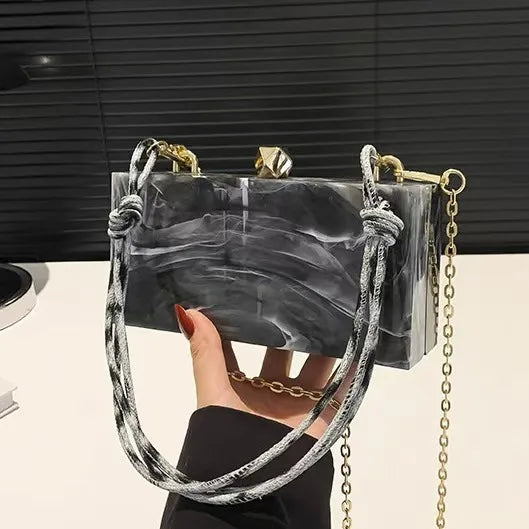 Elevate your style with this chic and versatile evening bag, perfect for any occasion. Crafted with durable acrylic and featuring a solid pattern, this fashion-forward box-shaped clutch is designed for the modern woman. The secure hasp closure ensures your essentials are safe, while the polyester lining adds a touch of elegance. Although compact, its design makes a bold statement, making it an ideal accessory for your next night out.