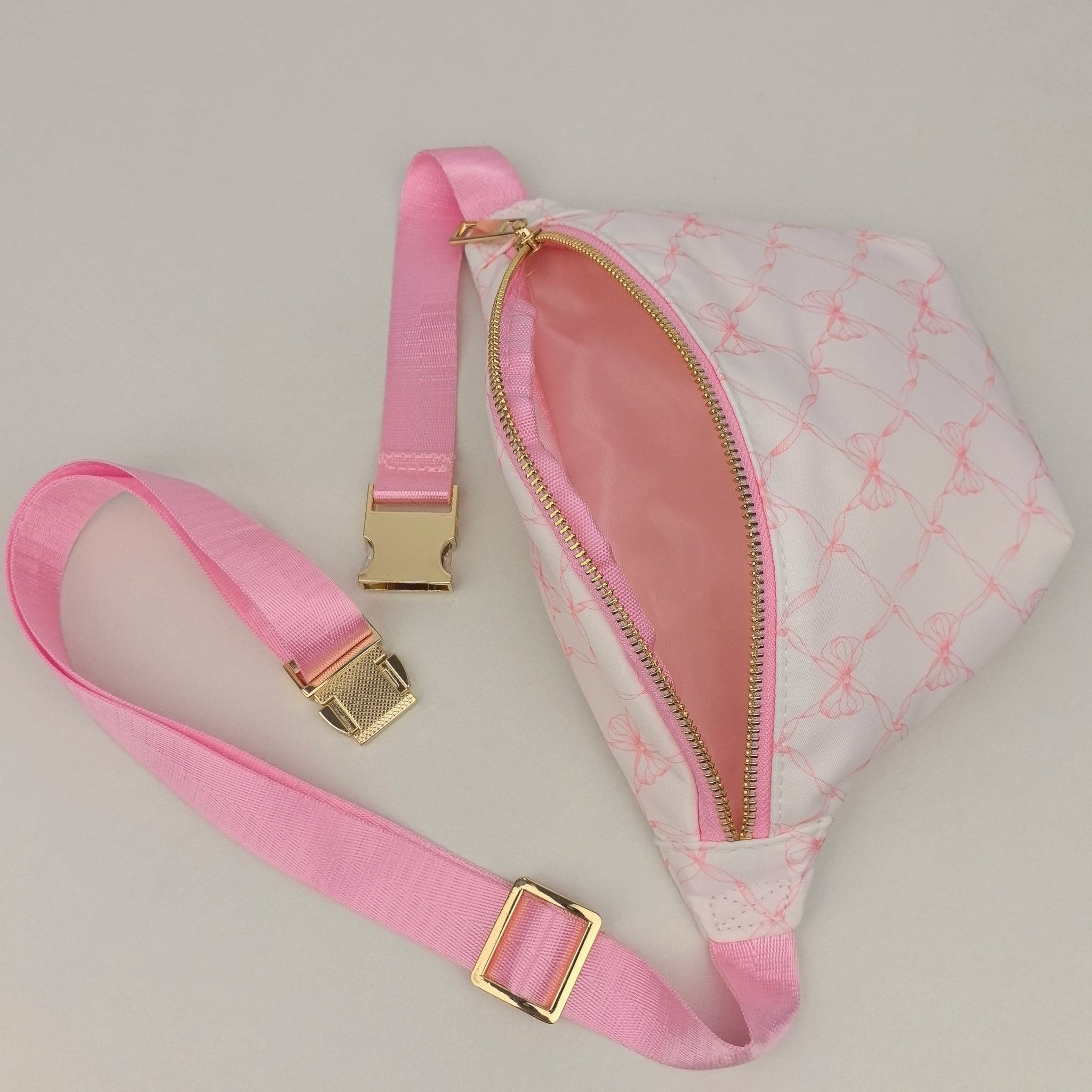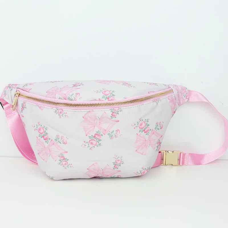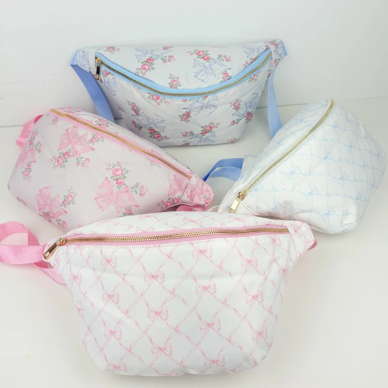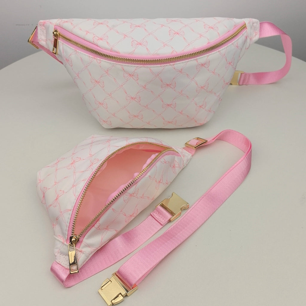 2024 Women's Nylon Bow Print Waist Bag Handbag Crossbody Chest Fanny Pack Travel Storage Adjustable