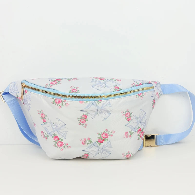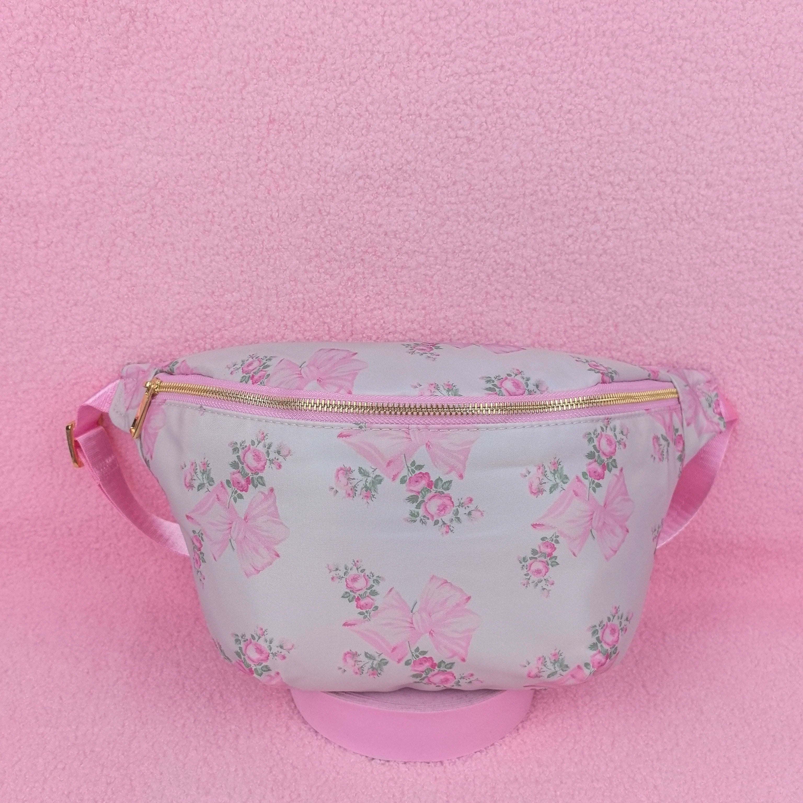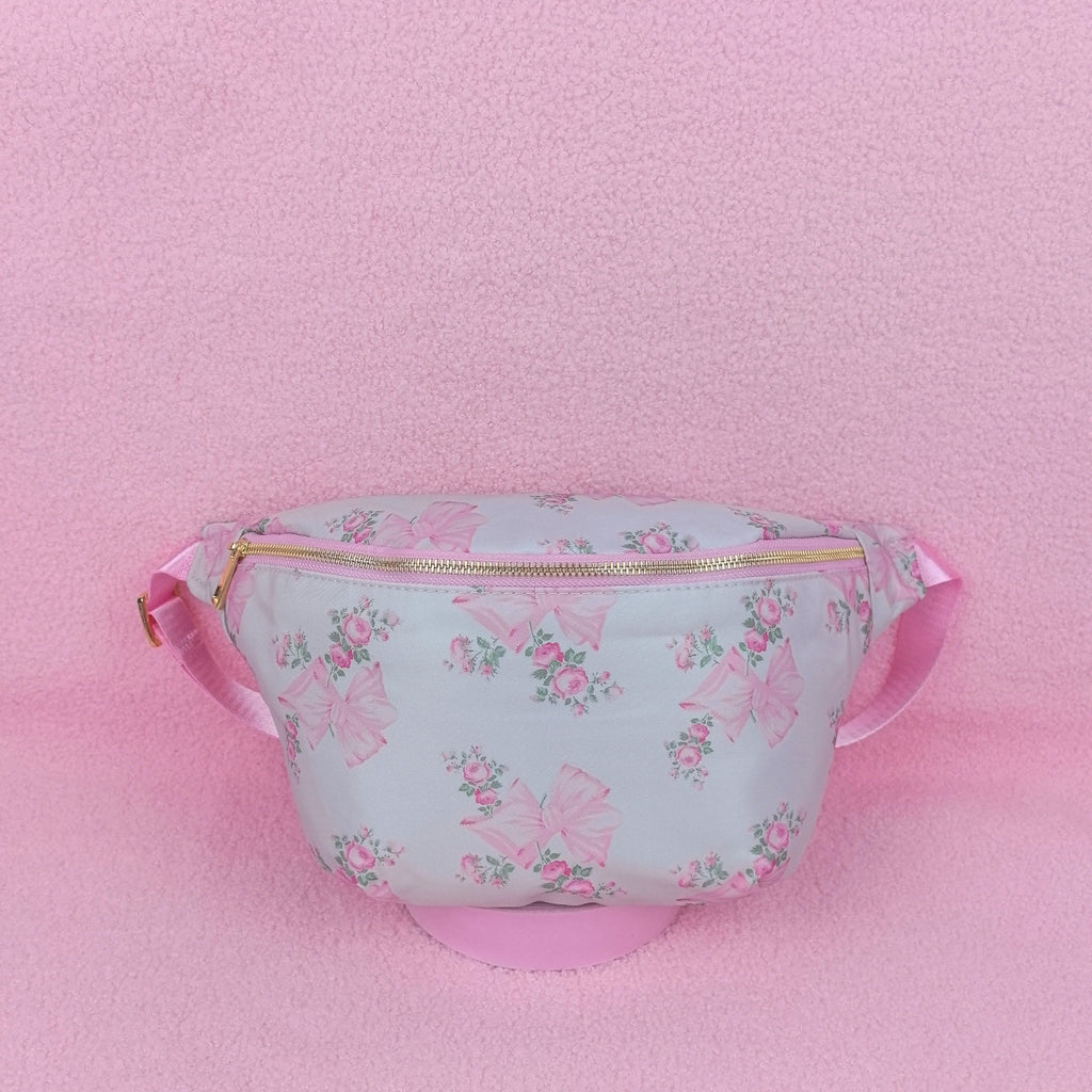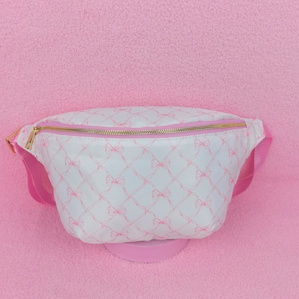 2024 Women's Nylon Bow Print Waist Bag Handbag Crossbody Chest Fanny Pack Travel Storage Adjustable