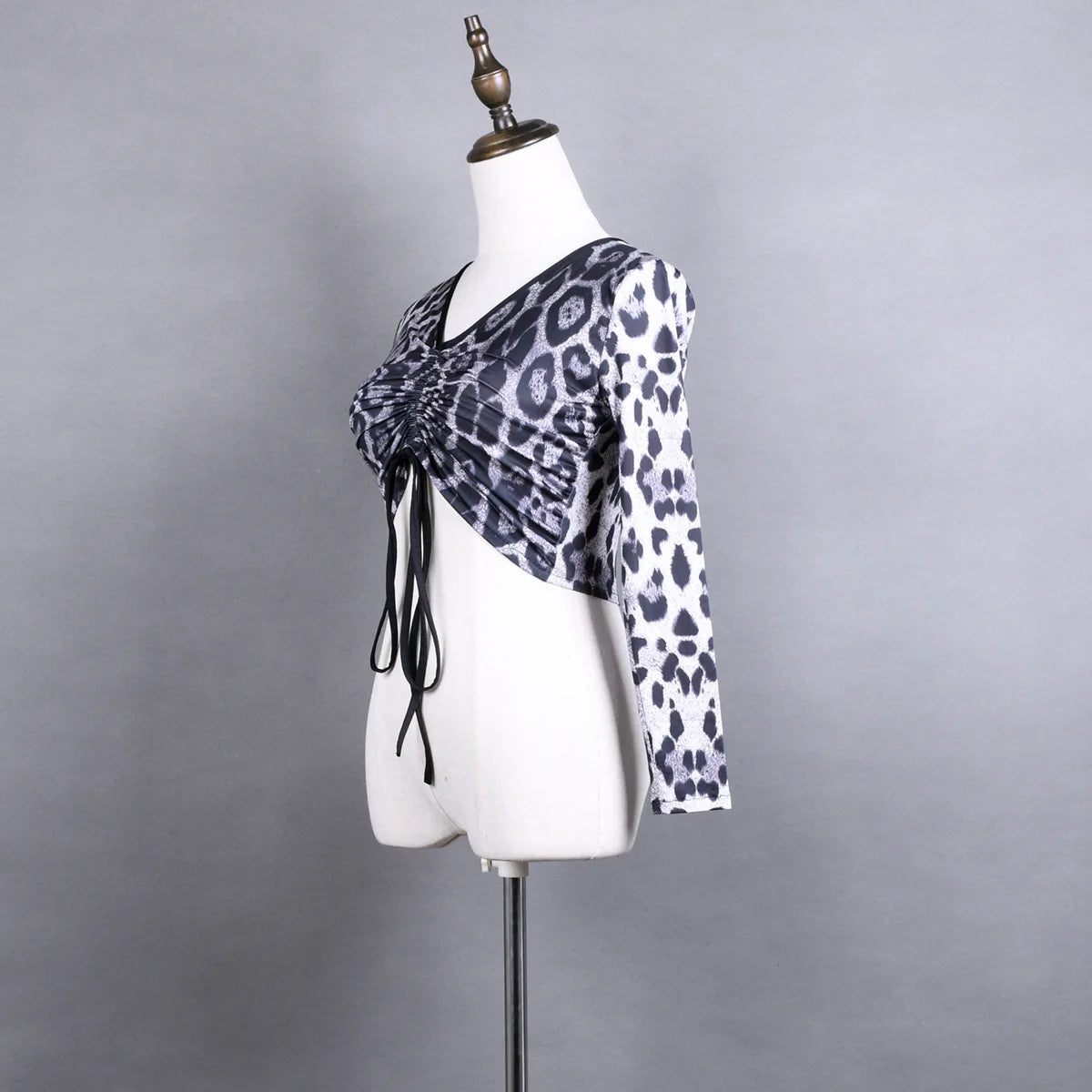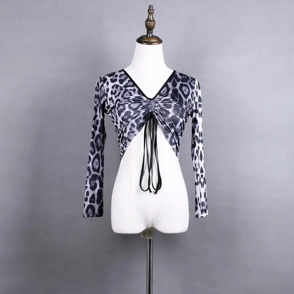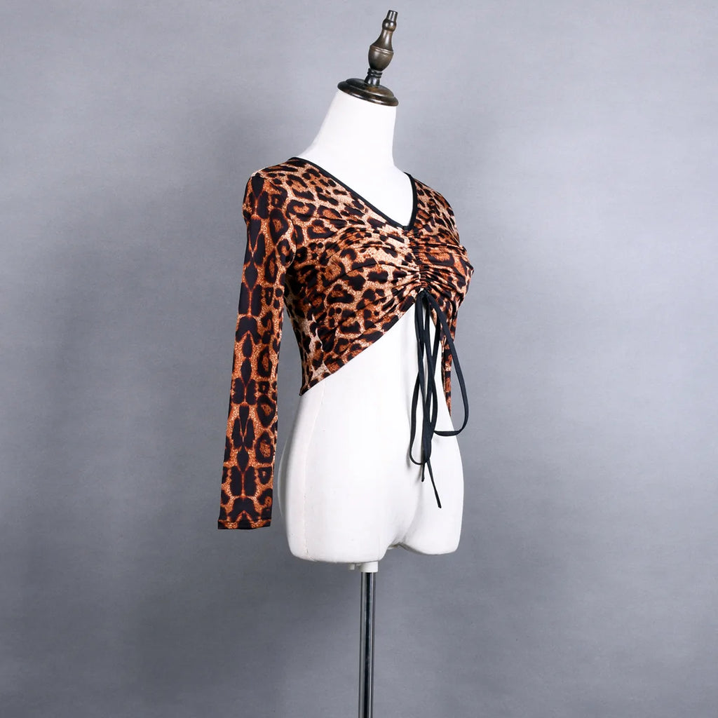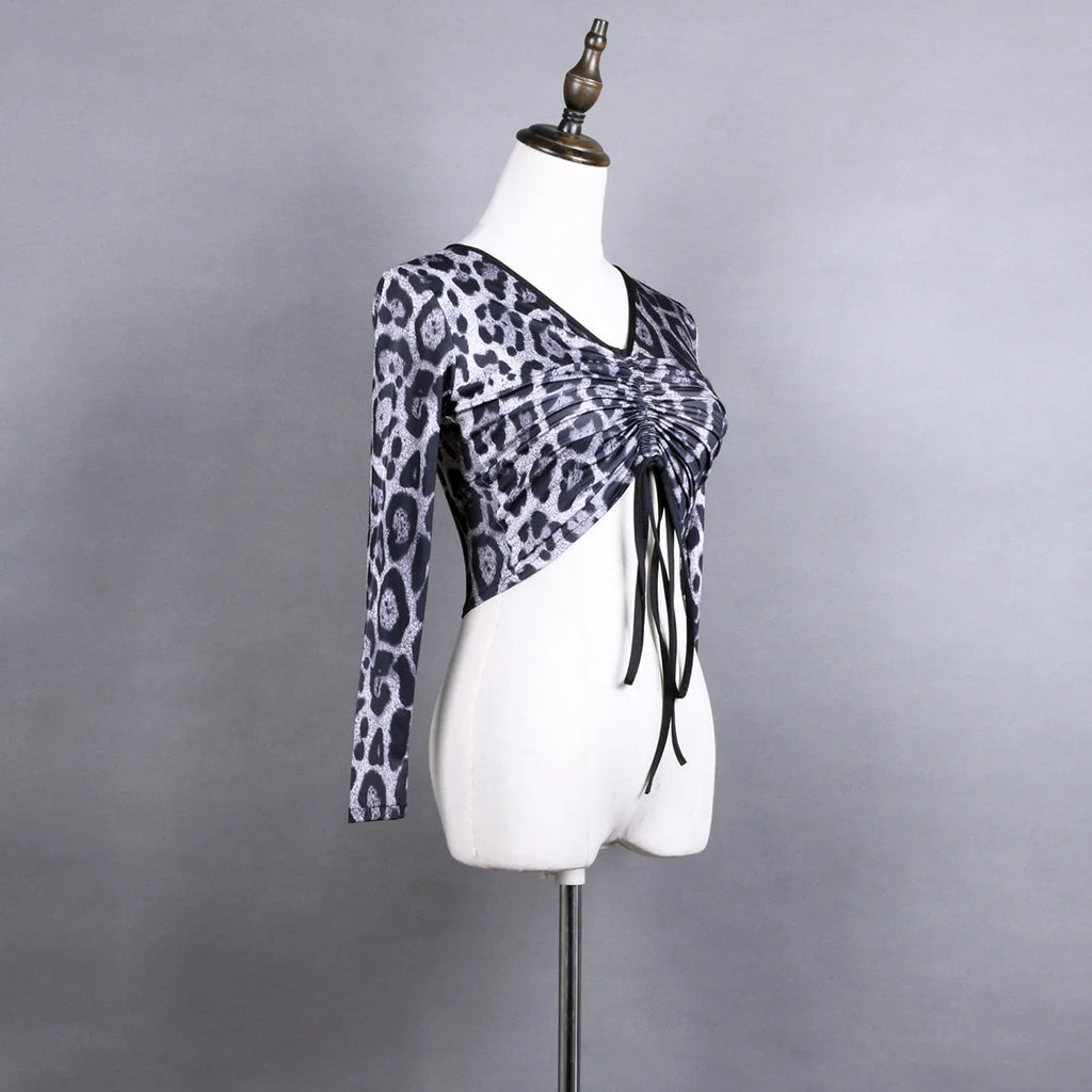 Elevate your performance with our exclusive Latin Dance Tops, expertly designed for women and girls. Crafted from a high-quality blend of cotton and polyester, these tops provide both comfort and style during your dance sessions. Available in elegant Black Leopard, they are perfect for stage, training, or performance settings. The design caters to various sizes, ensuring a perfect fit with customization options available.