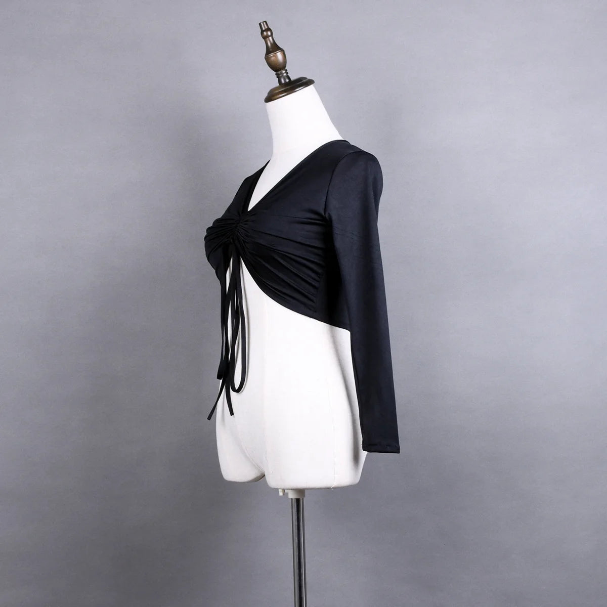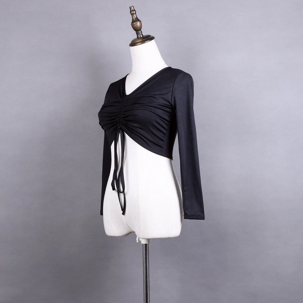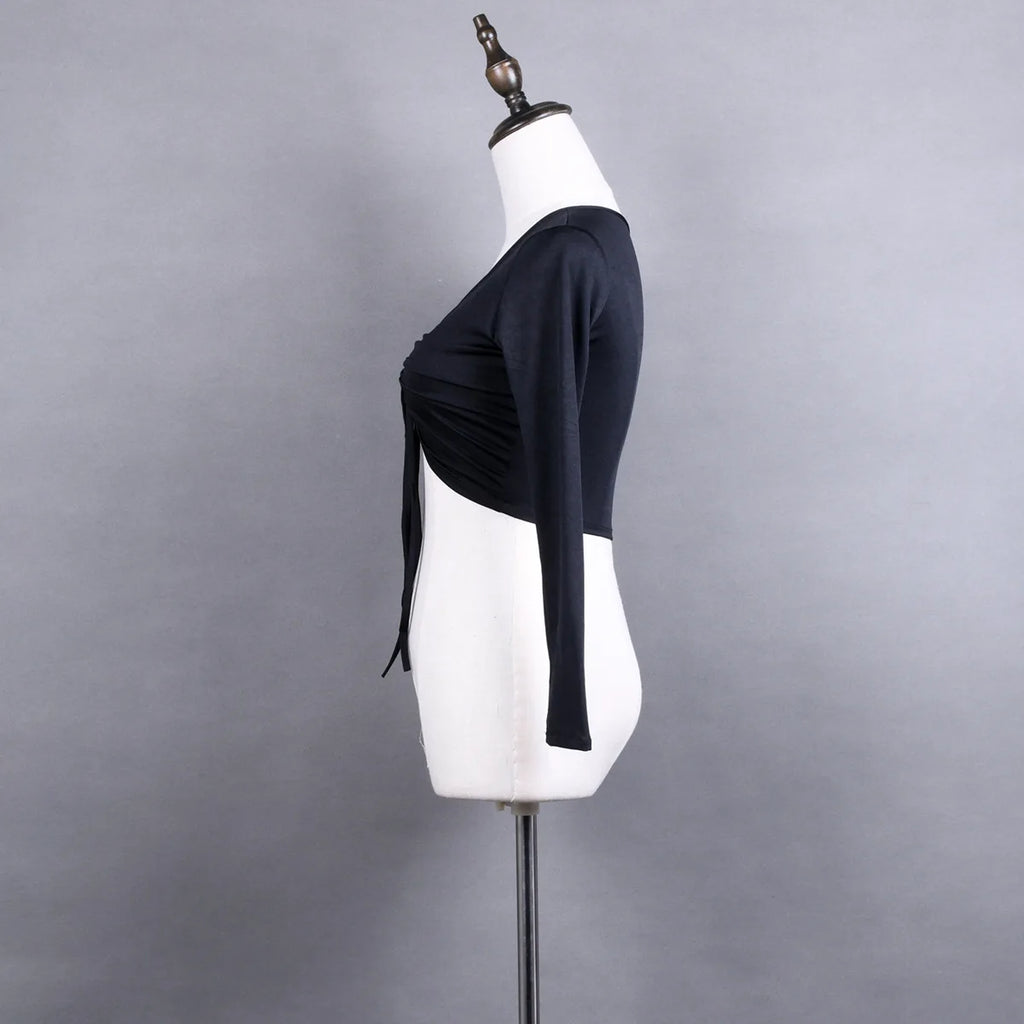 2024 Women's Latin Dance High Waist Crop Top, Adjustable Length, Modern Ballroom Costume