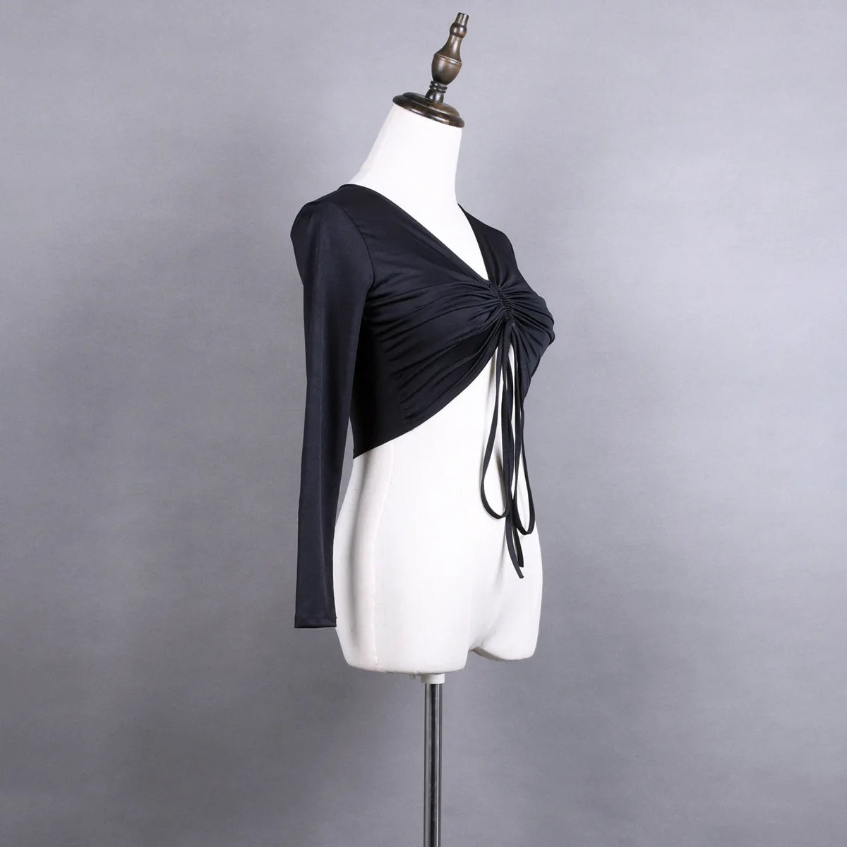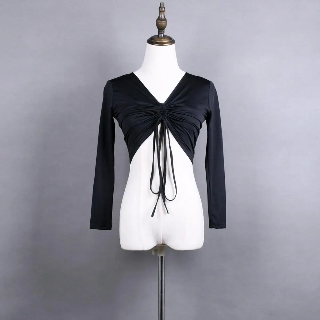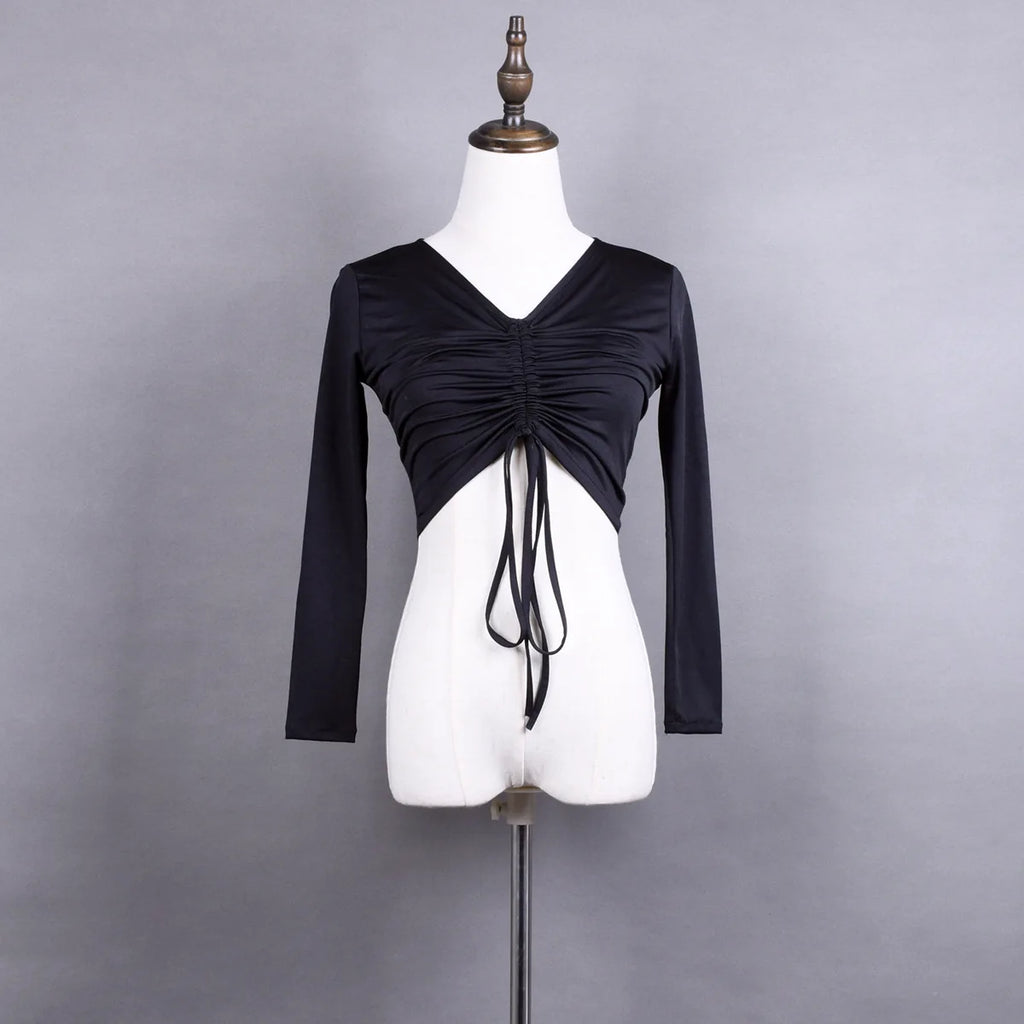 2024 Women's Latin Dance High Waist Crop Top, Adjustable Length, Modern Ballroom Costume