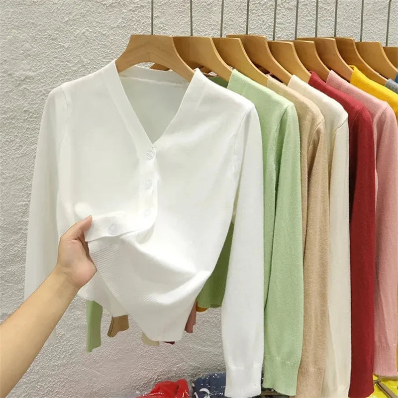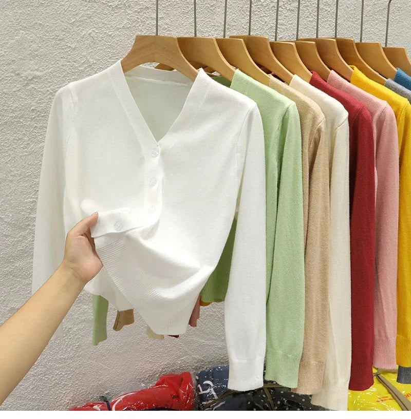 The solid, loose-fitting pattern makes it versatile for pairing with your favorite jeans or skirts. Although it's thin with fine yarn, it provides just the right amount of warmth for the cooler seasons. Enjoy the effortless style and cozy feel of this must-have autumn release.