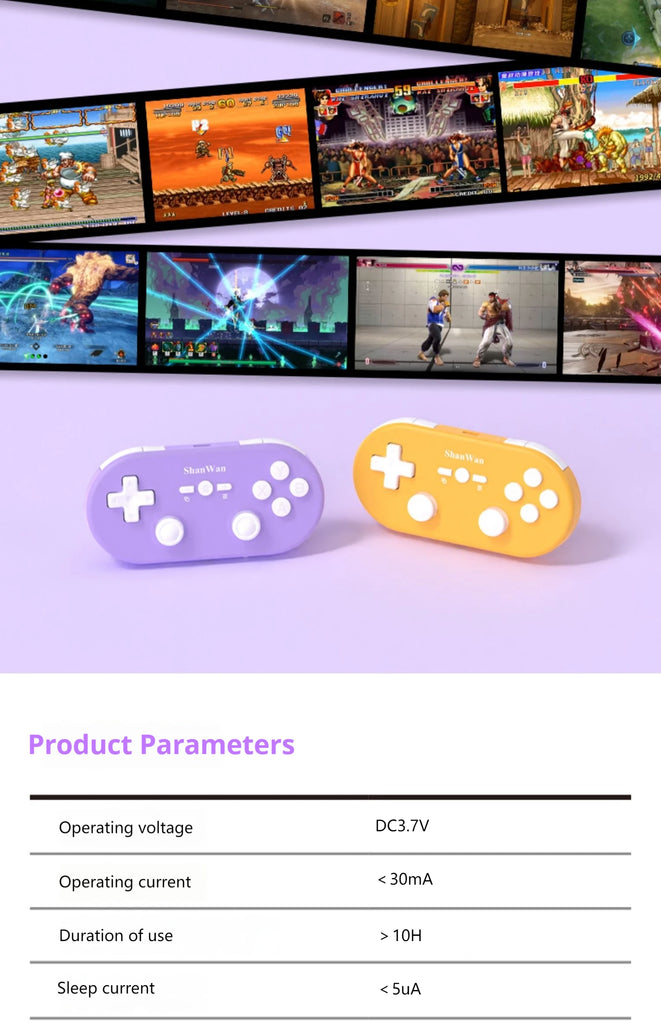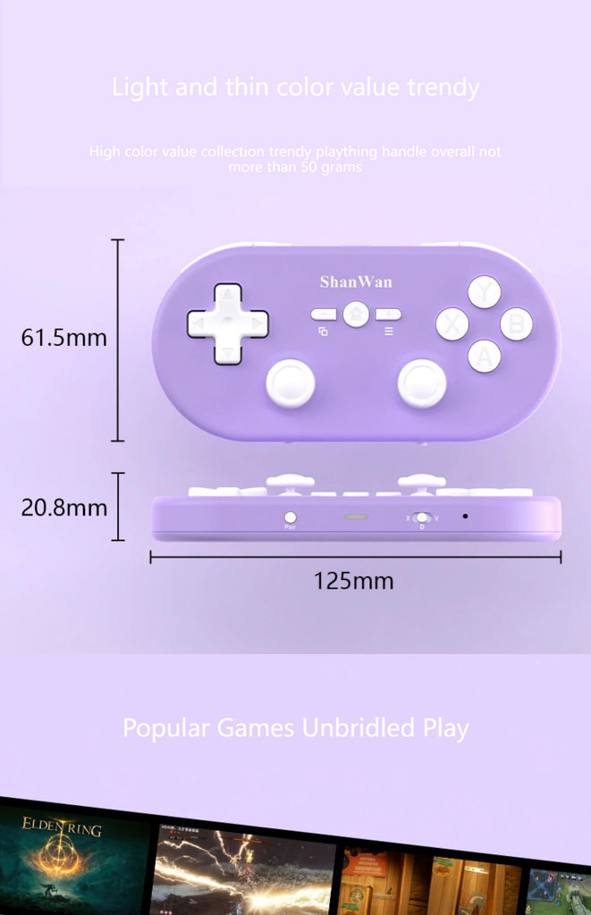 Introducing the versatile and efficient wireless gamepad, designed for a seamless gaming experience across various platforms. Engineered to be compatible with mobile devices, iOS, Android, and PC, this gamepad ensures you can enjoy your favorite games no matter where you are. With a robust Bluetooth transmission range of up to 8 meters, you'll have the freedom to move without losing connection. Its 500mAh battery offers over 10 hours of continuous playtime and an impressive standby duration when fully charged. Plus, quick charging capabilities mean you're always ready to jump back into action.