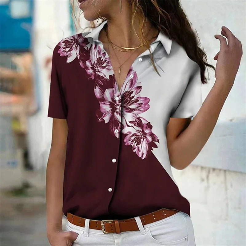 Discover the perfect blend of style and comfort with our women's slim-fit floral casual shirt. Crafted from high-quality polyester broadcloth, this shirt features a turn-down collar and a single-breasted closure for a chic and sophisticated look. Designed with a regular clothing length and standard thickness, it’s ideal for spring and summer outings. The short sleeves and slim fit ensure a flattering silhouette, while the floral pattern adds a touch of elegance. Whether dressing up or down, this casual shirt is a versatile addition to any wardrobe.