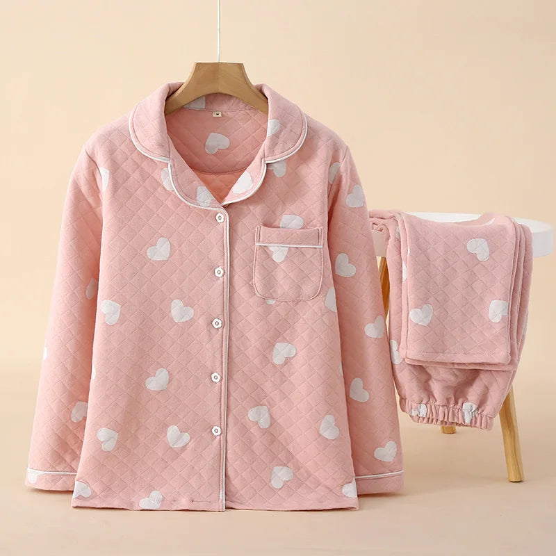 2025 Women's Thick Warm Cardigan Pajama Set - Long Sleeve Floral Winter Sleepwear