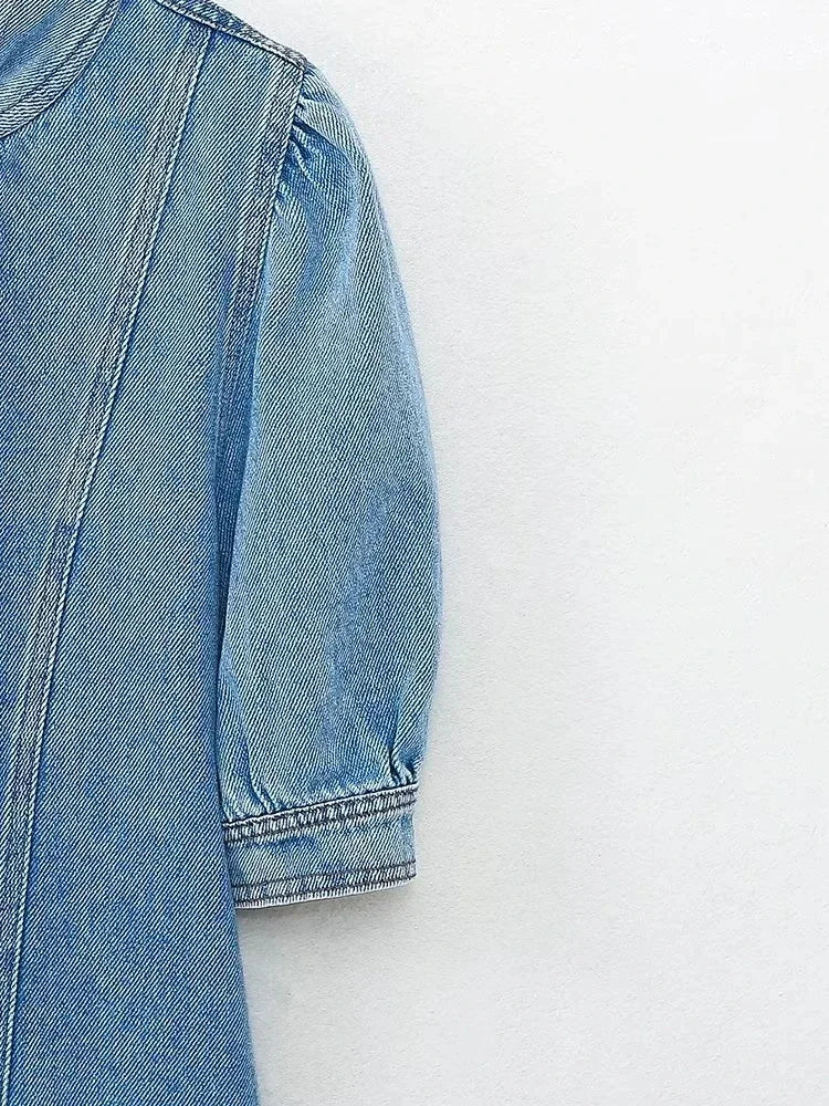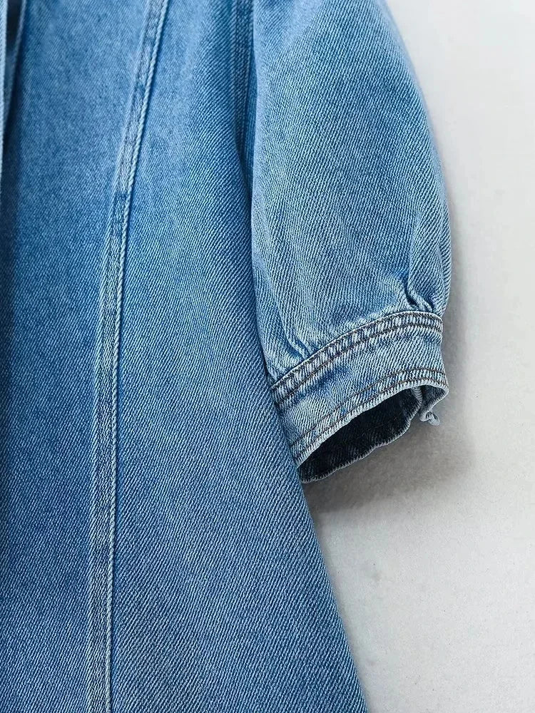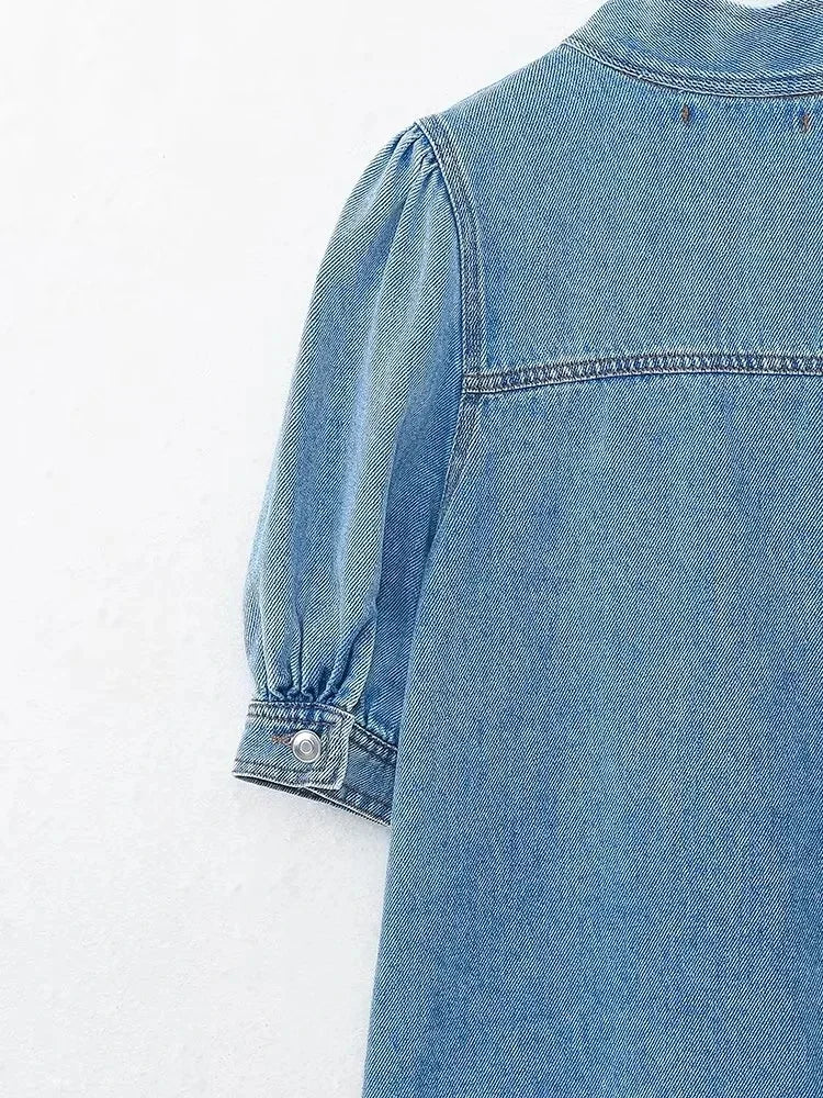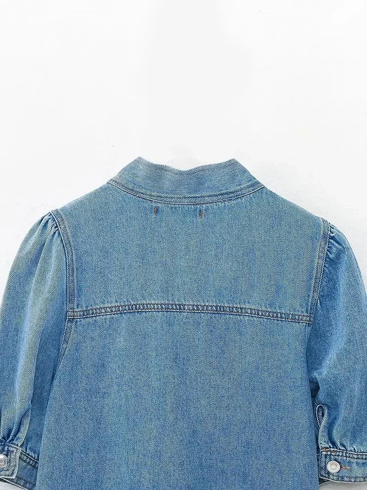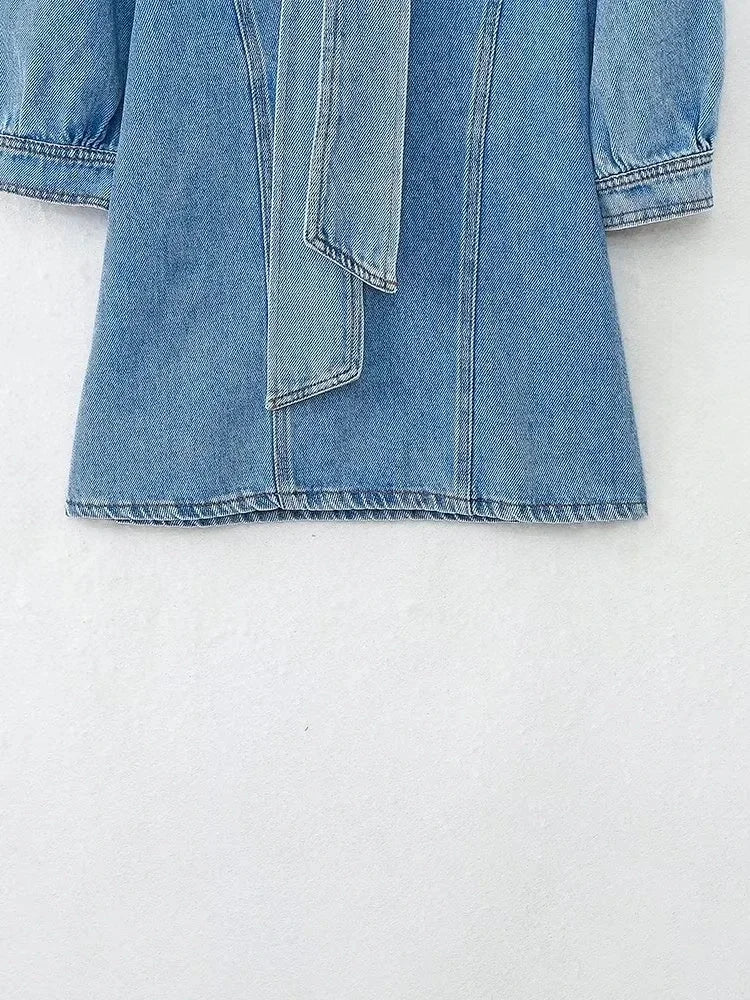 2025 Women's Fashion Bowtie Denim Shirt - Casual Loose Blouse with Long Sleeves