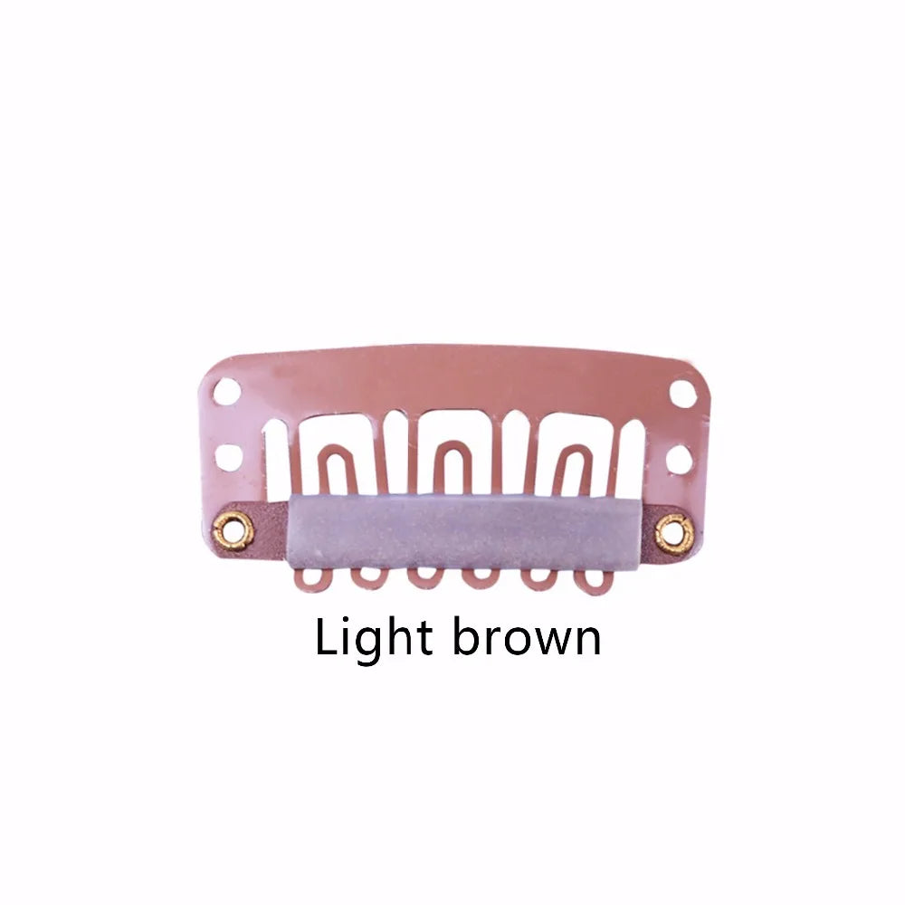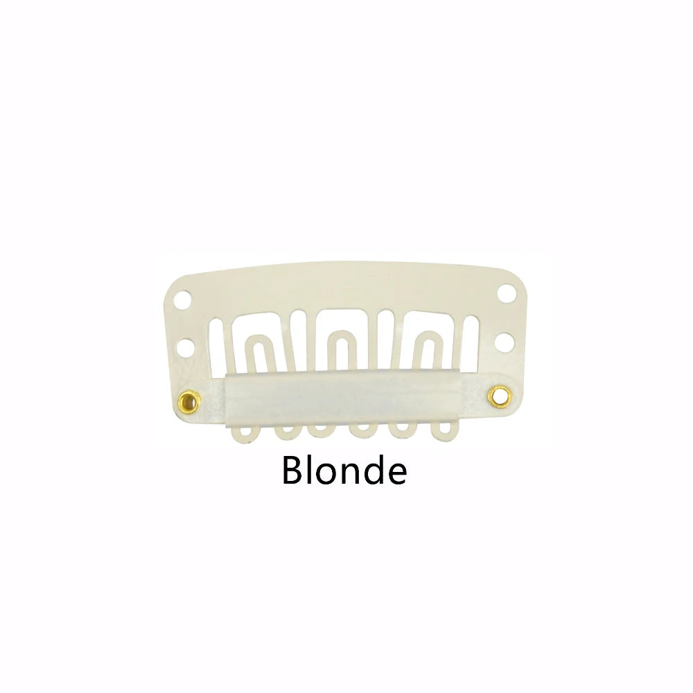 Enhance your hair extensions with these premium U-Shaped Clips. Crafted from durable metal and equipped with a silicone back, these clips ensure a secure and gentle grip. Perfect for a variety of hair shades, they come in black, blonde, dark brown, and light brown. Each set includes 20 clips, each measuring 32mm, designed to seamlessly blend and hold your extensions in place.