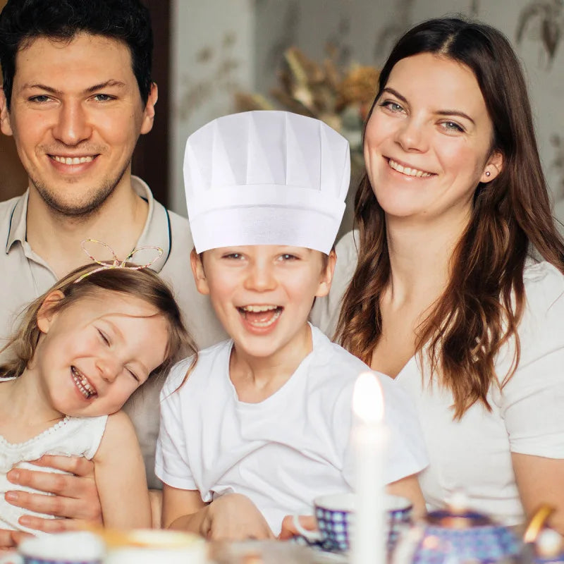 Introducing our practical and lightweight disposable chef cap, specially designed for kids. Crafted from safe and comfortable non-woven fabric, this hat is perfect for children to use in cooking or baking activities at home or in catering schools. The simple design ensures that it won't be a bother, making it ideal for young chefs in training. Each pack contains 20 hats to minimize cleaning efforts and provide ample supply for multiple uses.