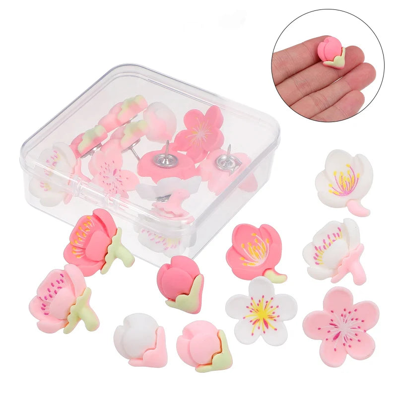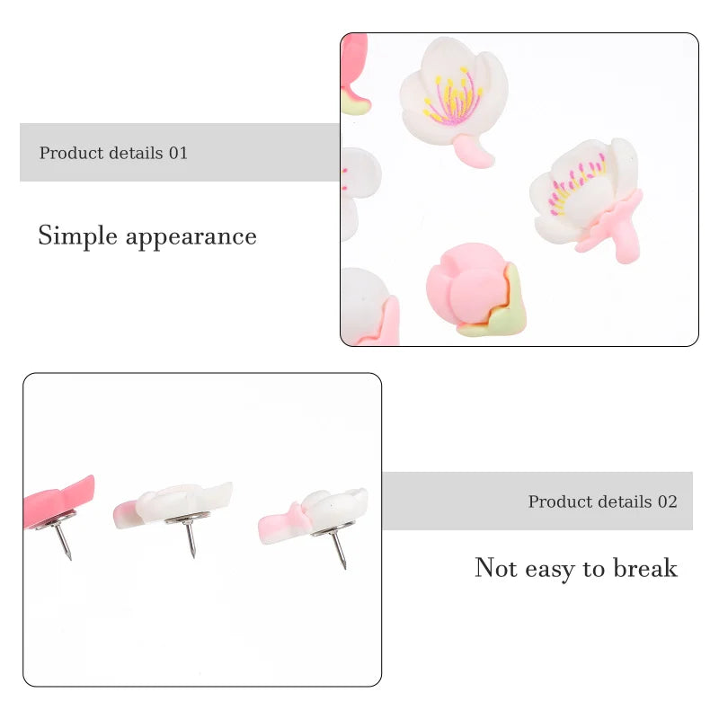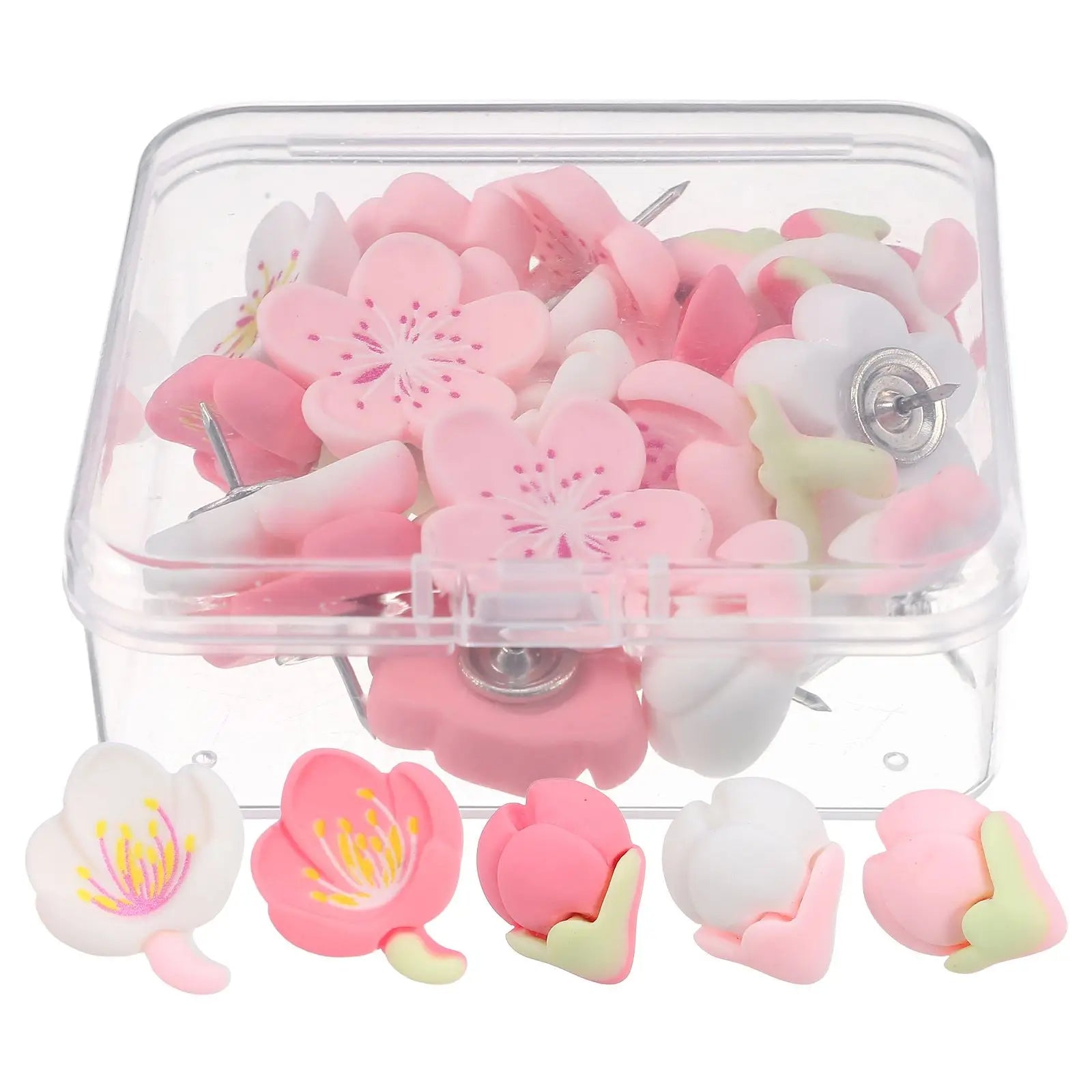 20pcs Peach Blossom Resin Thumbtack Push Pins for DIY Wall Art, Map, Cork Board, Home Office Supplies