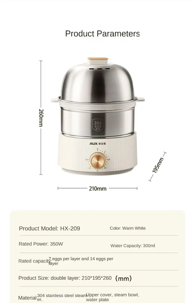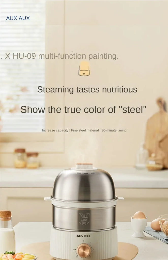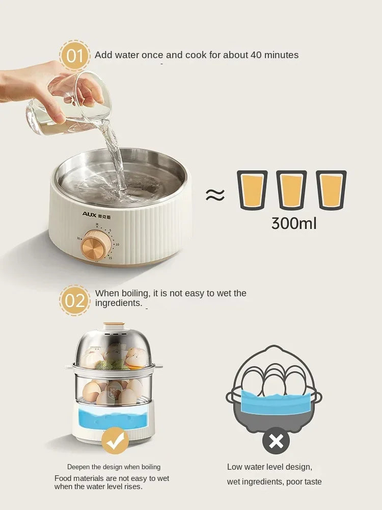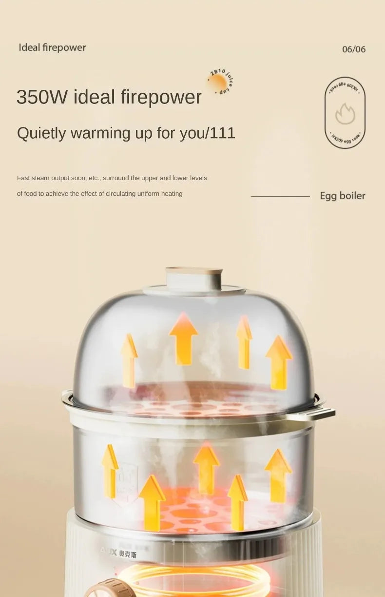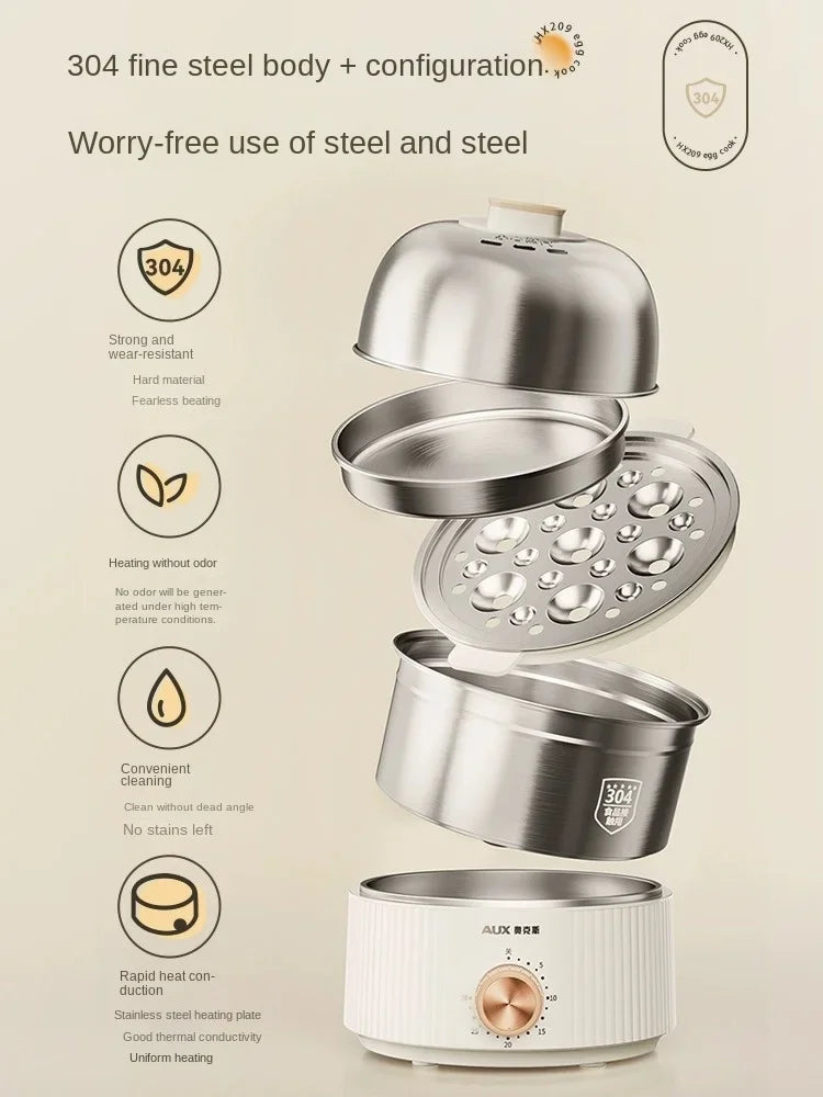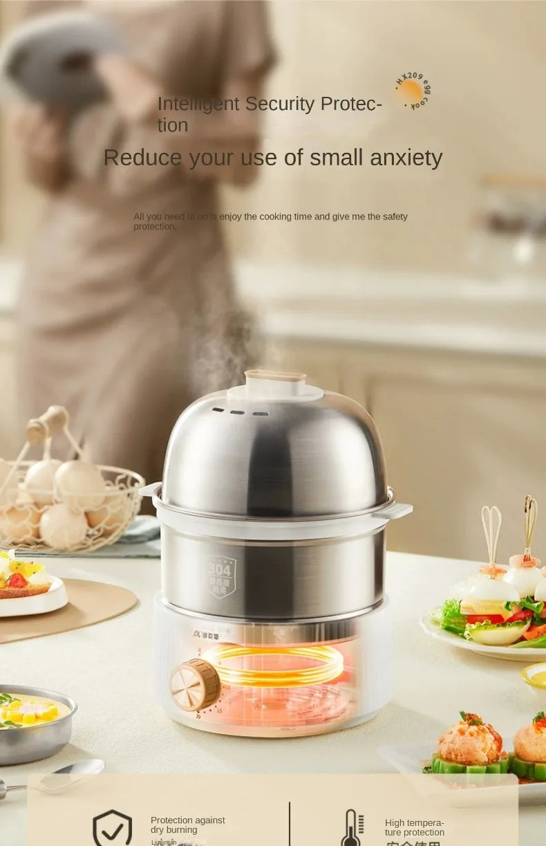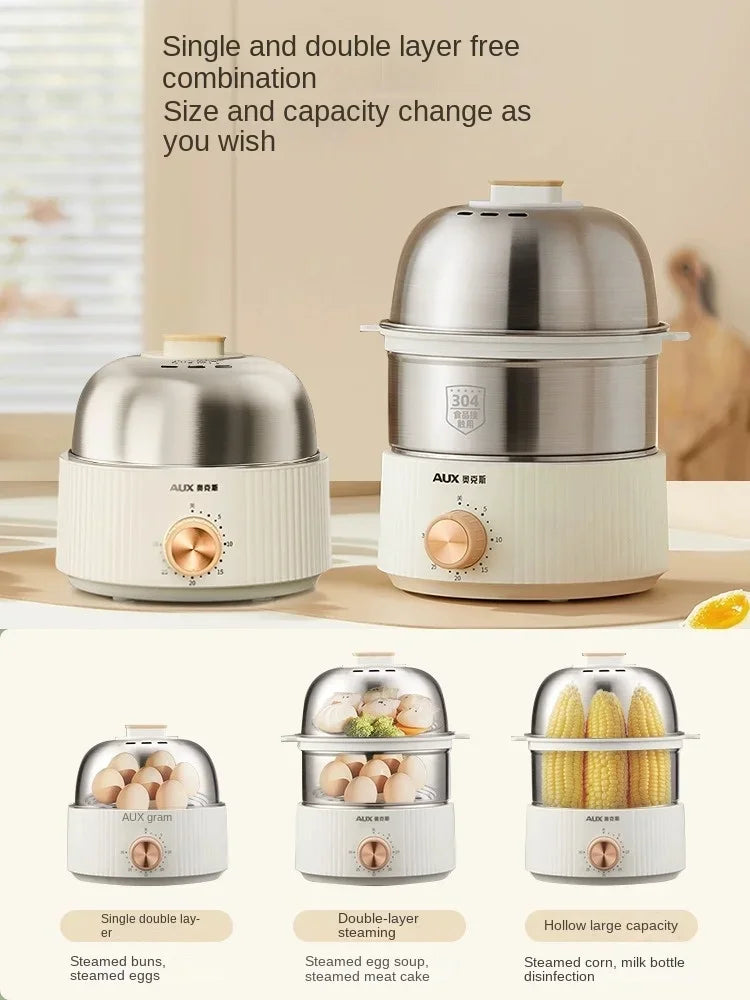 220V Electric Egg Cooker with Timer - 1 or 2 Layer, Auto-Off, Stainless Steel Egg Steamer for Home Breakfast