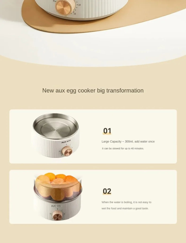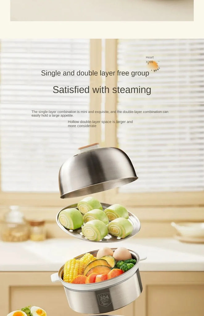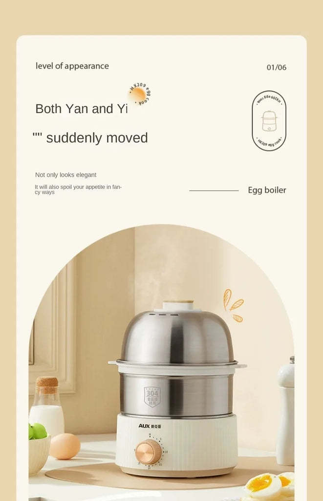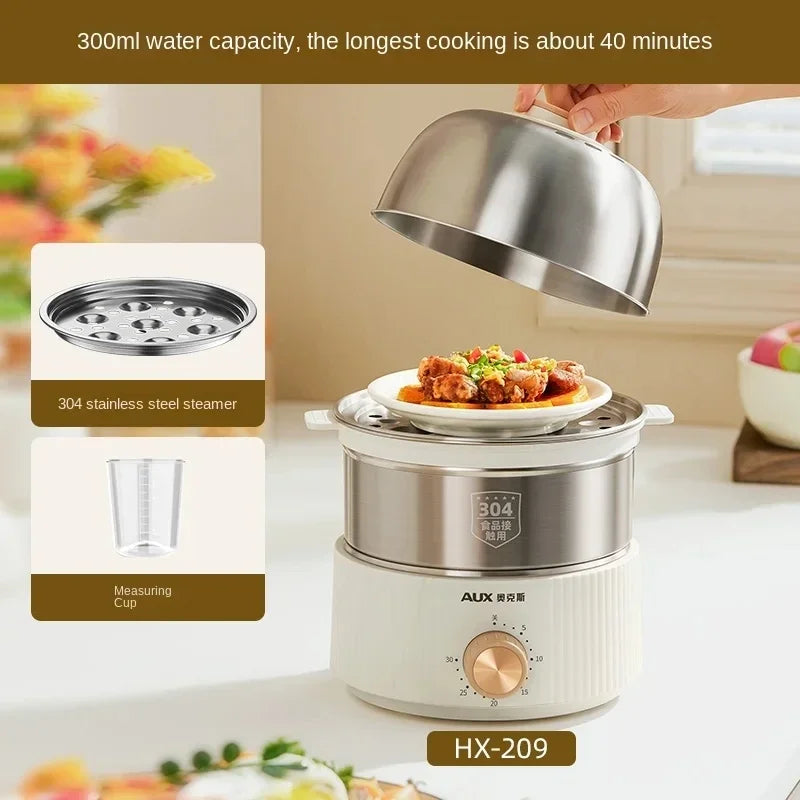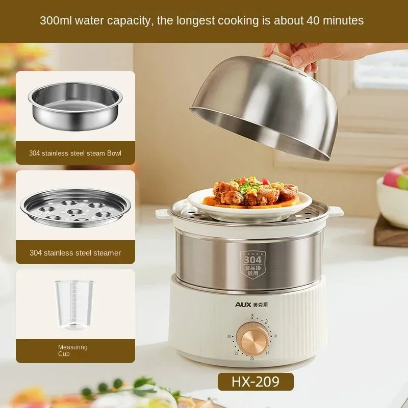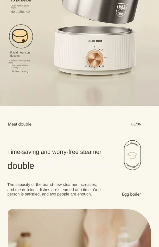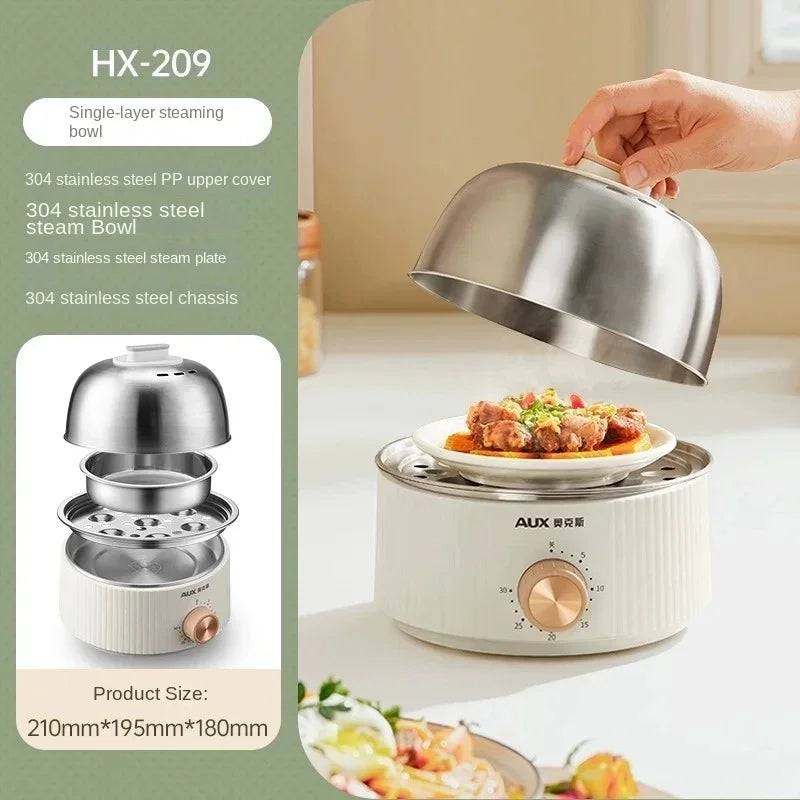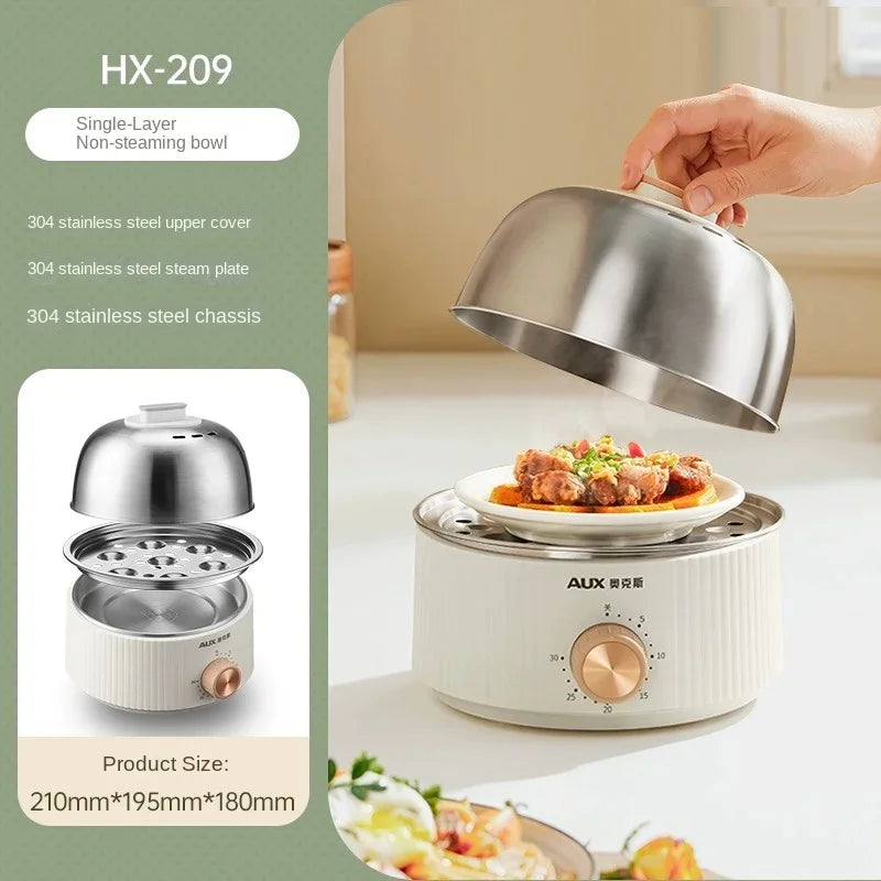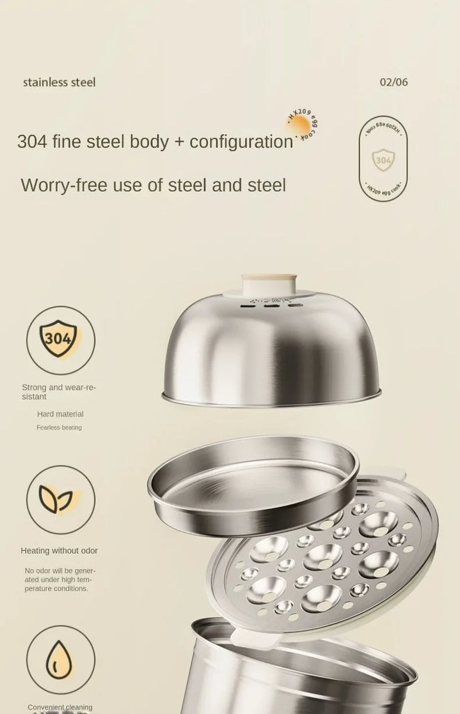 220V Electric Egg Cooker with Timer - 1 or 2 Layer, Auto-Off, Stainless Steel Egg Steamer for Home Breakfast