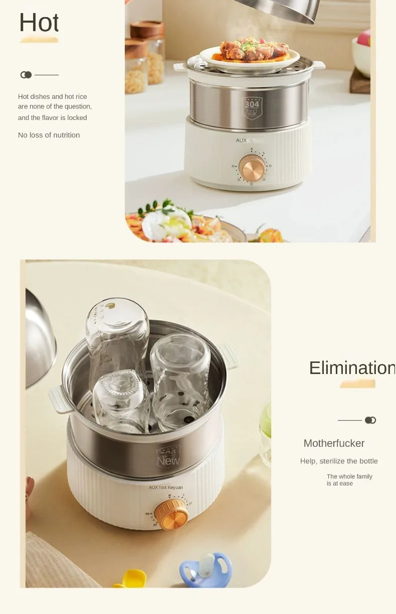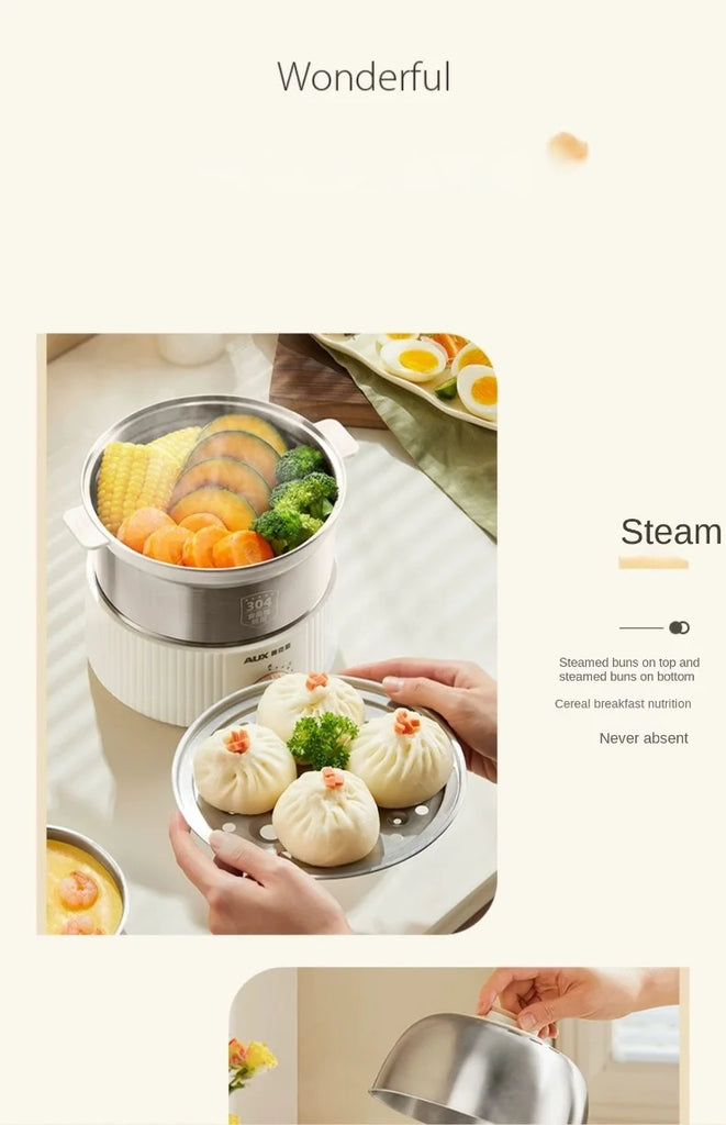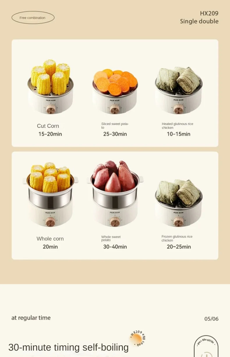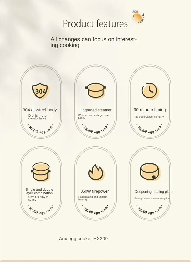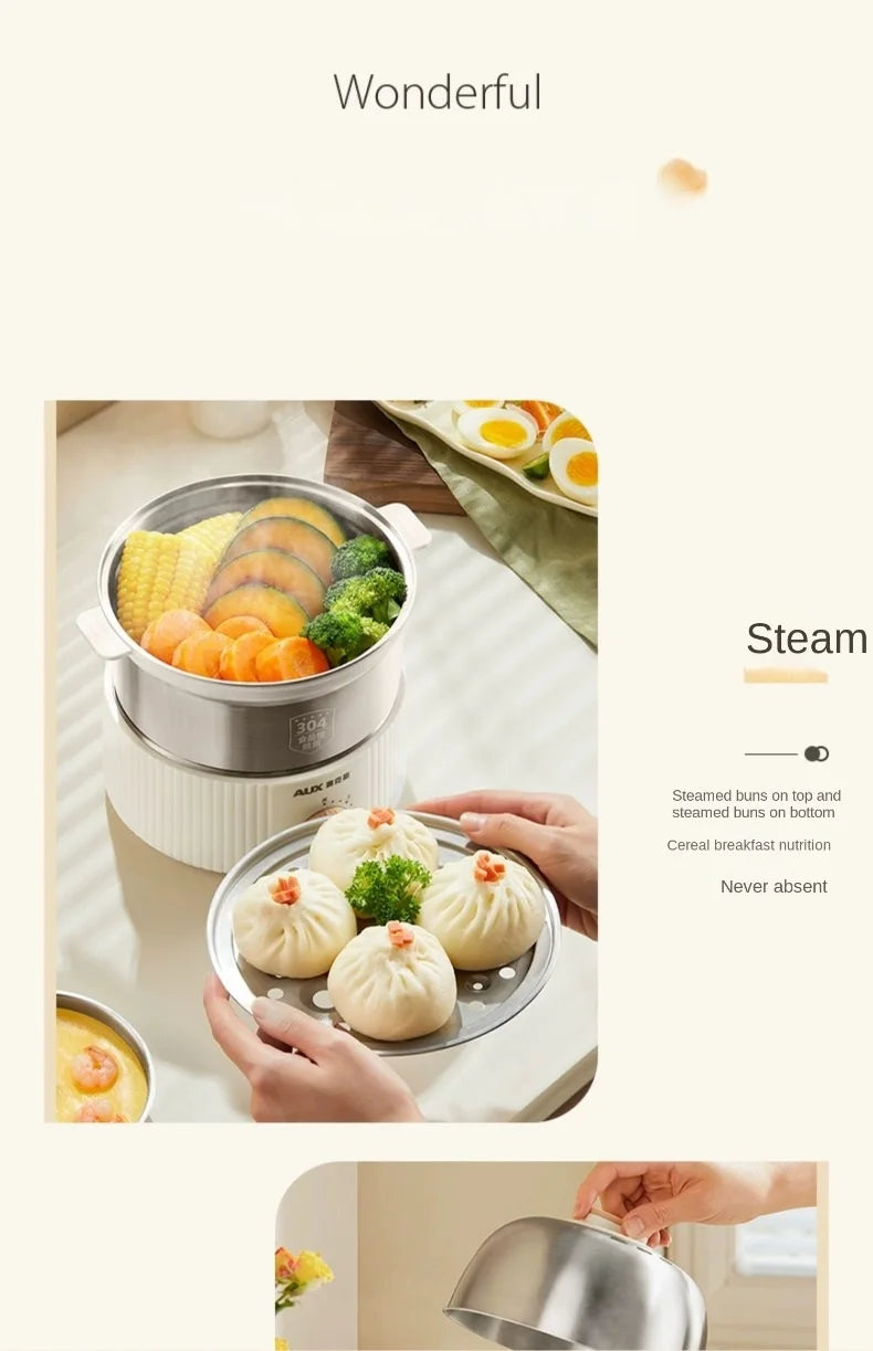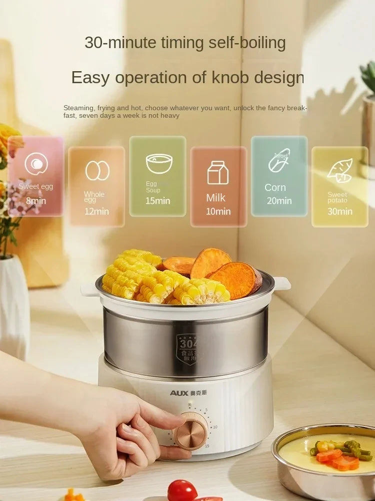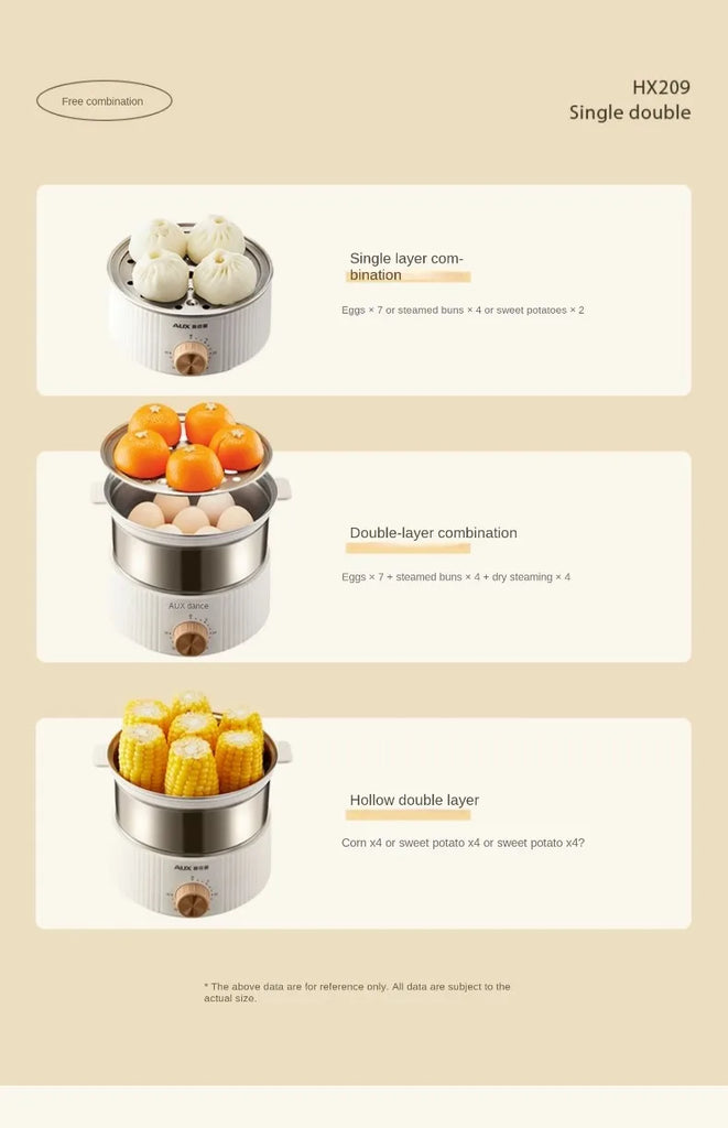 220V Electric Egg Cooker with Timer - 1 or 2 Layer, Auto-Off, Stainless Steel Egg Steamer for Home Breakfast