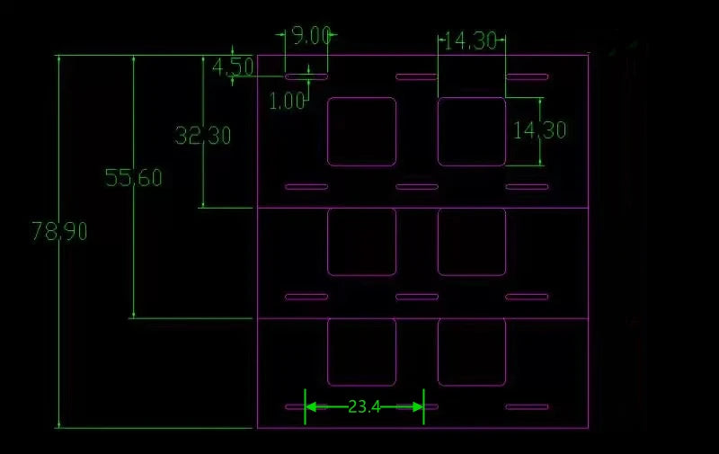 - Hole spacing: 21.5mm, 23mm, and 23.4mm