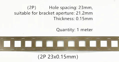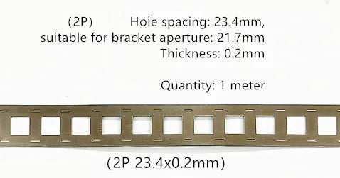 Enhance your battery pack assembly with our high-quality Nickel Strip, specifically designed for 21700 battery connectors. Crafted from durable SPCC nickel plating, this strip ensures excellent conductivity and resistance to wear. Available in various configurations, it can accommodate different bracket apertures, making it versatile for multiple applications.