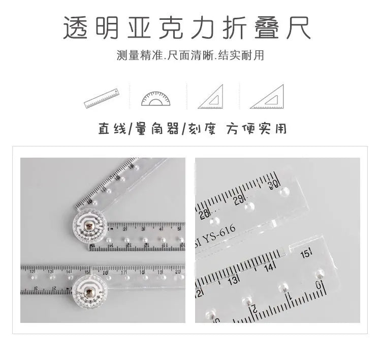 30cm Foldable Acrylic Ruler Multifunctional Student Measuring Tool Geometry Protractor for Kids Stationery Supplies