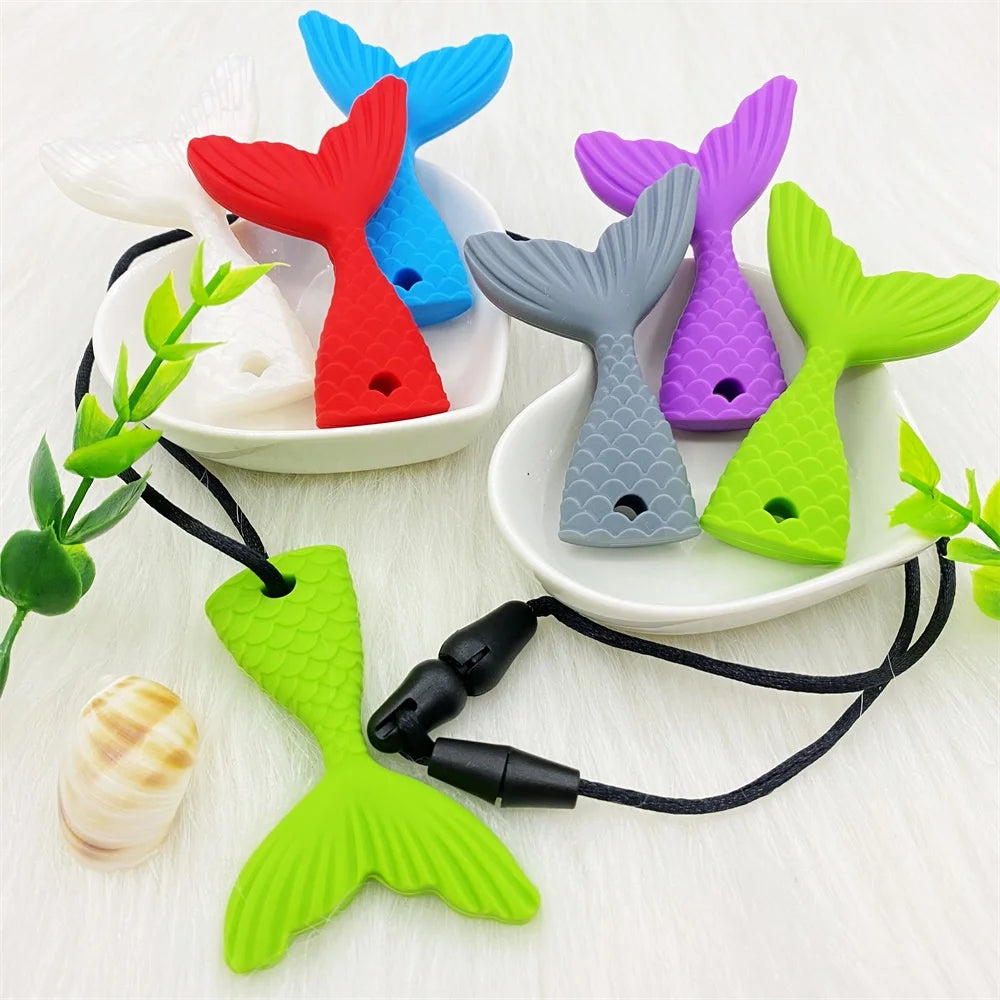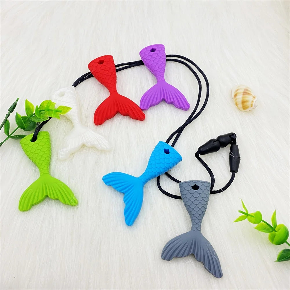 3pc Silicone Mermaid Tail Chew Necklace Teether Set for Kids Sensory & Special Needs