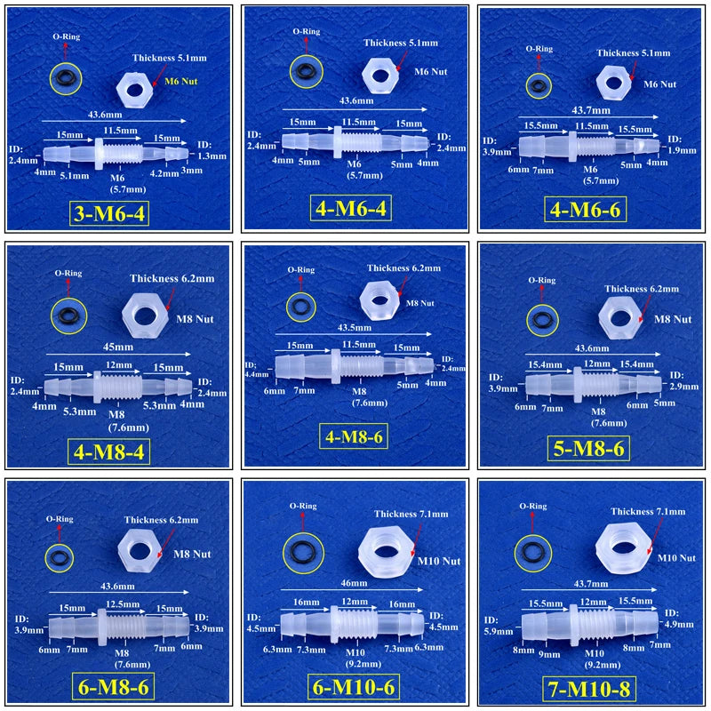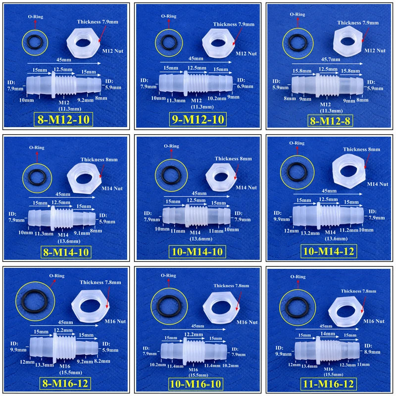 Designed with threaded and fast-connect features, they ensure a secure seal using a high-quality NBR O-Ring, effective across a wide temperature range. Compatible with standard garden water systems and compliant with DIN standards, these connectors come in various sizes to fit your needs, from 3-M6-4 to 12-M16-12.