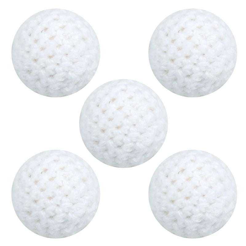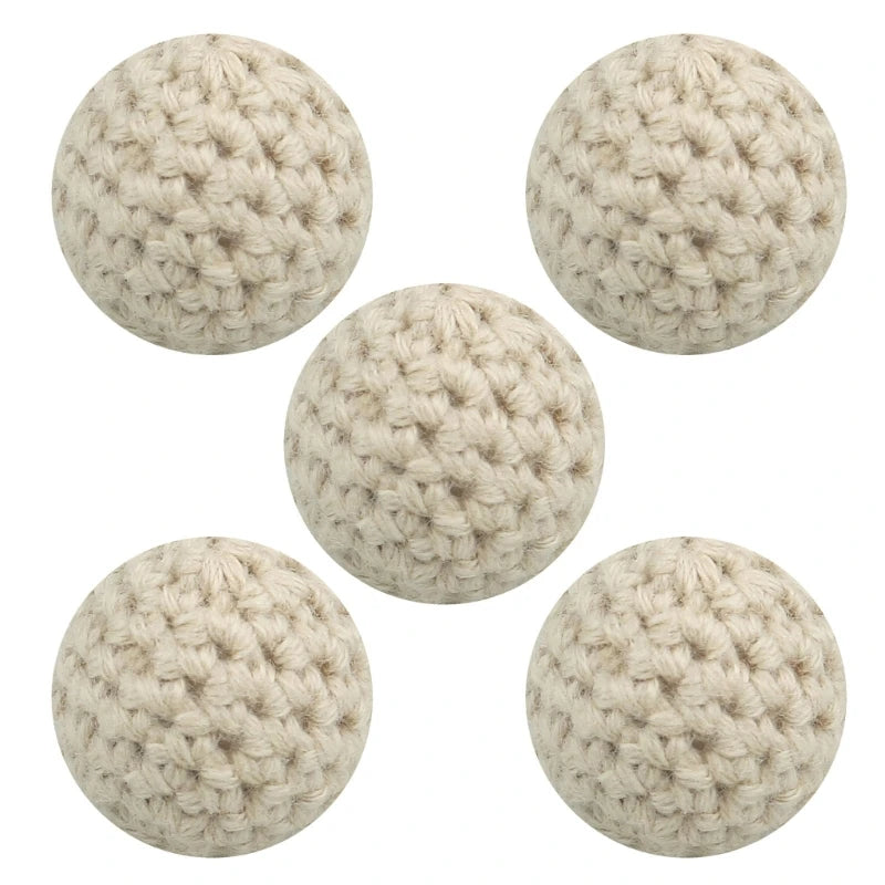 Introduce a touch of creativity and warmth to your craft projects with these charming crochet beads made from high-quality wool thread. Perfectly sized at 16mm, these beads are ideal for crafting a variety of items from baby toys to decorative accessories. Sold in a convenient set of five, they offer versatility and durability without the use of harmful chemicals.