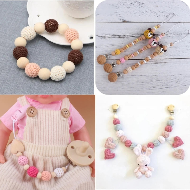 5pc Wool Crochet Teething Beads for Baby Pacifier Clip & Nipple Holder DIY Accessories