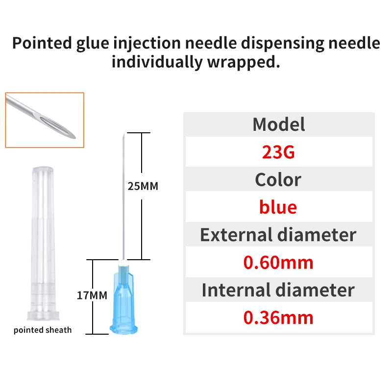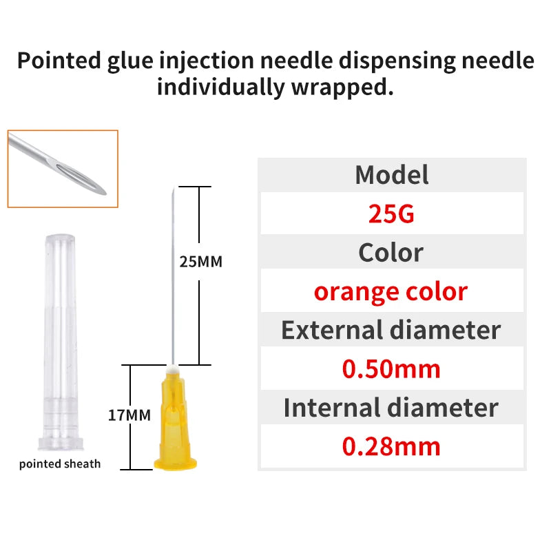 50pcs Pointed Dispensing Needles with Caps - Glue Syringe Tool, Individually Packaged