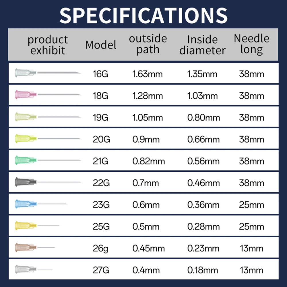 - Available Sizes: 16G, 18G, 19G, 20G, 21G, 22G, 23G, 25G, 26G, 27G
