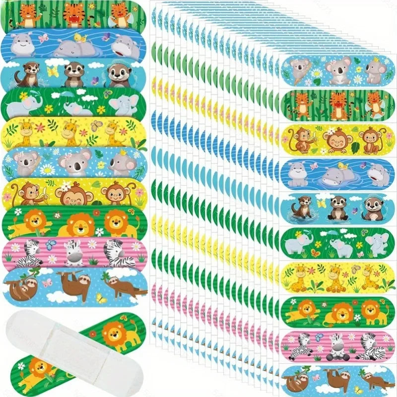 50pcs Cute Cartoon Animal Bandages Waterproof Kawaii Adhesive Wound Plasters: Monkey, Elephant, Lion, Tiger Design