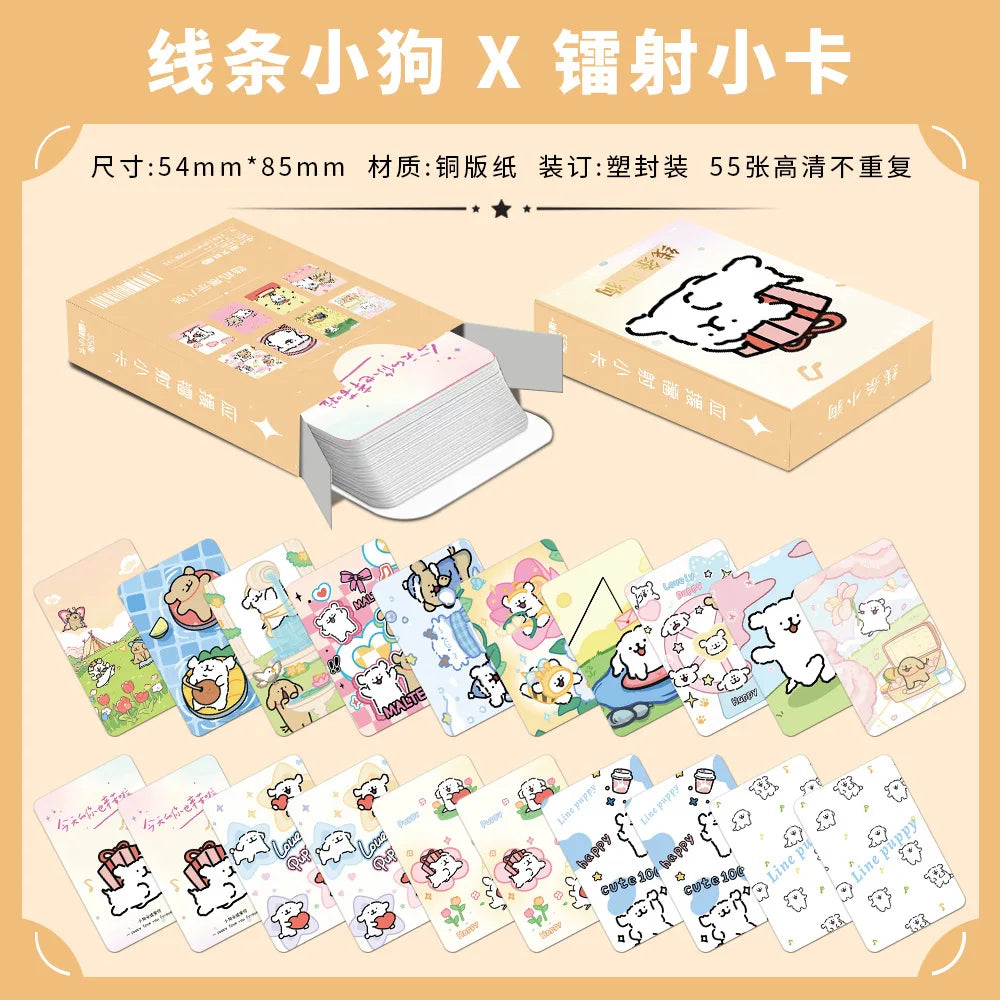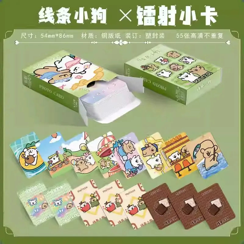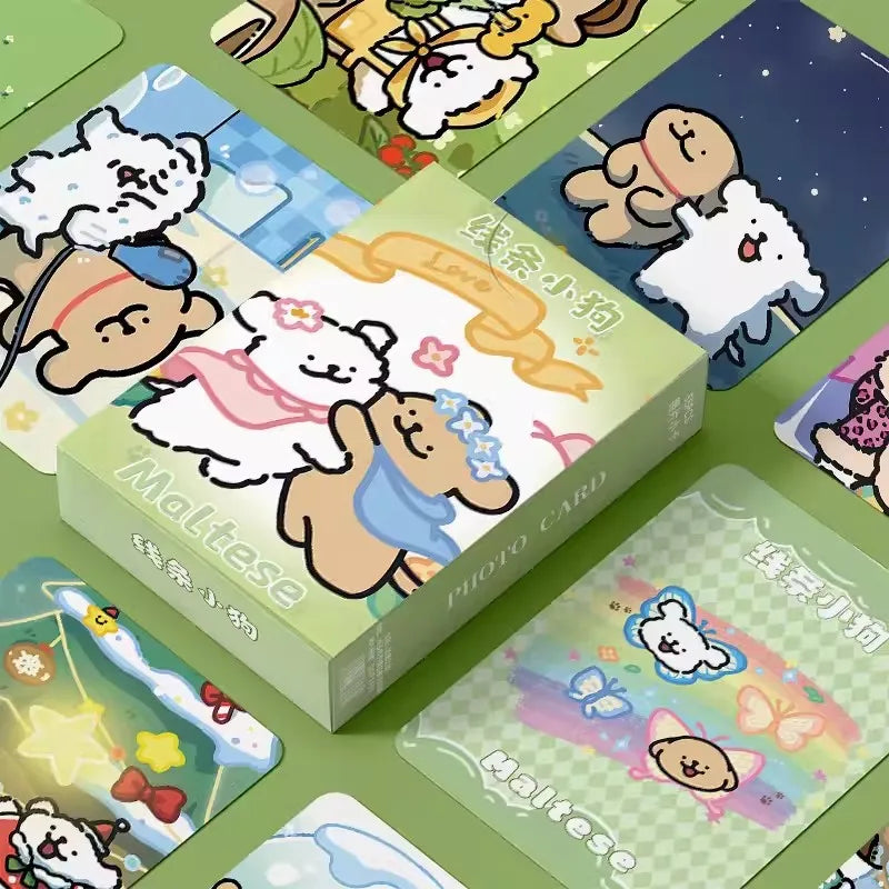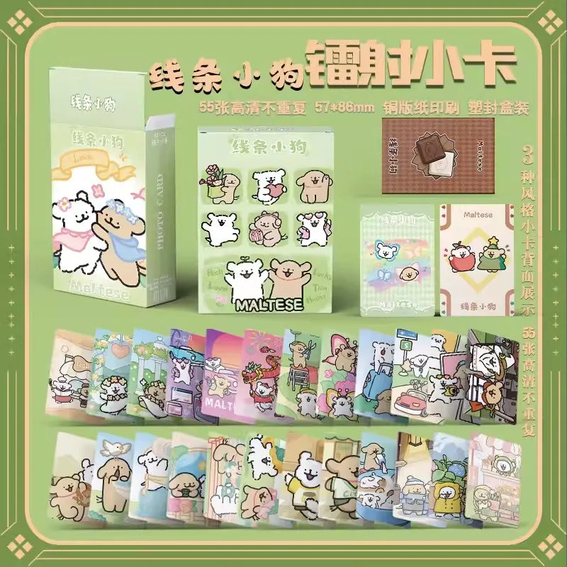 55 Pcs Mini Maltese Puppy Dog Laser Lomo Card Set - Cute Cartoon Postcards for Fans Collection