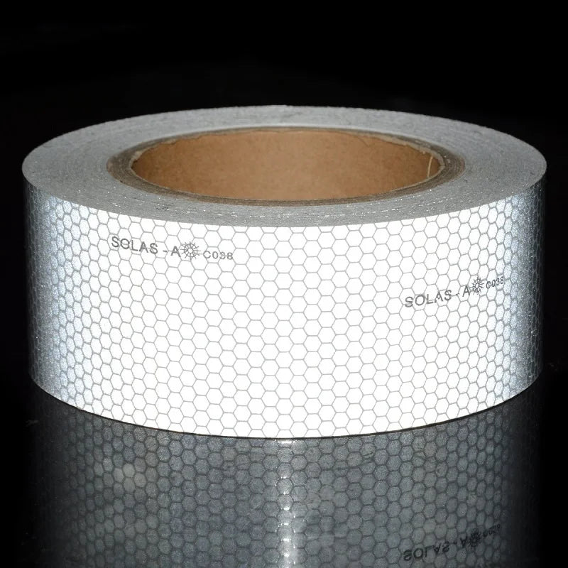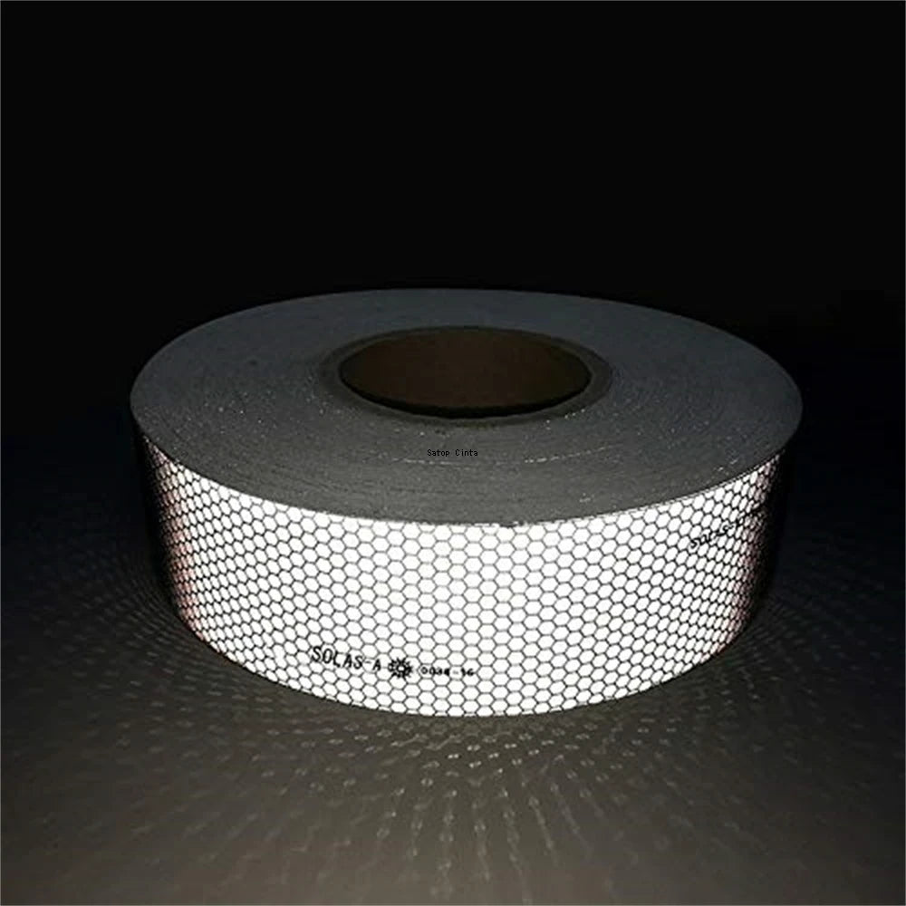 Enhance visibility and safety with the Satop CintaChoice Solas Reflective Tape. Crafted from durable PET material, this self-adhesive, waterproof tape is designed for high intensity reflection. Ideal for life jackets, life rafts, and floating equipment, it ensures you are visible even in low light conditions. The tape's retro-reflective honeycomb pattern provides exceptional brightness, making it perfect for a wide range of applications.