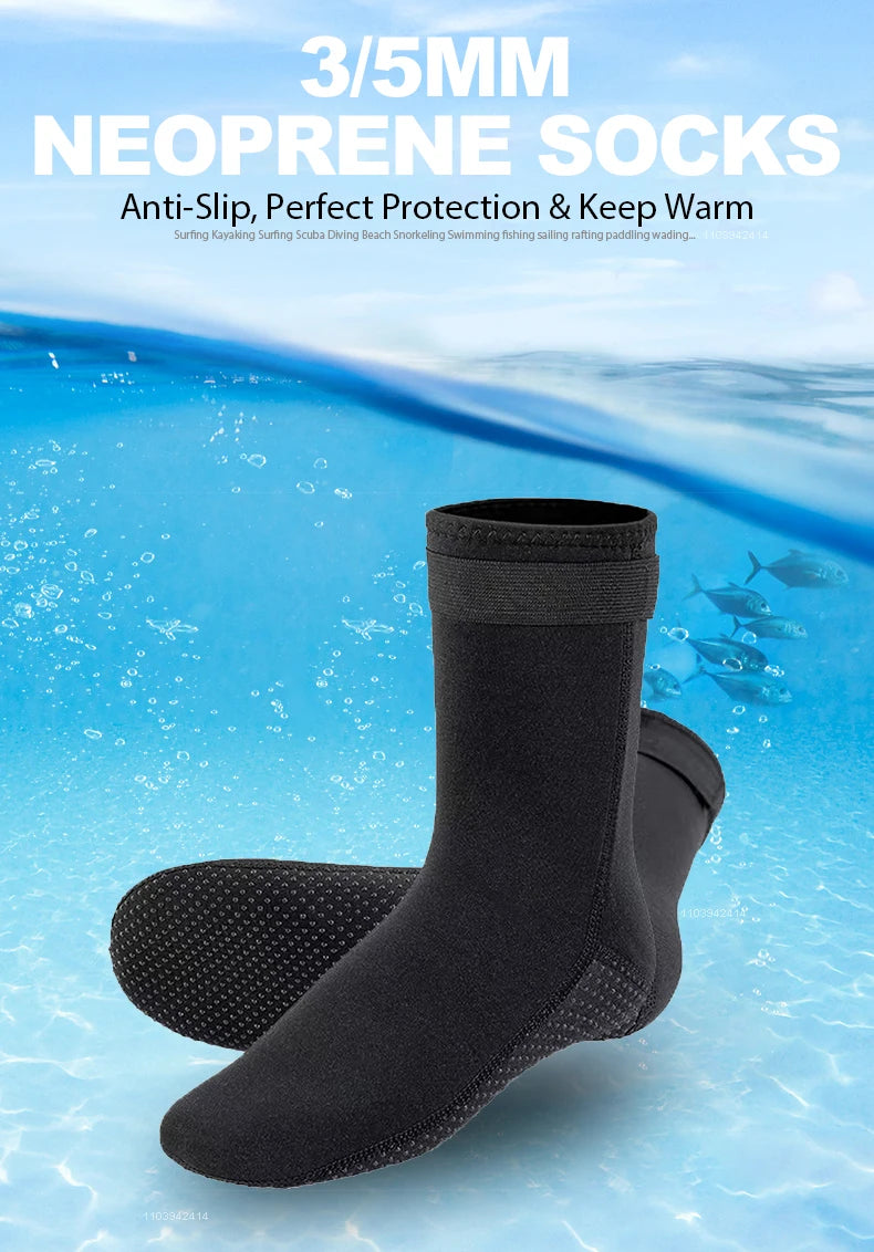 5mm Neoprene Water Socks, Anti-slip Diving Booties for Swimming, Surfing, Sandproof Warm Wetsuit Socks