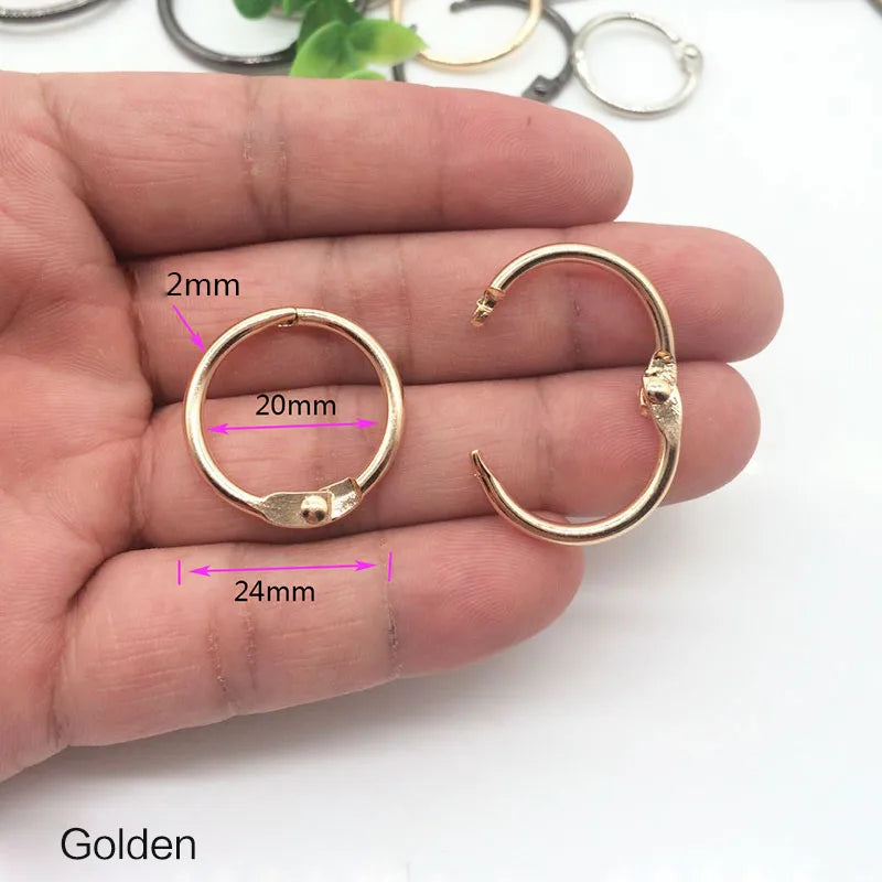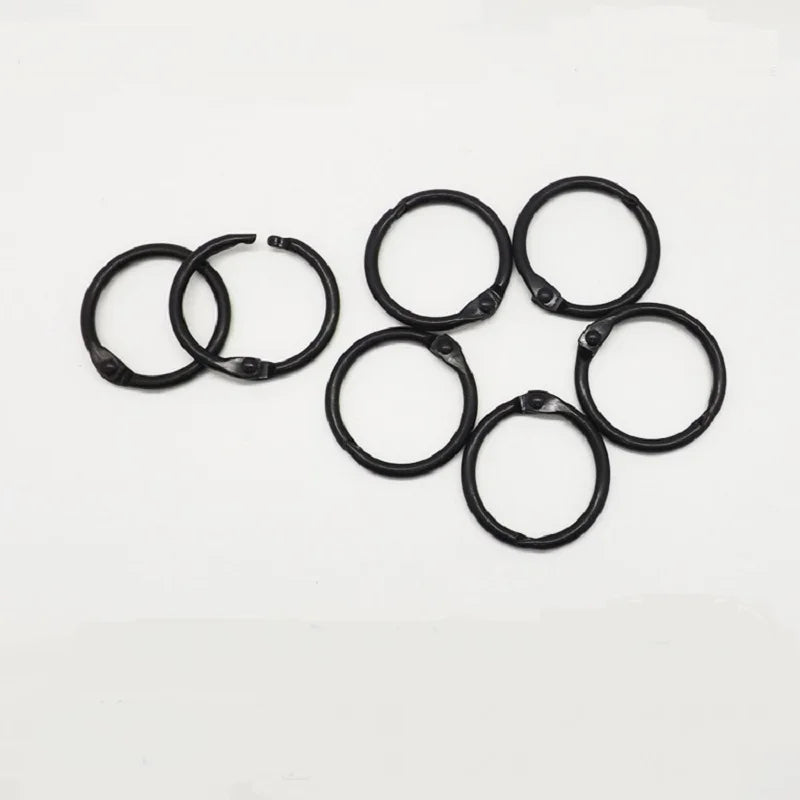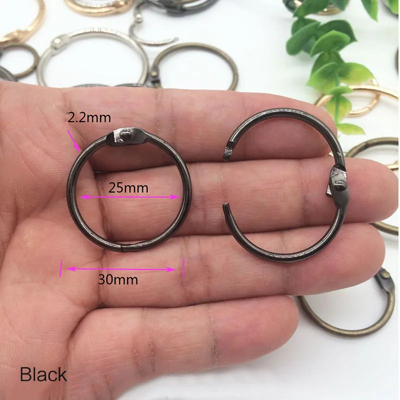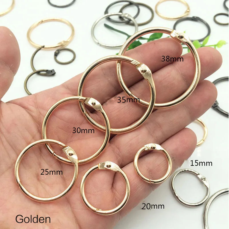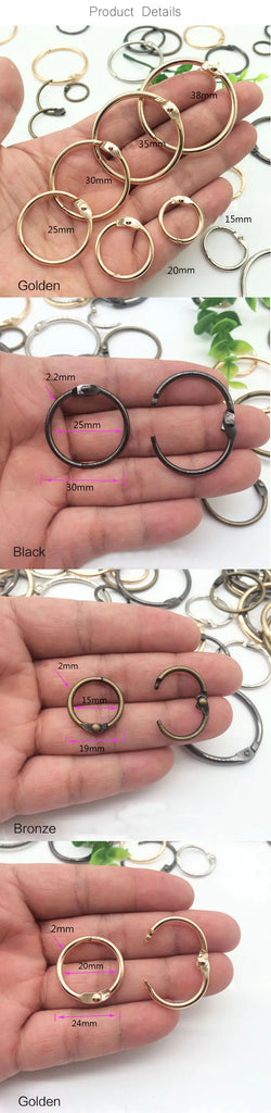 5pc 15-38mm Gold Metal Loose Leaf Binder Rings, Keychain Scrapbook Craft Hoops, Black Hinged Office Rings