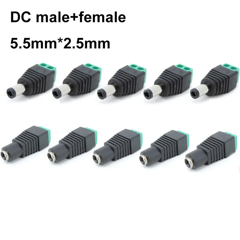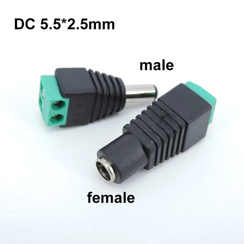 Ensure reliable connections for your CCTV cameras and LED lighting with our 12V DC Power Plug Adapter Connector. Designed for versatility, these connectors feature a 2.5 x 5.5mm male and female plug suitable for both CCTV systems and single-color LED lights. With a 2-pole design, these DC balun connectors offer easy screw fastening, eliminating the need for soldering.