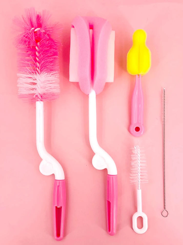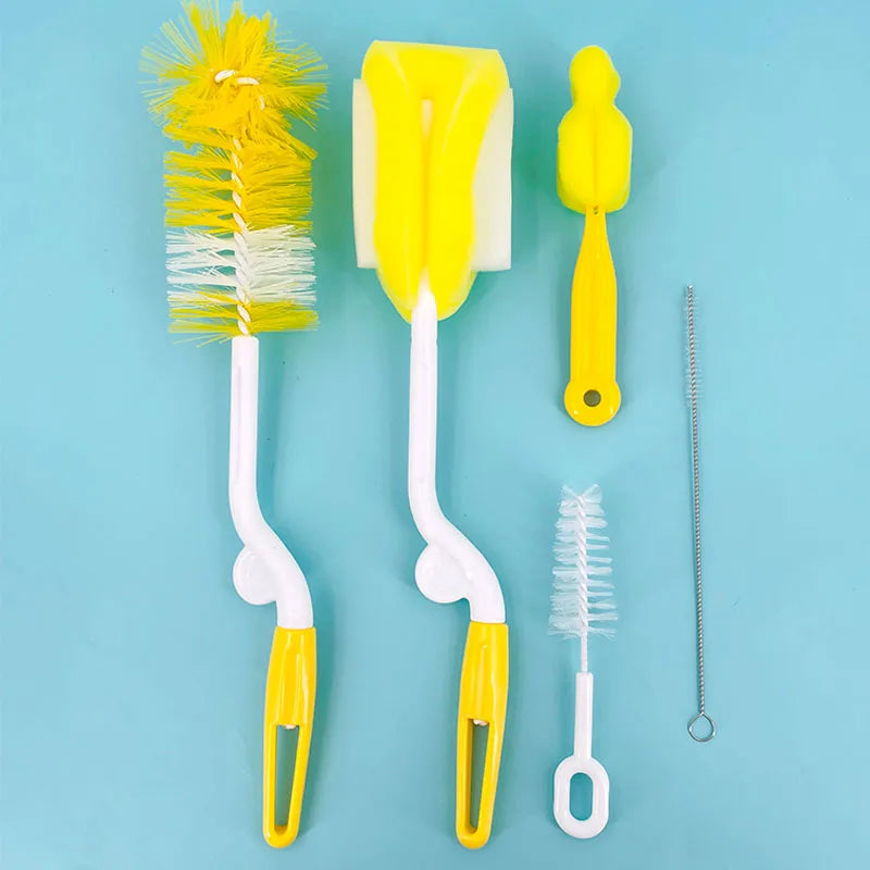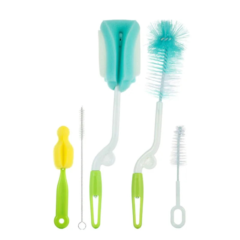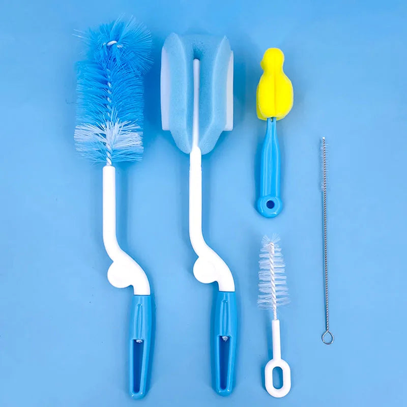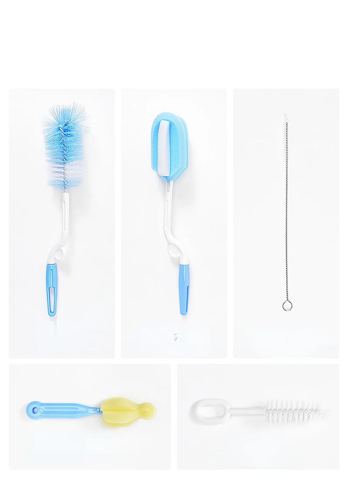 5pc 360° Bottle Brush Set for Baby Bottles, Pacifiers, Cups & Nipples - Soft Food Grade Cleaners
