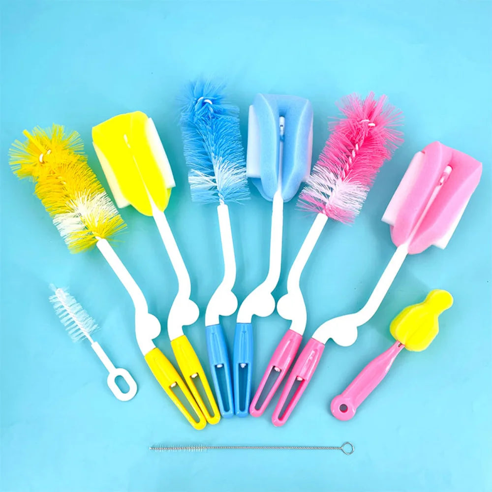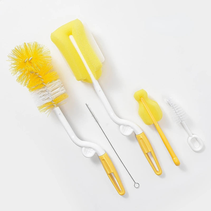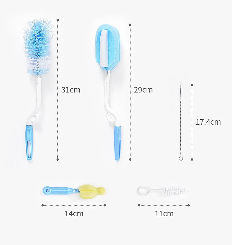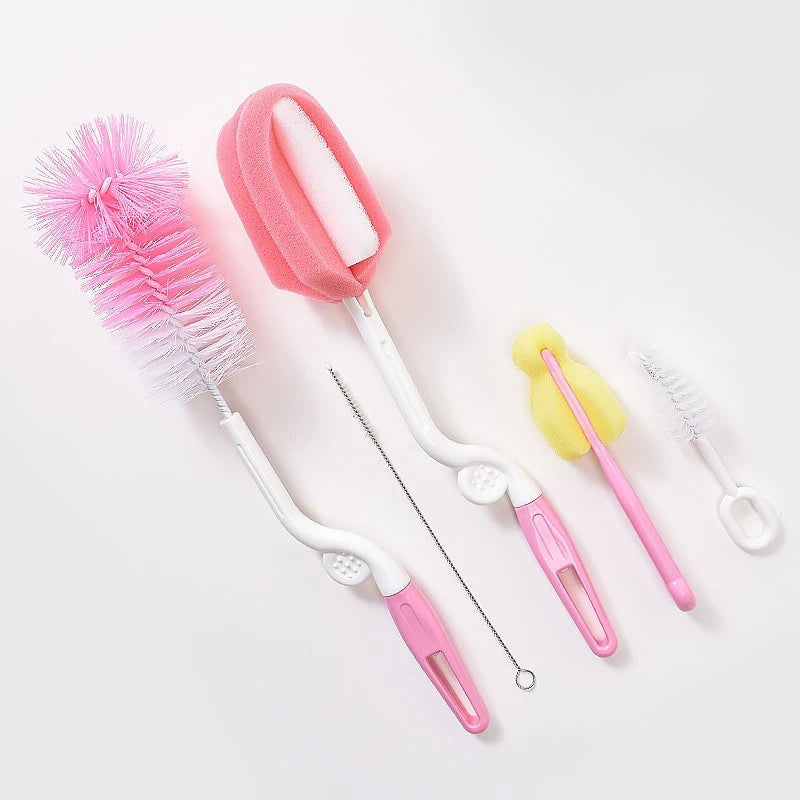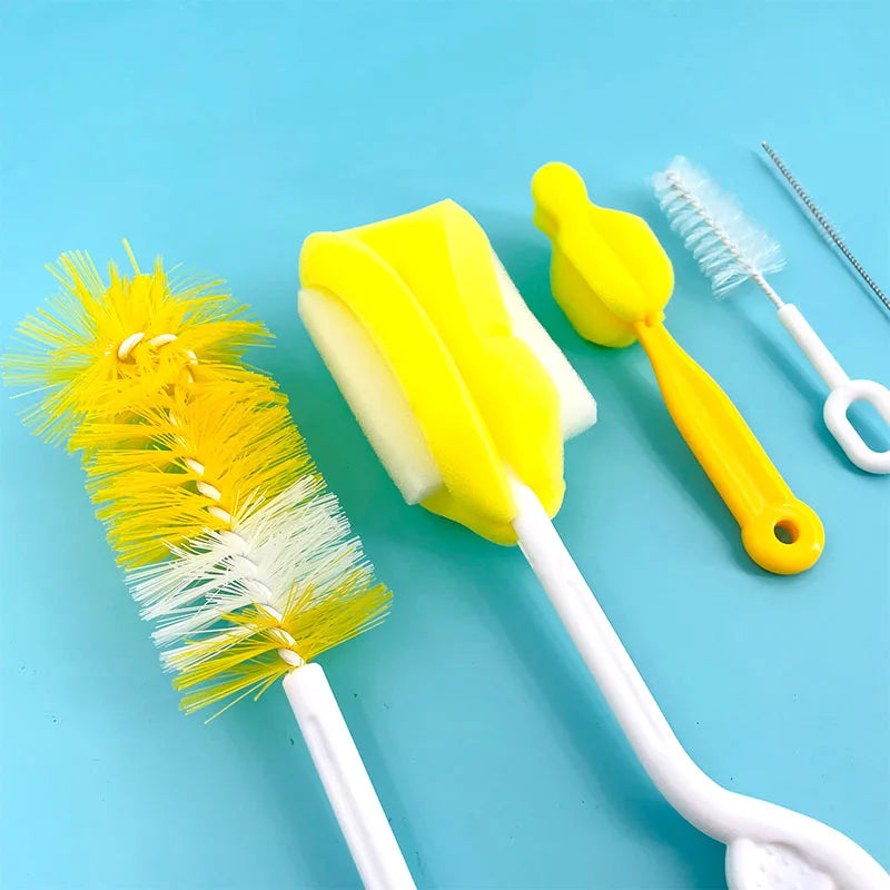 5pc 360° Bottle Brush Set for Baby Bottles, Pacifiers, Cups & Nipples - Soft Food Grade Cleaners