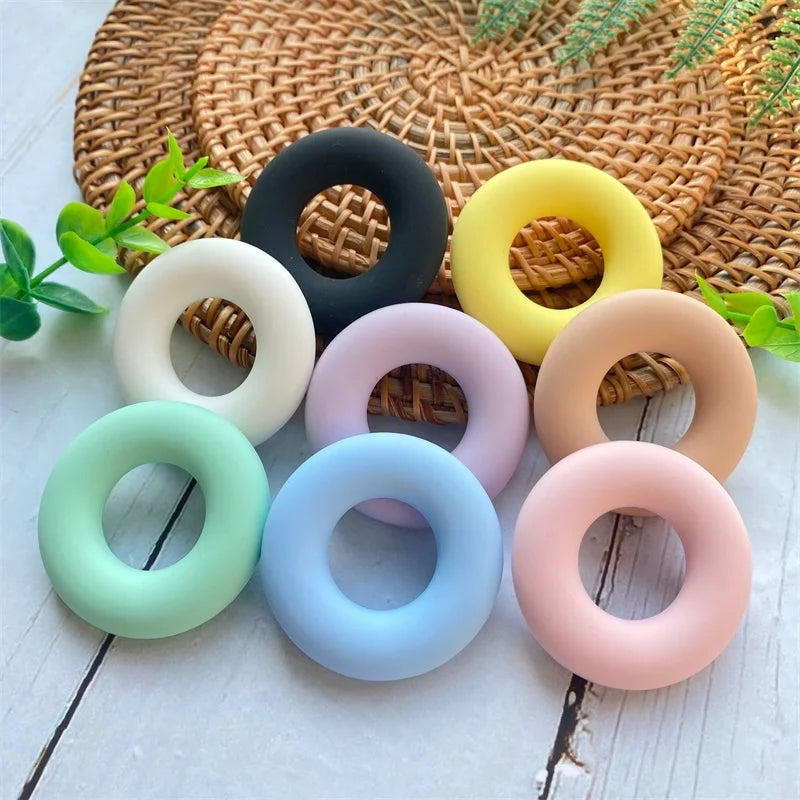 5pcs BPA Free Silicone Teething Ring Set 42mm | Baby Teether Necklace | Food Grade Chewable Toy