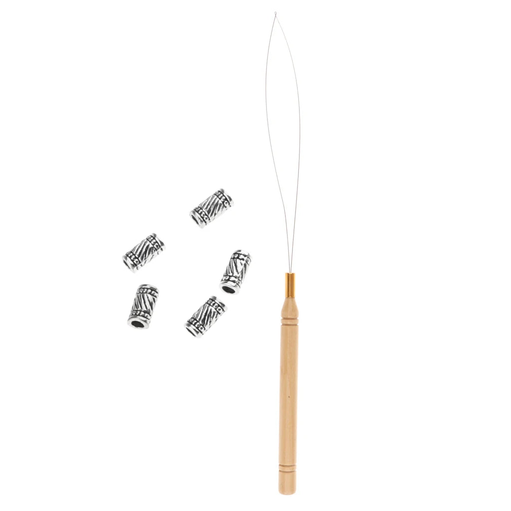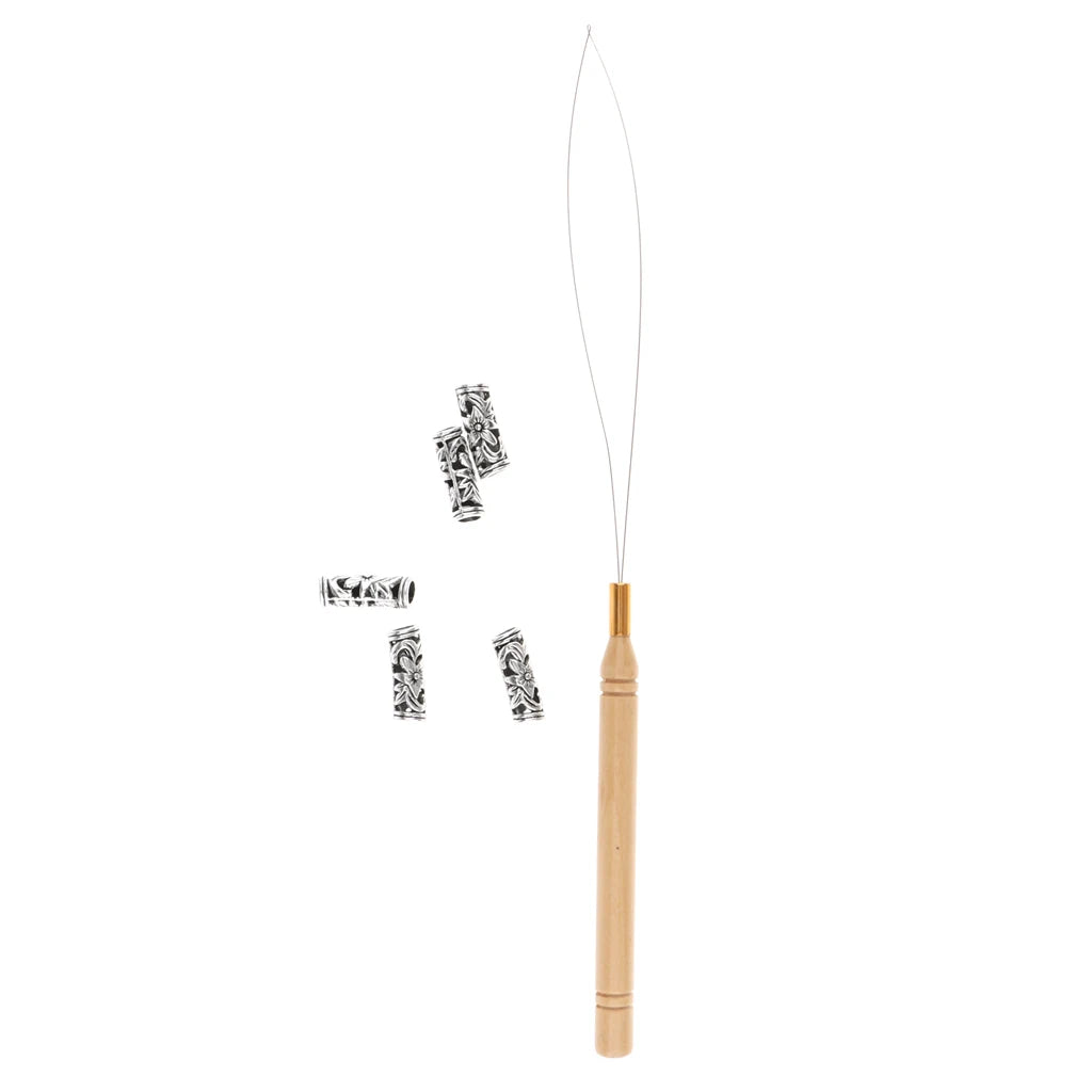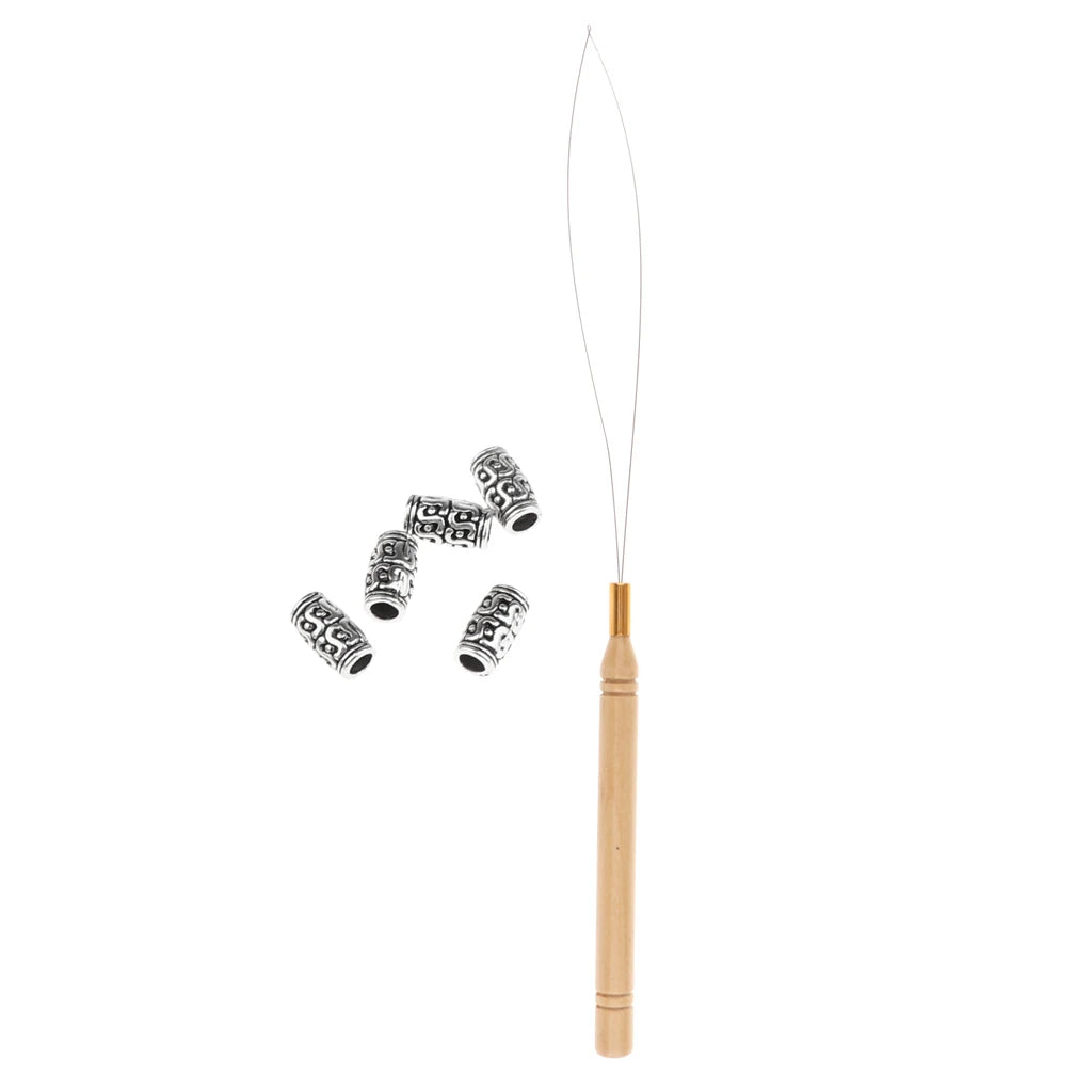 5pcs Viking Runes Hair Dreadlock Beads Rings with Pulling Hook Tool for DIY Jewelry Making and Beard Crafts