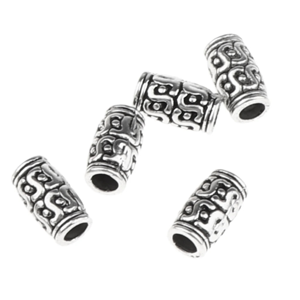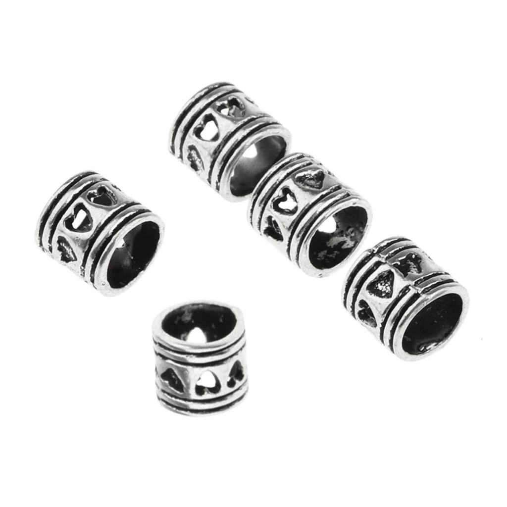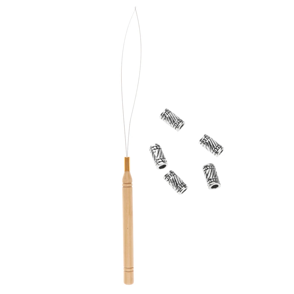 5pcs Viking Runes Hair Dreadlock Beads Rings with Pulling Hook Tool for DIY Jewelry Making and Beard Crafts