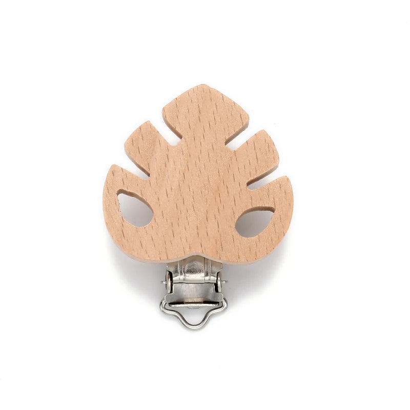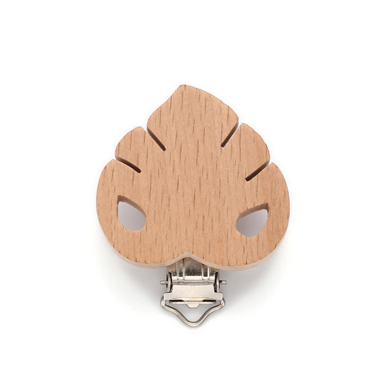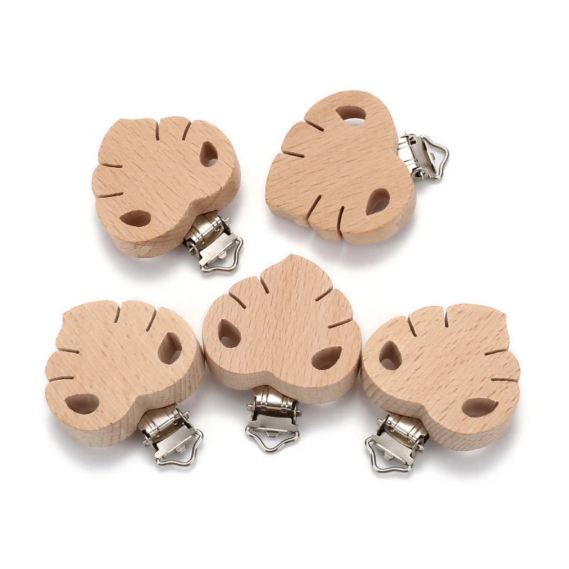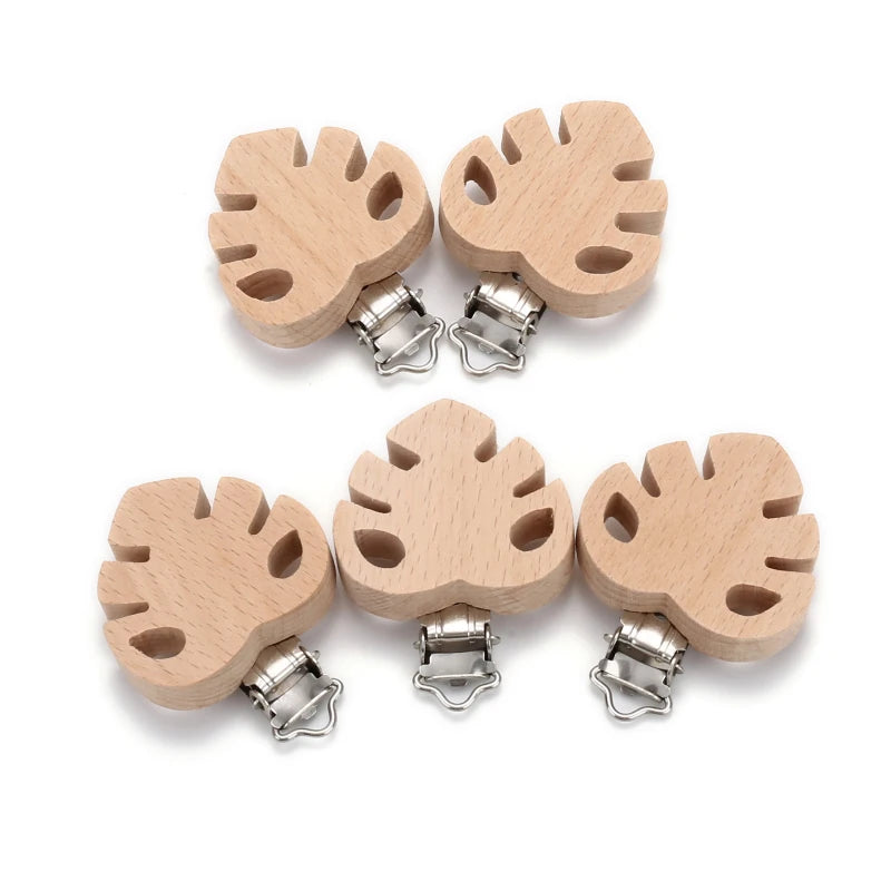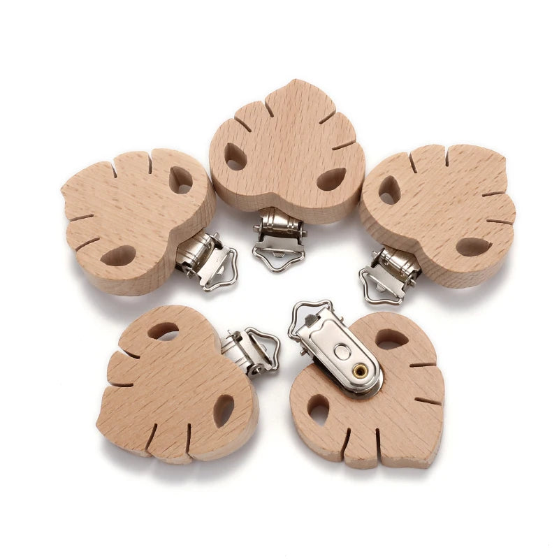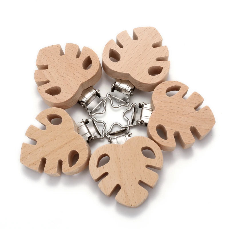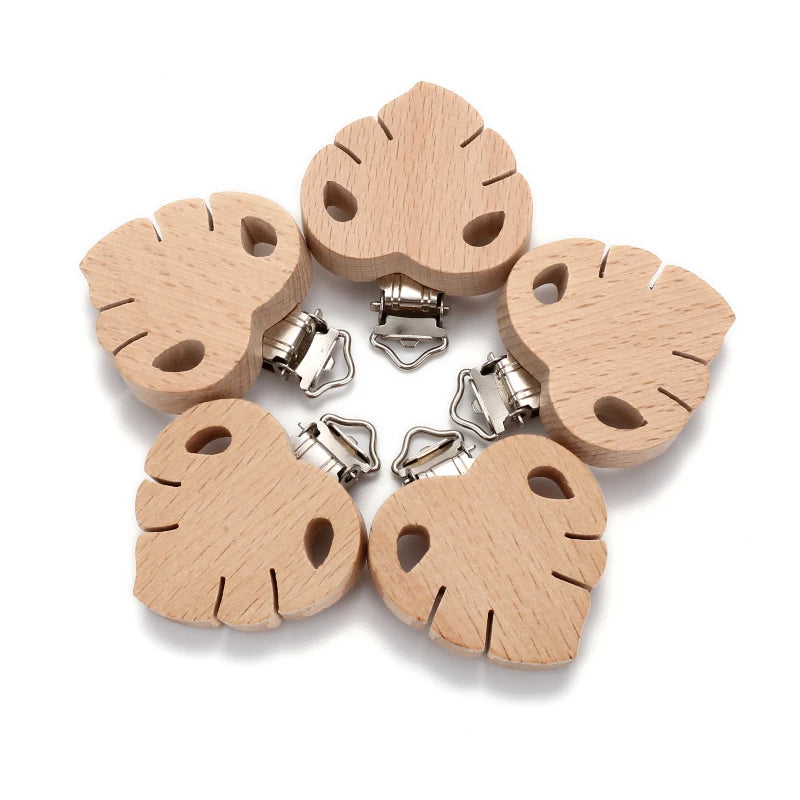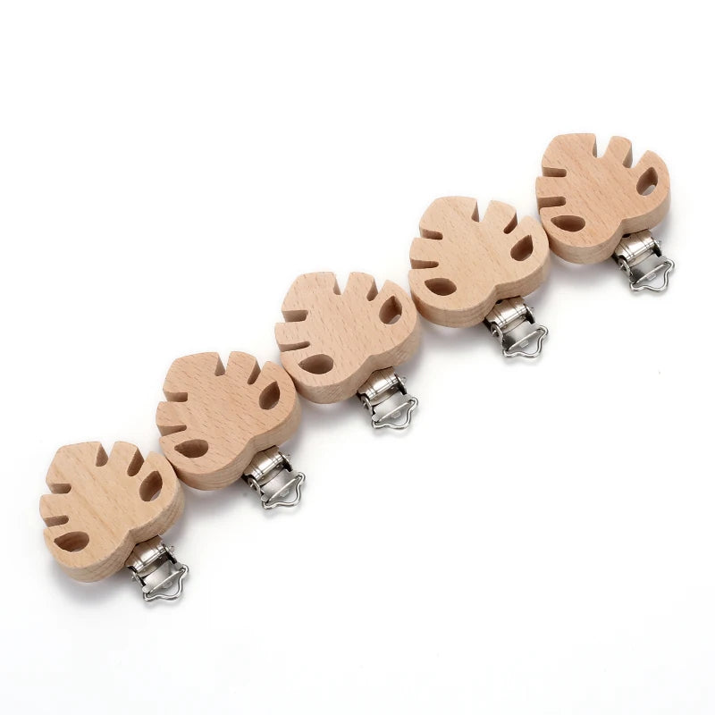 5pcs Beech Wood Leaf Dummy Clips for Baby Teething Pacifier Holder BPA-Free DIY Accessory