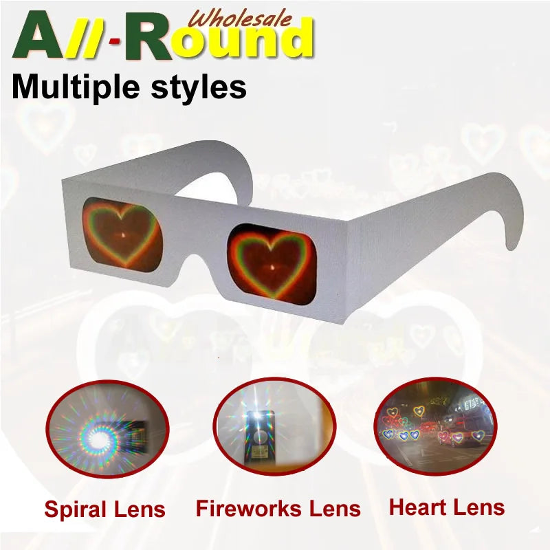 Elevate your party experience with these 3D Virtual Reality Glasses, designed specifically for light shows and festive events. These non-immersive binocular glasses feature diffractive optical technology to enhance the visual impact of fireworks, Christmas celebrations, and New Year festivities. Perfect for adults who love to dance and enjoy special effects at events, these glasses add an exciting dimension to any occasion.