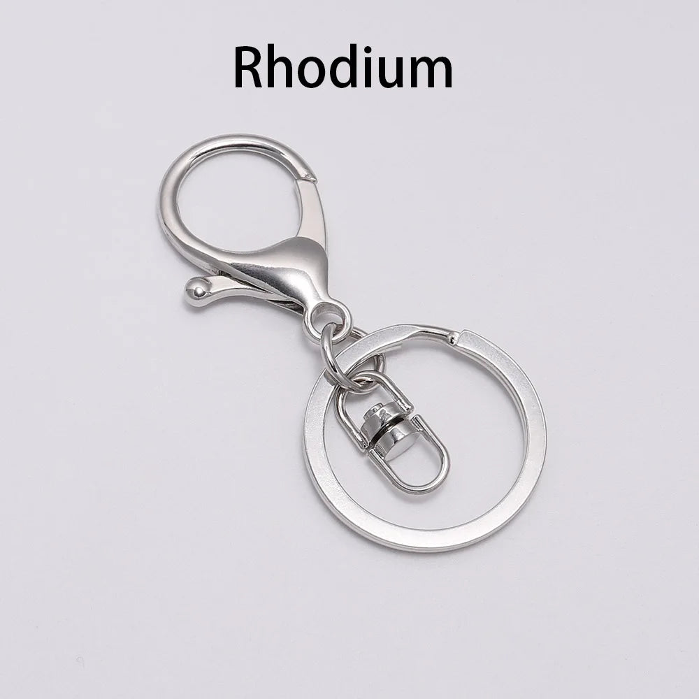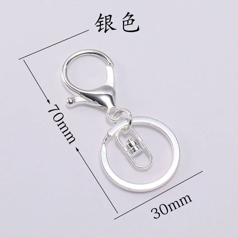 Enhance your keychain collection with this versatile set of 5 keychain rings. Crafted for style and durability, these rings are made from high-quality zinc alloy and feature a trendy design. Each set includes a 30mm key ring paired with a 70mm long plated lobster clasp, providing a secure hold for your keys or creative jewelry projects.