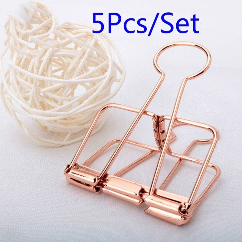 5pcs Rose Gold Binder Clips for Office & School Supplies, Paper Clips for Documents & Files, Metal Binding Clips