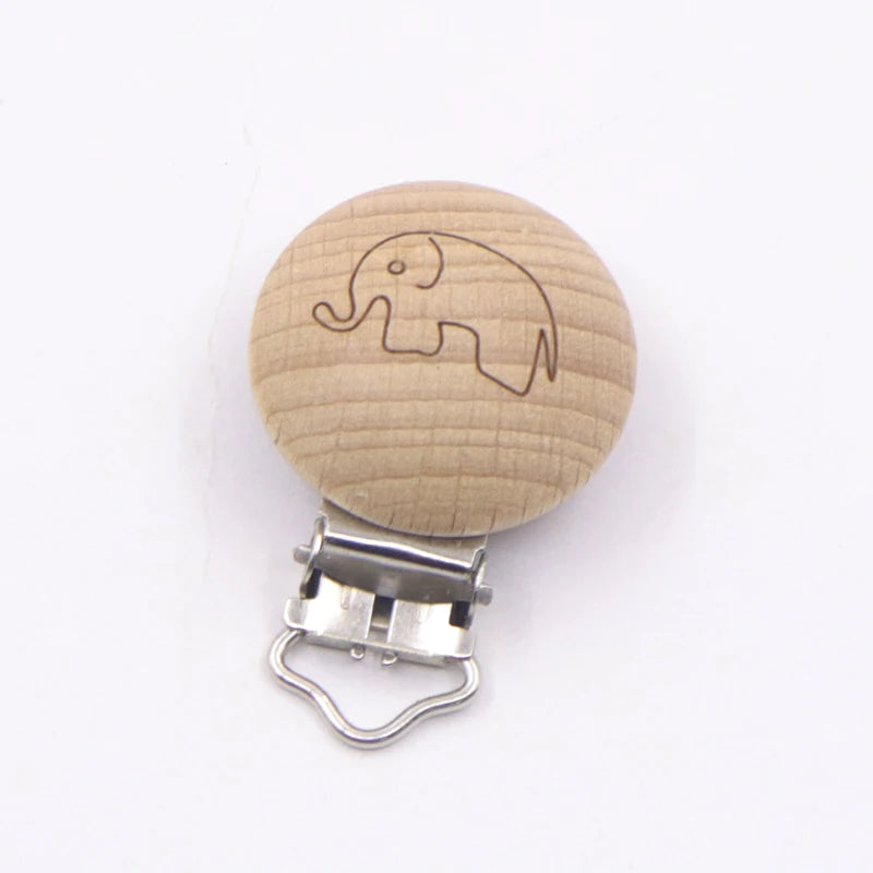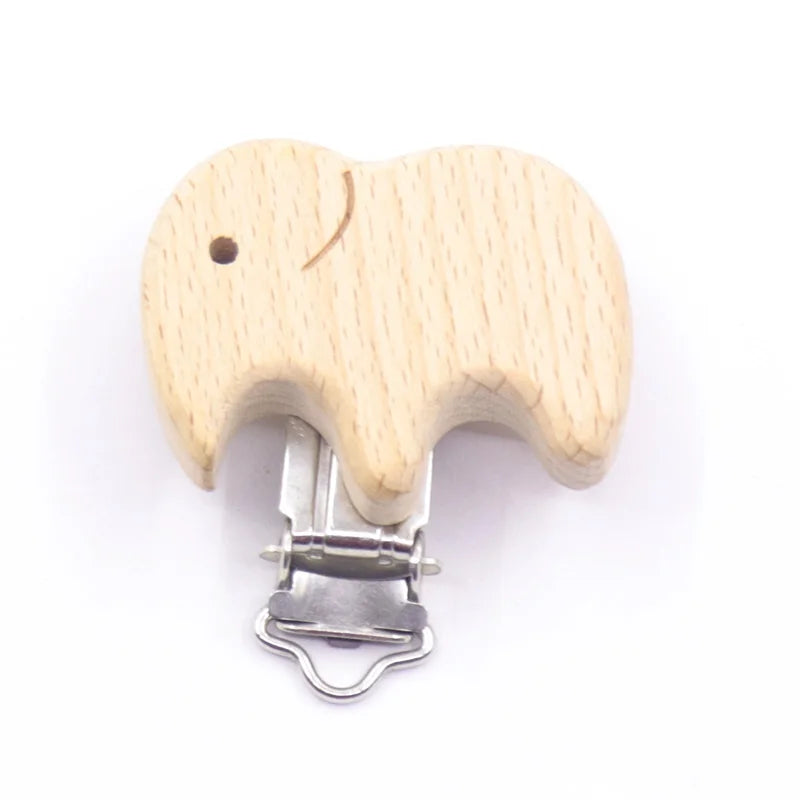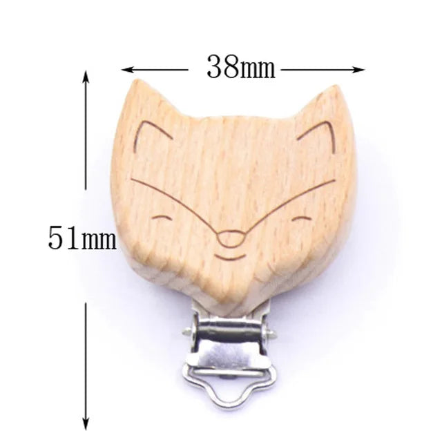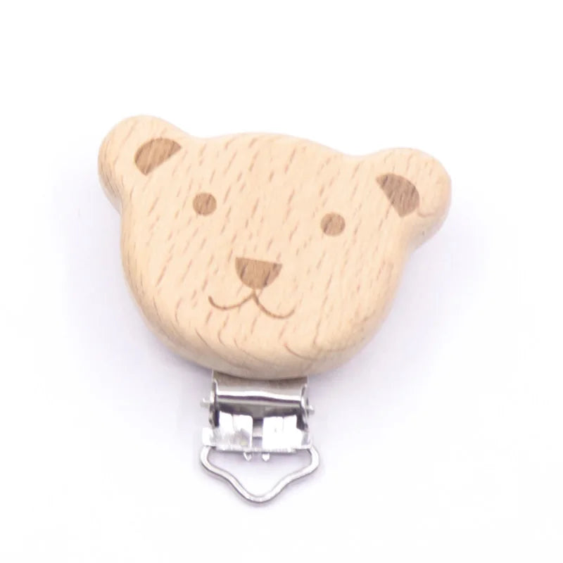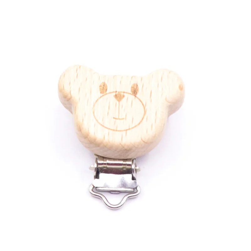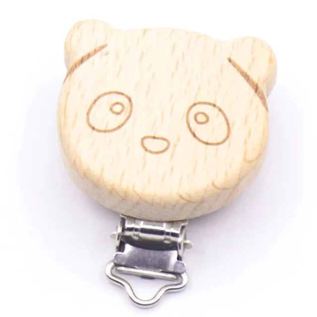 5pcs Cute Wood Cartoon Animal Pacifier Clip Set, Beech Chain Holder, DIY Baby Accessory, Natural Teething Clip