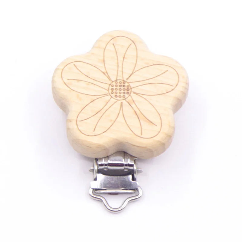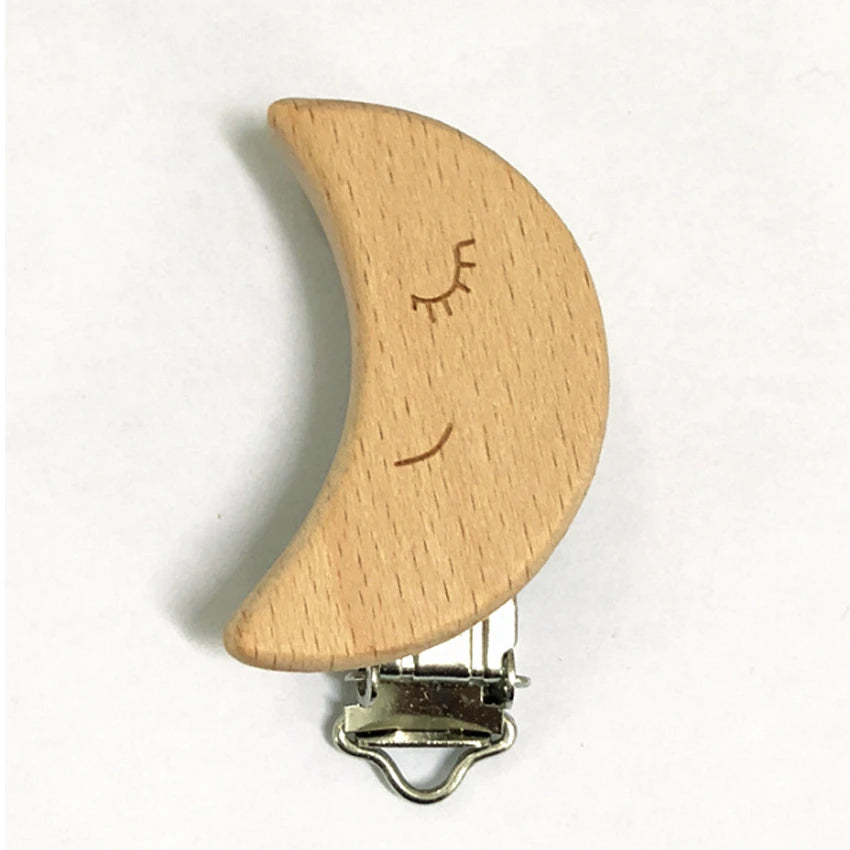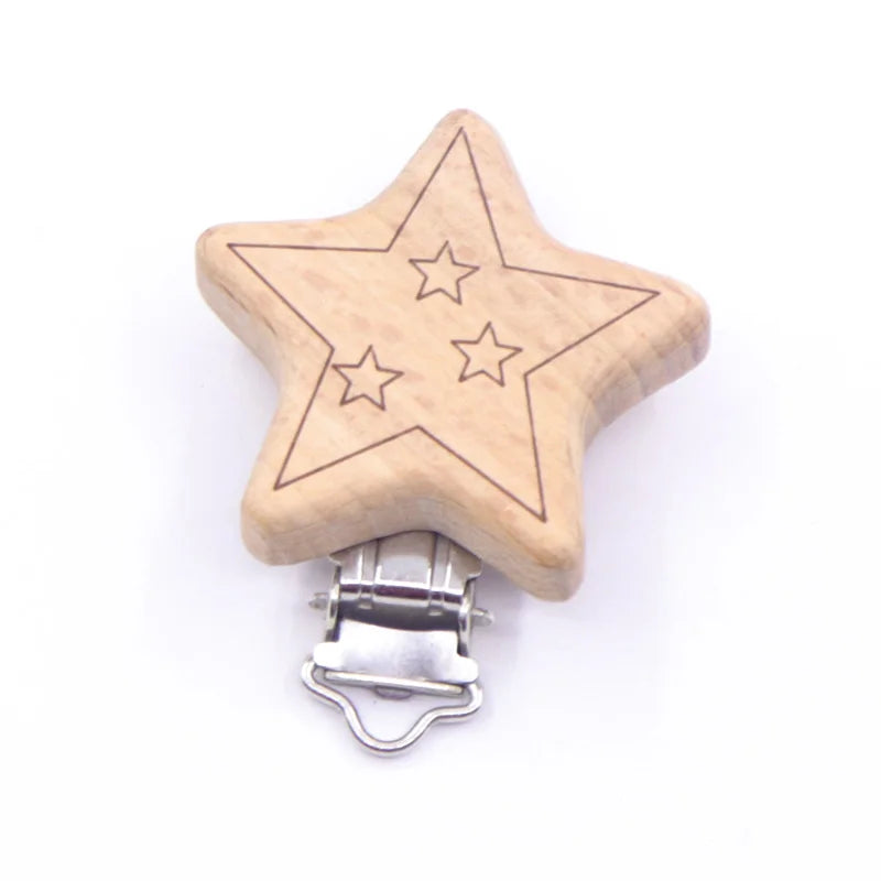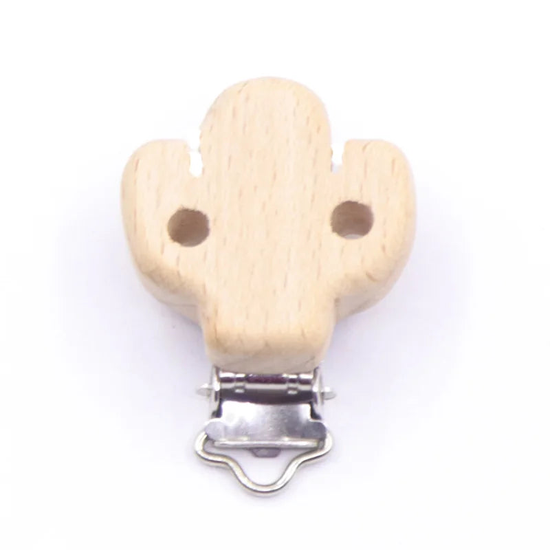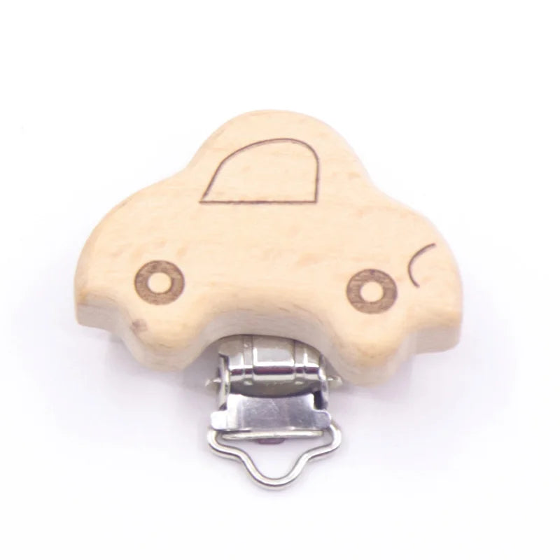 5pcs Cute Wood Cartoon Animal Pacifier Clip Set, Beech Chain Holder, DIY Baby Accessory, Natural Teething Clip