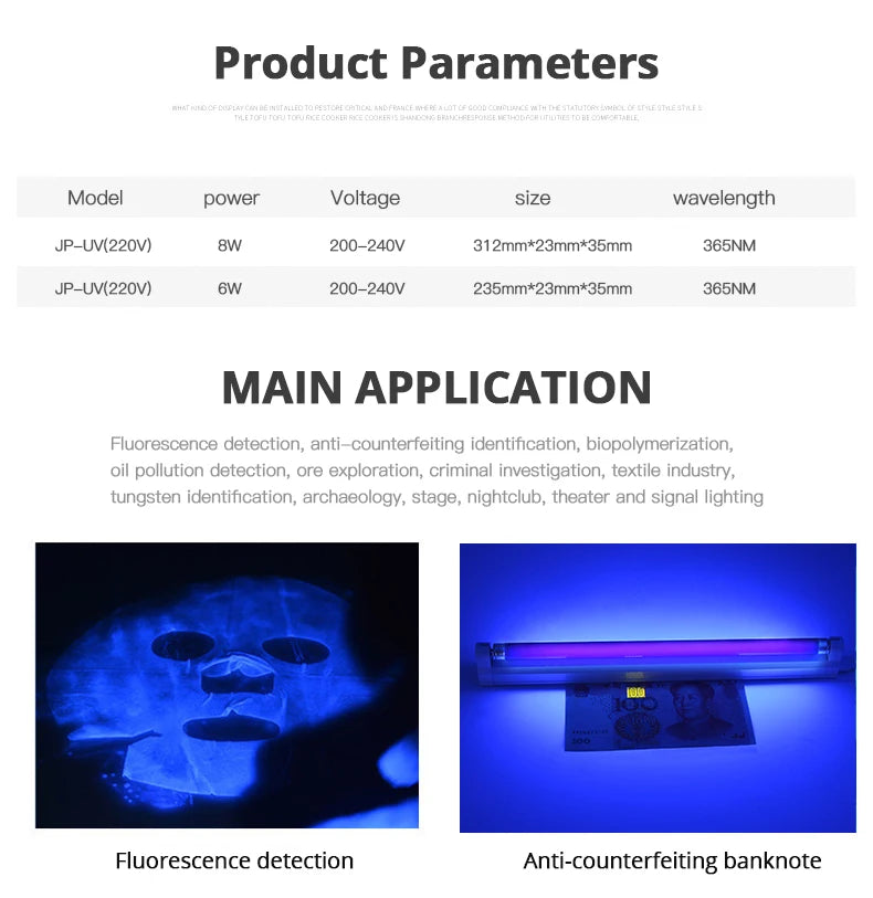 8W UV Black Light T5 Tube Bulb 110/220V UV-A 365nm Nail Dryer Money Detector Decor