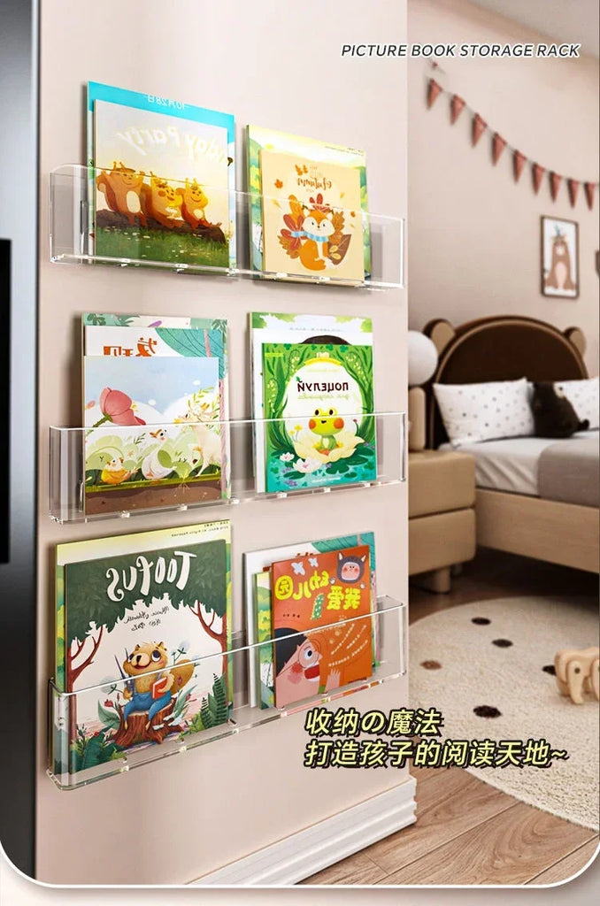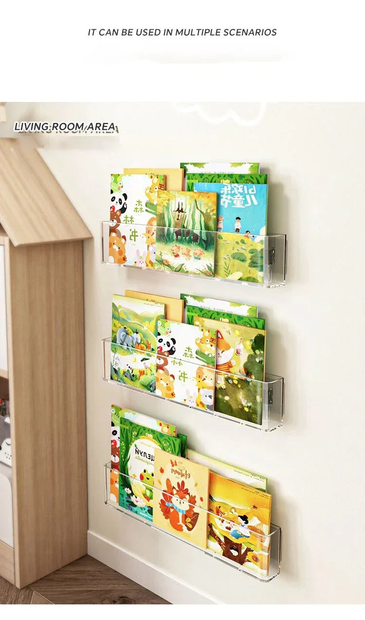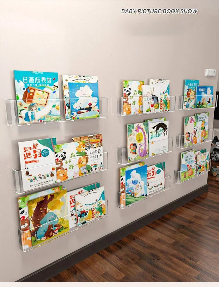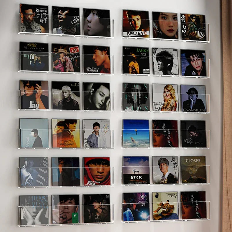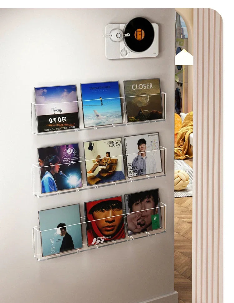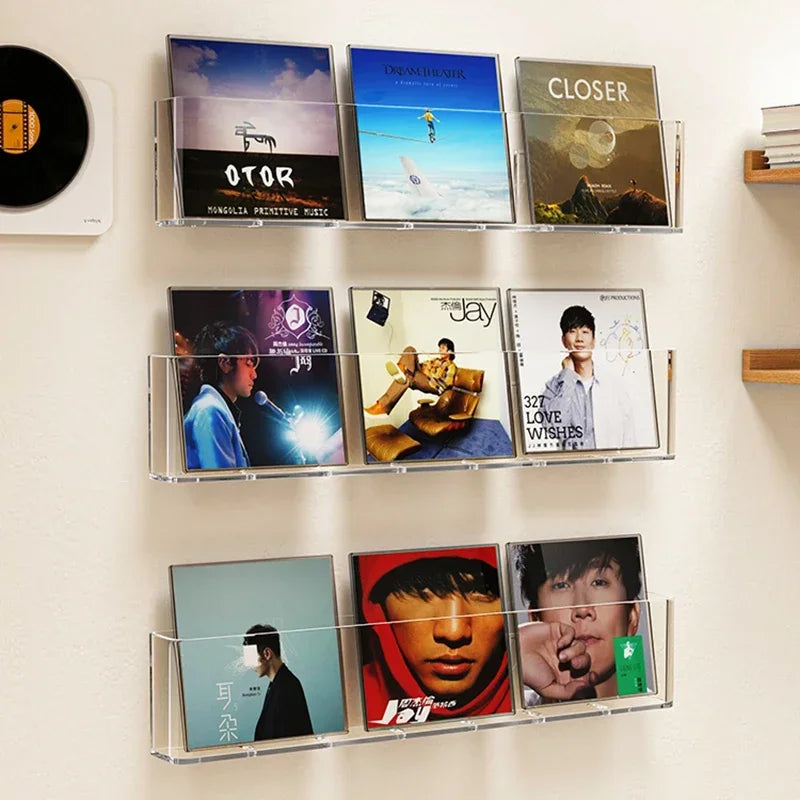 Acrylic Wall-Mounted Display Stand for Books, Albums, Magazines, Record Storage, Hanging Shelf